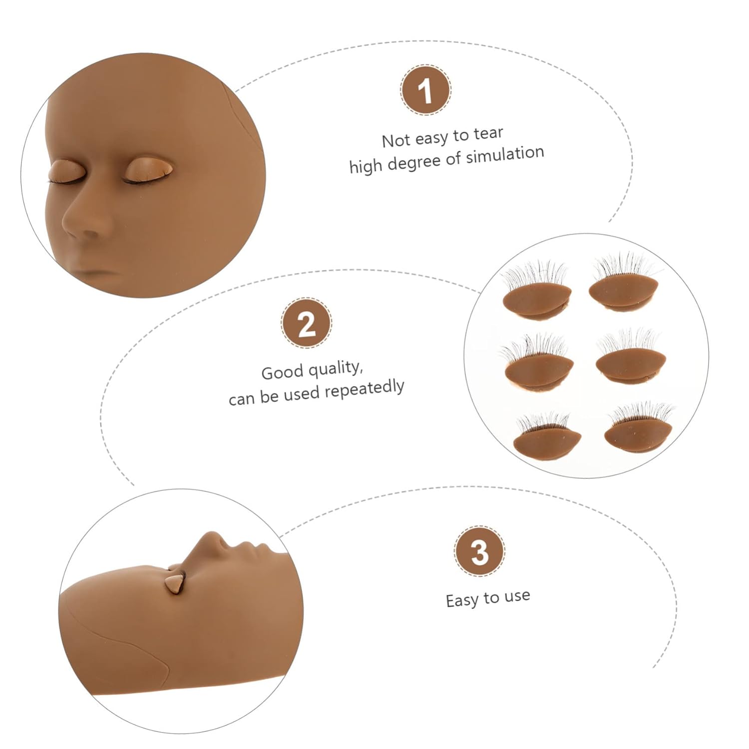 Testa per pratica trucco - per esercitarsi nell'estensione delle ciglia, trucco, massaggio alla testa, pittura del viso, ecc., dispositivo per la pratica del trucco Testa per pratica estensione delle ciglia - appositamente progettata per la pratica, ma può anche essere utilizzata in parrucchieri, dimostrazioni del corpo umano, lezioni di massaggio, ecc. Set per pratica trucco Testa di manichino per cosmetologia - Questa testa di manichino per trucco ha una struttura superficiale liscia e realistica che simula la pelle umana, Testa di manichino per ciglia Testa con palpebre - Può essere utilizzata su una superficie piana per praticare tecniche di massaggio facciale, per saloni di bellezza o individuali uso, Testa di manichino per palpebre di ricambio - Strumento per principianti per praticare estensioni singole di ciglia finte, trucco, allenamento e pratica per la pittura del viso, set per esercitarsi nell'estensione delle ciglia