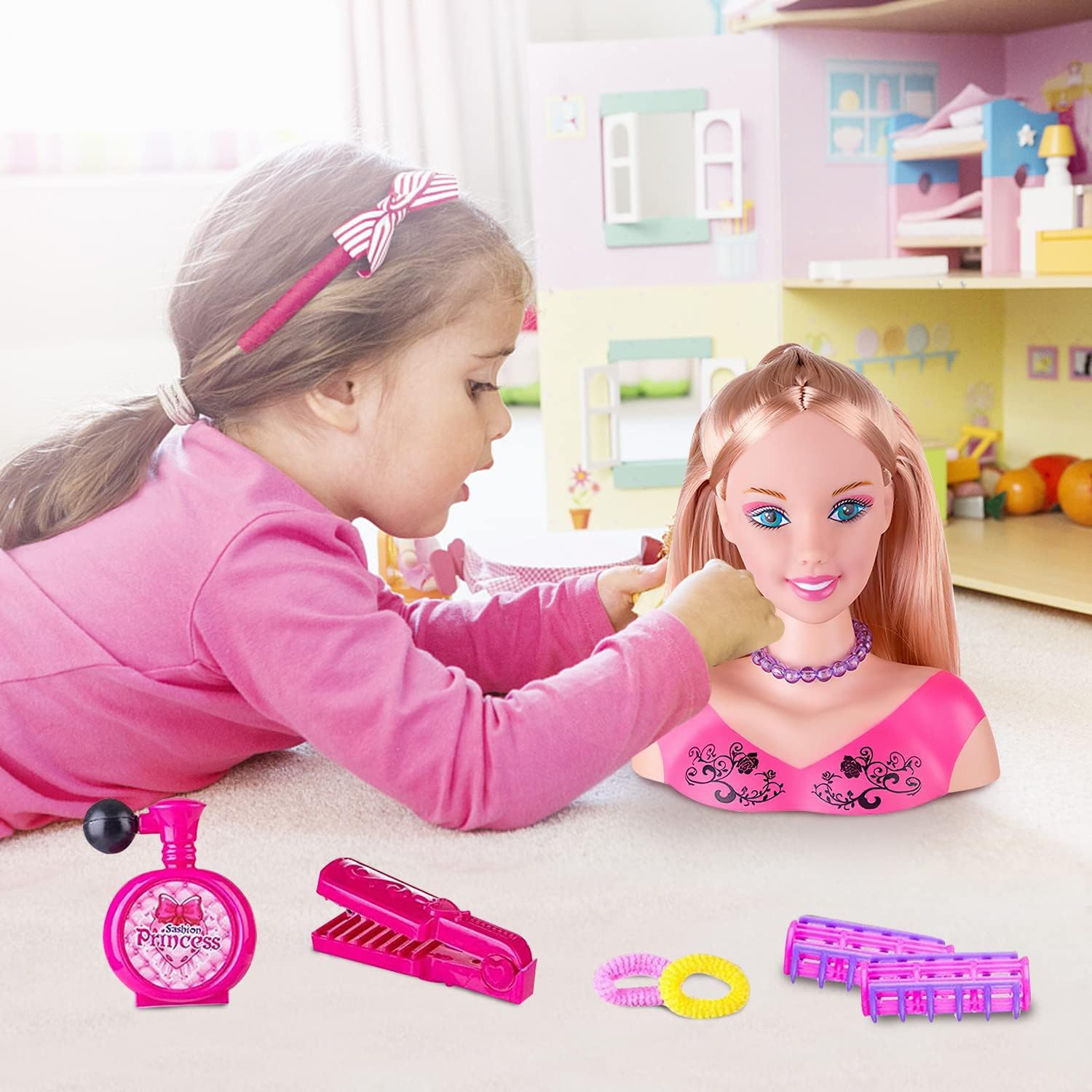 Contenuto della confezione: un set completo di ragazze playhouse hair and make-up toys including a bust, a hair dryer (richiede 2 batterie AAA, bisogno di portare il vostro own), eye shadow, make-up brushes, hair clips, smooth simulated hair clips, beauty cards, hair ties and more, including all the hair and make up tools for Ragazze Ys. Dettagli delle dimensioni: la testa della bambola misura circa 20,5 x 18,5 x 8,5 cm, con capelli spessi, tratti delicati, pelle simulata, lucida, liscia e progettata per non ferire le mani, giocare con il giocattolo del trucco, simulare il trucco, imparare a pettinare i capelli e creare una ragazza con mille look diversi. Giocattolo lavabile in modo sicuro: è facile da pulire, quindi se la tua piccola principessa sporca i vestiti o i mobili, si pulisce rapidamente con acqua e sapone. La testa per lo styling è adatta ai bambini ed è sicura per la tua piccola principessa. Imparare a truccarsi: un set di 35 pezzi con tanti accessori e strumenti per il trucco che desideri, in modo che il bambino possa imparare a truccarsi mentre si diverte. Gioca con gli adulti o gli amici per promuovere l'interazione genitore-figlio. Il miglior regalo per le ragazze: le piccole tolette creano immagini diverse come desiderano, come acconciature fresche, capelli in pillole carine, acconciature vintage con petali di fiori, soddisfacendo la curiosità e il senso della bellezza dei bambini, ma anche incoraggiando e migliorando la loro creatività, immaginazione e capacità di apprendimento, divertendosi. È il miglior regalo di Natale e di compleanno per ogni ragazza.