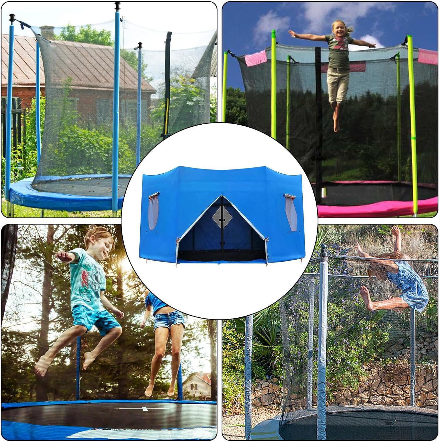 Sicurezza solare avanzata: il trampolino Sun Shade è dotato di un rivestimento UV resistente e finestre in rete posizionate strategicamente sulla parte superiore e sui lati. Fornisce la massima protezione dai raggi e un flusso d'aria ottimale mentre ti godi il tuo trampolino. Schermatura completa: questo parasole per trampolino protegge solo il chi dal forte riflesso e dal calore della luce solare diretta, ma assicura anche che il trampolino rimanga asciutto e pulito, migliorandone la longevità e la tranquillità. Versatile: ideale per migliorare il divertimento all'aria aperta, questa asta per trampolino è adatta per feste di compleanno, picnic ed eventi comunitari per garantire che il gioco sia comodo e sicuro sia all'interno che all'esterno. RESISTENTE ALL'USURA E SICURO: il nostro parasole per trampolino è dotato di un tessuto Oxford impermeabile combinato con un rivestimento resistente ai raggi UV che fornisce la massima protezione contro raggi e strappi dannosi. Il suo design robusto e durevole offre una lunga durata. Comodo trampolino ombreggiante: massimizza l'esterno delle Nazioni Unite con accessori pieghevoli in argilla che garantiscono un facile stoccaggio, un'installazione semplice e un fissaggio sicuro al trampolino. Basta far scorrere il coperchio e godersi l'ombra ininterrotta e confortevole.
