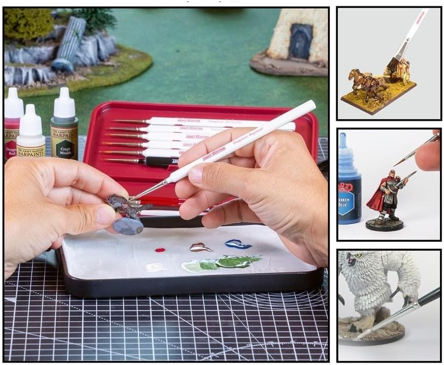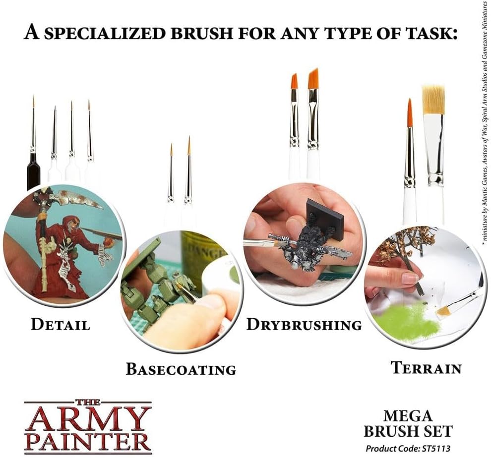 Una collezione completa di 10 pennelli di alta qualità per tutte le esigenze di pittura Realizzato con setole in fibra naturale per un'applicazione liscia e precisa Comodi manici per lunghe ore di pittura senza fatica Include una varietà di dimensioni e forme per lavori dettagliati, rivestimento di base e pittura su larga scala Perfetto per wargamers e pittori in miniatura