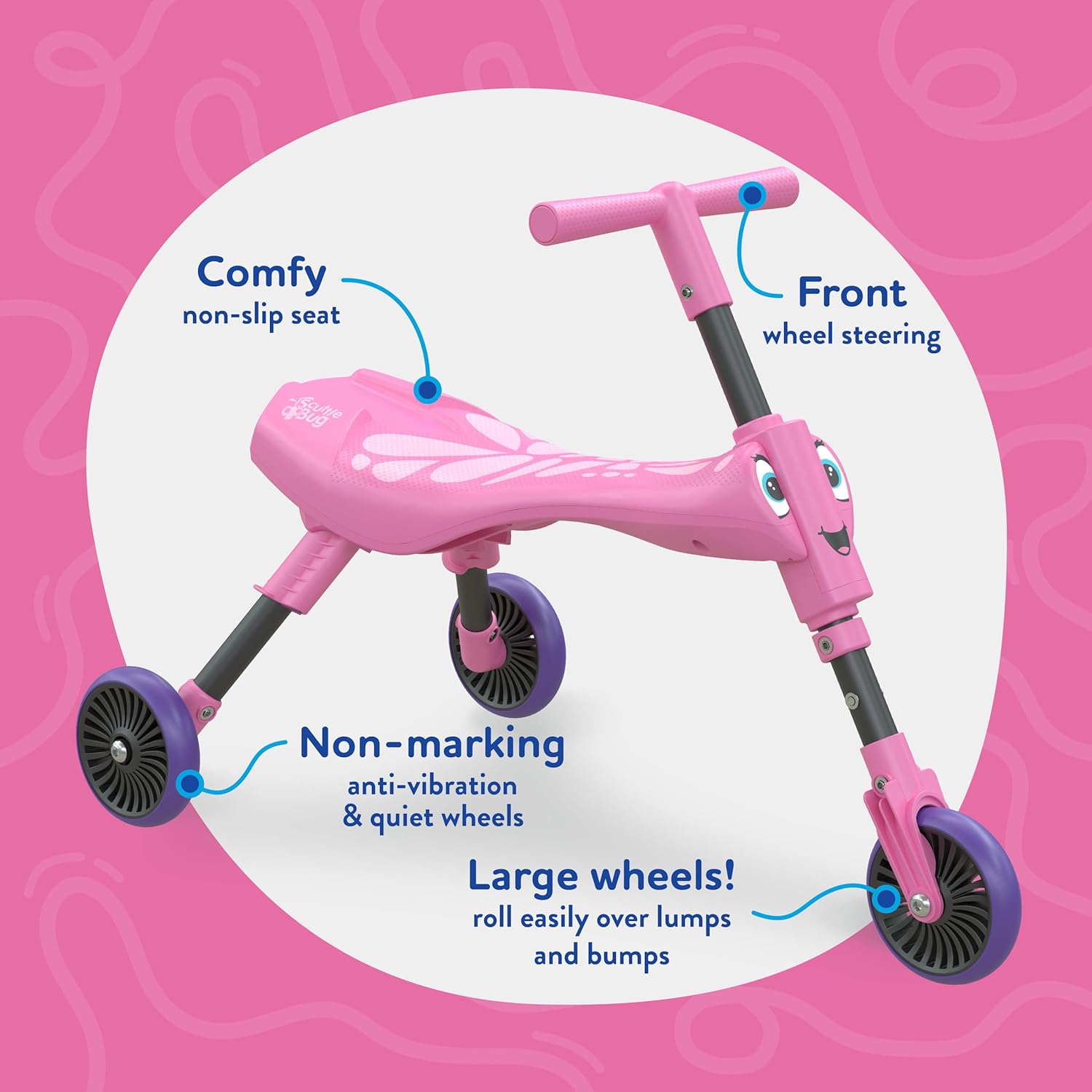 GIOCATTOLI PER LO SVILUPPO: Gli Scuttlebugs sono giocattoli per bambini progettati per aiutare i bambini a sviluppare l'equilibrio e le capacità motorie imparando a spingere, girare un manubrio e coordinarsi. Questo triciclo è un ottimo modo per incoraggiare i tuoi bambini a impegnarsi in attività fisiche PROGETTATO PER ESSERE CONVENIENTE: è dotato di 3 ruote stabili, durevoli e resistenti ai graffi che non lasciano segni sulle superfici interne o esterne, ruote sterzanti per una migliore manovrabilità e un semplice sistema di piegatura a 3 clic per riporlo facilmente PROGETTATO PER LA SICUREZZA: questi cavalcabili sono sicuri, affidabili e robusti e richiedono un assemblaggio minimo. Sono adatti a bambini di età superiore a 12 mesi e fino a 20 kg. Da utilizzare sotto la diretta supervisione di un adulto e con dispositivi di protezione. Non utilizzare in aree trafficate. REGALO PERFETTO PER I BAMBINI PIÙ PICCOLI: Questi giocattoli da cavalcare sono ideali come primi cavalcabili, giocattoli da esterno o regali di compleanno per un bambino o una bambina di un anno. Aiutano il tuo bambino a scoprire nuovi modi per stimolare il suo equilibrio e le sue capacità motorie
