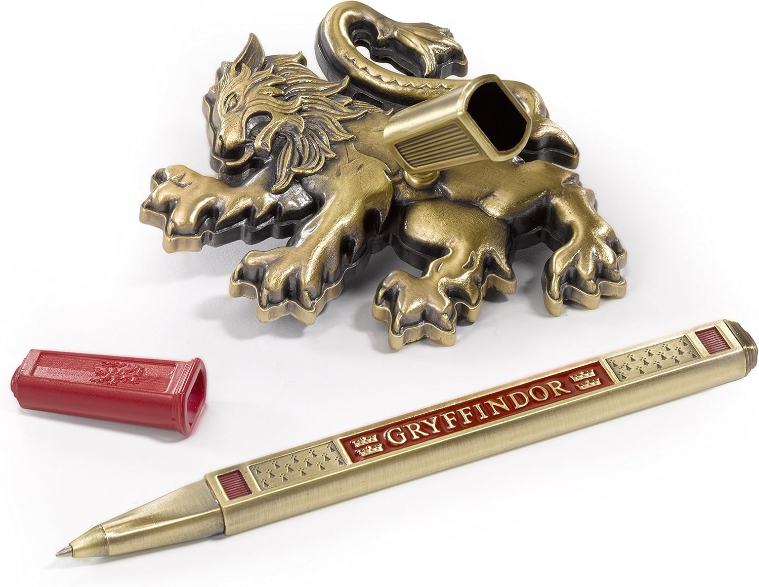 Supporto per penna e scrivania: questa penna Grifondoro finemente dettagliata, color oro pressofuso presenta una smaltatura rossa e un coperchio rosso abbinato che si inserisce in un supporto per mascotte Grifondoro in ghisa. La penna e il supporto unici e di alta qualità aggiungono un tocco magico alla tua casa, studio o scrivania. Dimensioni del supporto: il supporto Gryffindor in ghisa misura circa 10 cm e il set di penne e supporto viene fornito in una scatola di marca Harry Potter e Gryffindor, che lo rende ideale come regalo per te o per una persona cara. Le penne Noble Collection contengono inchiostro blu. Collezioni, regali e repliche con licenza completa: la collezione Noble ha guadagnato una reputazione internazionale per prodotti dal design raffinato e dall'artigianato; ogni prodotto Harry Potter che produciamo è ufficialmente autorizzato e si basa sugli oggetti di scena e disegni utilizzati nella serie cinematografica Wizarding World. Il regalo perfetto per Harry Potter: ognuno dei nostri prodotti Wizarding World è il regalo perfetto per i fan di Harry Potter nella tua vita. Diventa un mago con le nostre bacchette Noble Collection, mostra l'orgoglio della tua casa con i nostri set di badge o semplicemente coccolati con il tuo peluche personale. Garanzia soddisfatti o rimborsati al 100% - Nell'improbabile caso non sei completamente soddisfatto del tuo prodotto Harry Potter, ti forniremo un rimborso completo in conformità con le condizioni di Amazon.