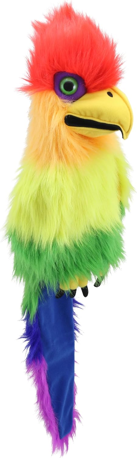 L'accattivante uccello arcobaleno con colori vivaci e un design sorprendente perfetto per il gioco creativo. Visivamente sorprendenti e altamente funzionali, questi hanno il vero fattore wow e dispongono di uno squittio in bocca per un valore di gioco aggiunto. Versatile e altamente funzionale, incontra i nostri favolosi burattini Large Birds! Questi burattini sorprendenti e funzionali presentano colori vivaci e disegni intricati, con caratteristiche espressive e squittii riempiti d'aria nei becchi per un gioco interattivo extra. Questo pupazzo guanto Rainbow Bird ha un viso meraviglioso, pelo lungo e belle finiture insieme a una bocca squawk e piena funzionante! Adatto a partire dai 18 mesi. Facili da usare per bambini e adulti, sono amati da tutte le età e sono il regalo perfetto e unico. Altezza media: 800 mm (compresa la coda)
