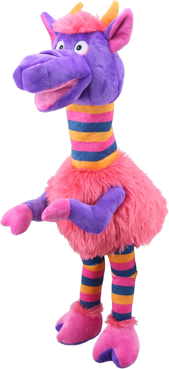 Incontra Codswallop - la mucca super carina ed extra amichevole con un volto espressivo e un carattere reale. Con una testa tufty e un corpo soffice insieme al caratteristico collo e gambe a righe per un maggiore impatto. Questo burattino Walky-Stompy' è pieno di carattere e facile da creare una vasta gamma di movimenti. Appositamente progettato per essere facile da usare per i bambini, farli camminare, calpestare, saltare e molto altro ancora! Versatili e altamente funzionali, questi personaggi più grandi della vita hanno un eccellente movimento della bocca e un sacco di personalità. Con nomi individuali, personaggi e personalità divertenti, questi portano ore di gioco divertente e fantasioso ovunque vadano! Adatto a partire dai 12 mesi. Altezza media: 60 cm