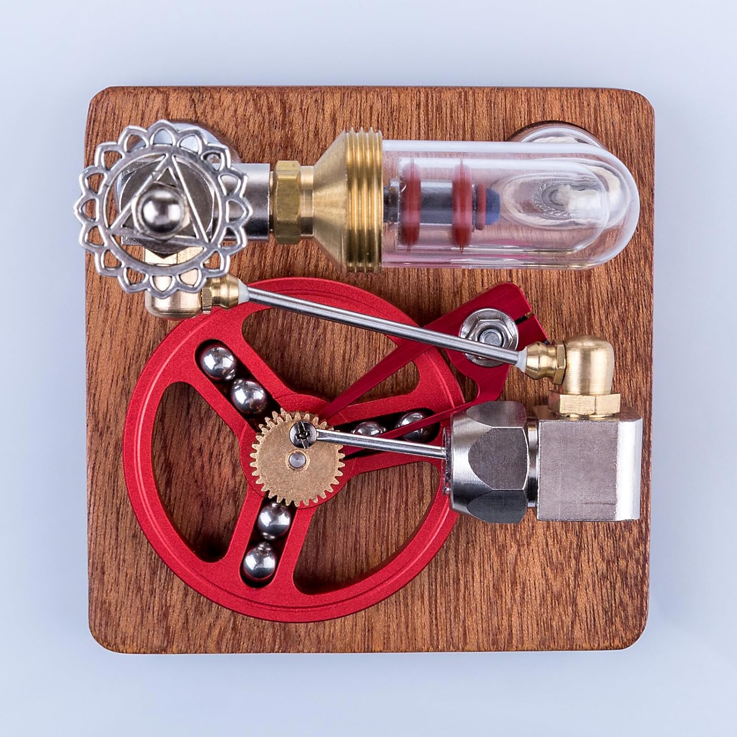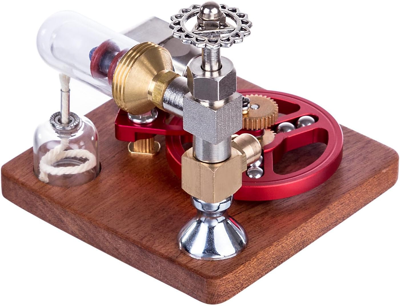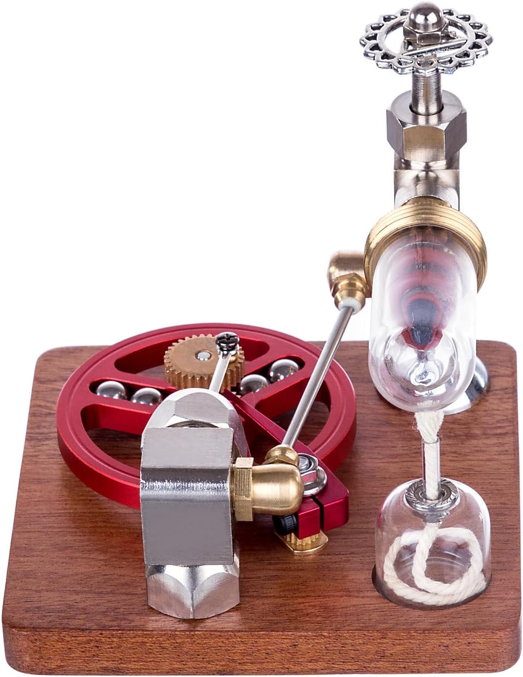 Questo modello di motore Stirling è nuovo e unico, con una sofisticata base in legno. La quantità di conduzione dell'aria può essere regolabile con la manopola superiore per controllare la velocità del motore Stirling, che è facile osservare la dinamica del psiton Le parti principali sono realizzate in lega di alluminio e ottone, robuste e durevoli. Il cilindro di riscaldamento è realizzato in vetro di quarzo, caratterizzato da un basso coefficiente di espansione e resistenza alle alte temperature. Carburante: 95% di alcol (non incluso) dovrebbe essere preparato. Non può aggiungere acqua, cherosene, benzina, olio per accendini, liquori, ecc. Metodo di avviamento: posizionare il modello di motore Stirling su un tavolo orizzontale, aggiungere due terzi di alcol al 95% alla lampada alcolica, accendere e riscaldare per 30 secondi, quindi ruotare il volano e il motore può funzionare.