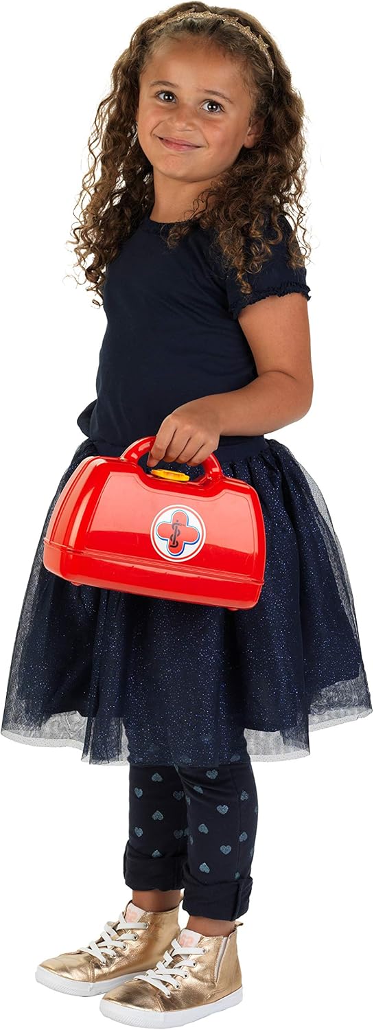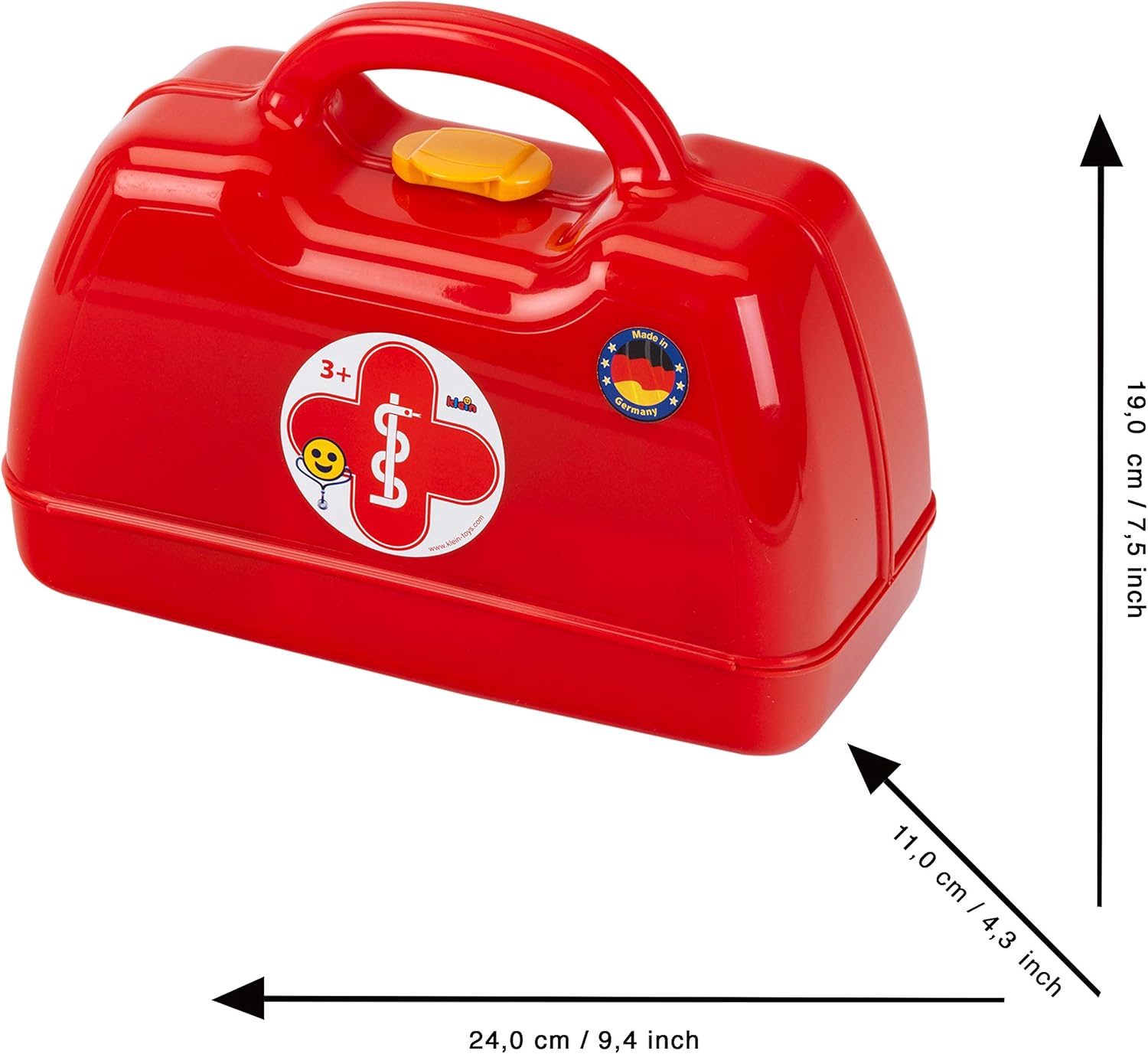 Con termometro per la febbre, martelletto per i riflessi, otoscopio e stetoscopio si possono fare diagnosi approfondite La pratica impugnatura della valigetta e gli strumenti sono ottimamente adeguati alle piccole mani dei bambini I graziosi accessori a misura di bambino allenano le capacità motorie e possono aiutare a ridurre la paura della visita medica Made in Germany Dimensioni: 24 cm x 11 cm x 19 cm I Adatto ai bambini a partire dai tre anni di età