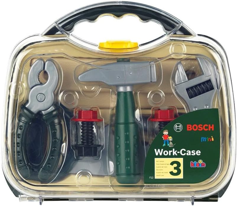 Prodotto su licenza Bosch Fornito con i seguenti accessori: valigetta con vetrina, martello, cacciavite, chiave, viti, dadi e strisce Avvita le strisce insieme con l'aiuto del cacciavite, viti e dadi La valigetta porta attrezzi Bosch è studiata nello stile originale Bosch Imitando i genitori giocando si sviluppa la fantasia, creatività e il senso motorio