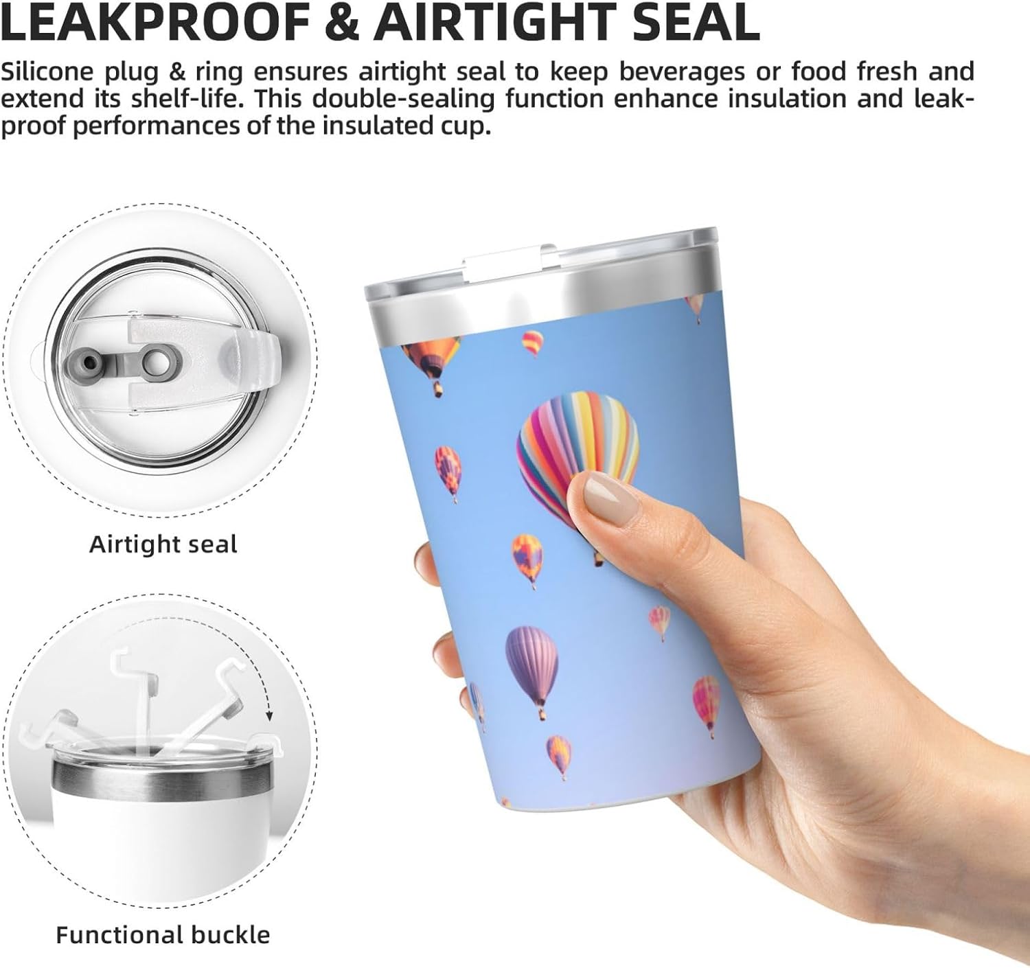 Design innovativo: questa tazza d'acqua stampata con mongolfiera adotta un design a doppia bocca, che può essere abbinata a una cannuccia estesa di 15 cm per bere elegante, o bere direttamente attraverso il foro laterale ribaltabile. Selezione di materiali di alta qualità: fodera selezionata in acciaio inossidabile 304 per uso alimentare con guscio in acciaio inossidabile 201, copertura in materiale PS, tripla protezione per garantire la sicurezza dell'acqua potabile, in modo che ogni sorso mantenga la migliore temperatura. Dettagli intimi: una cannuccia staccabile è data con la tazza, che può facilmente far fronte a diverse scene di bevute e il processo di stampa accuratamente progettato è durevole. Adattamento della scena: che si tratti di ufficio, palestra o viaggi all'aperto, questa tazza d'acqua può essere adattata perfettamente. Il design di ampio calibro è comodo per la pulizia del ghiaccio e soddisfa le esigenze di bere in tutte le stagioni. Istruzioni per il lavaggio: si prega di utilizzare un detergente neutro e un panno morbido per pulire ed evitare graffi da oggetti duri. Si consiglia di sostituire regolarmente l'anello di tenuta in silicone per garantire l'igiene dell'acqua potabile e le prestazioni di tenuta.