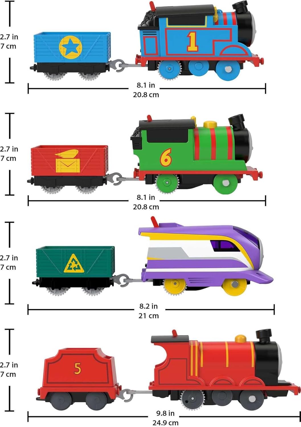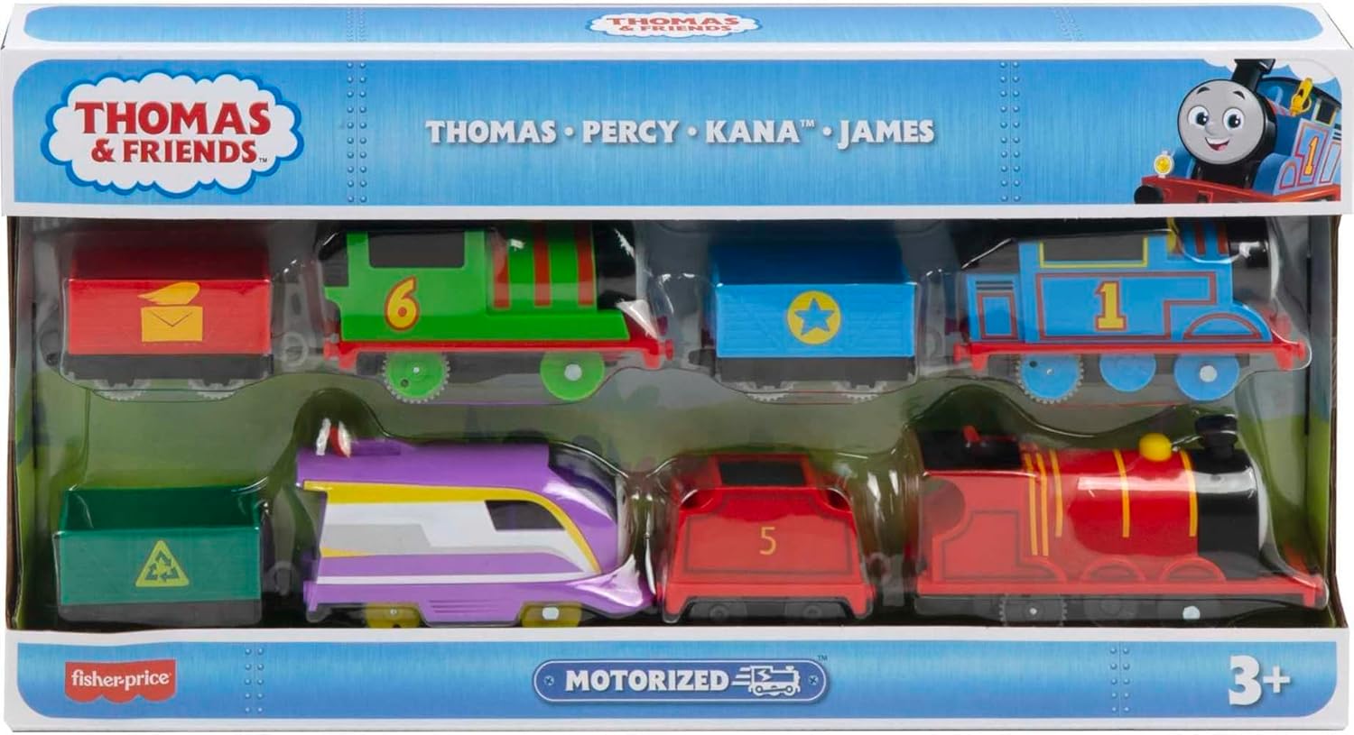 Emozionanti avventure Sodor ti aspettano con questo set di amici motore Thomas & Friends motorizzati! (Ciascuno venduto separatamente e soggetto a disponibilità.) Dispone di 4 personaggi preferiti dello spettacolo tra cui Thomas, Percy, Kana e James Capovolgere l'interruttore in alto per far correre ogni motore alimentato a batteria lungo qualsiasi pista Thomas & Friends tranne il legno (set di binari venduti separatamente e soggetto a disponibilità.) Viene fornito con connettori in plastica per attaccarlo ad altri treni Thomas & Friends o veicoli, vagoni cargo o tender (veicoli aggiuntivi e pezzi da gioco venduti separatamente e soggetti a disponibilità.) Per conduttori in età prescolare dai 3 anni in su