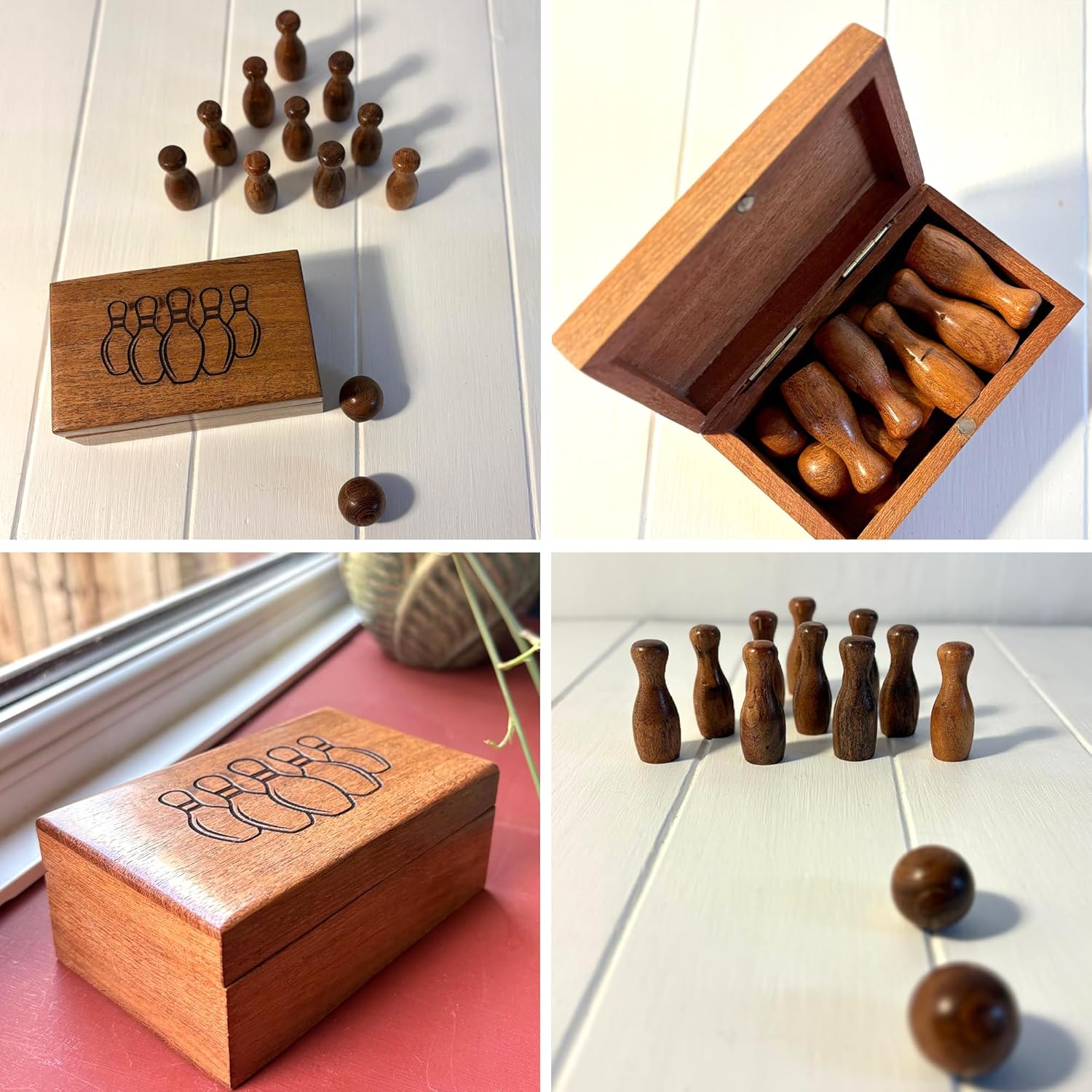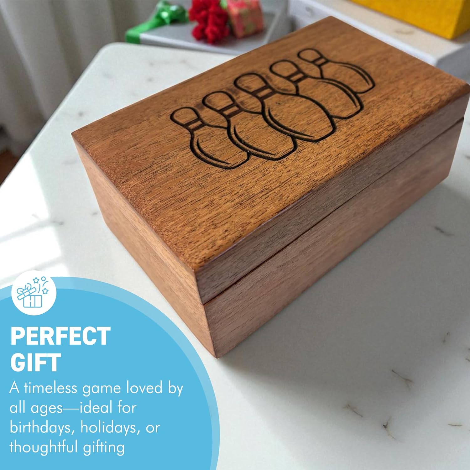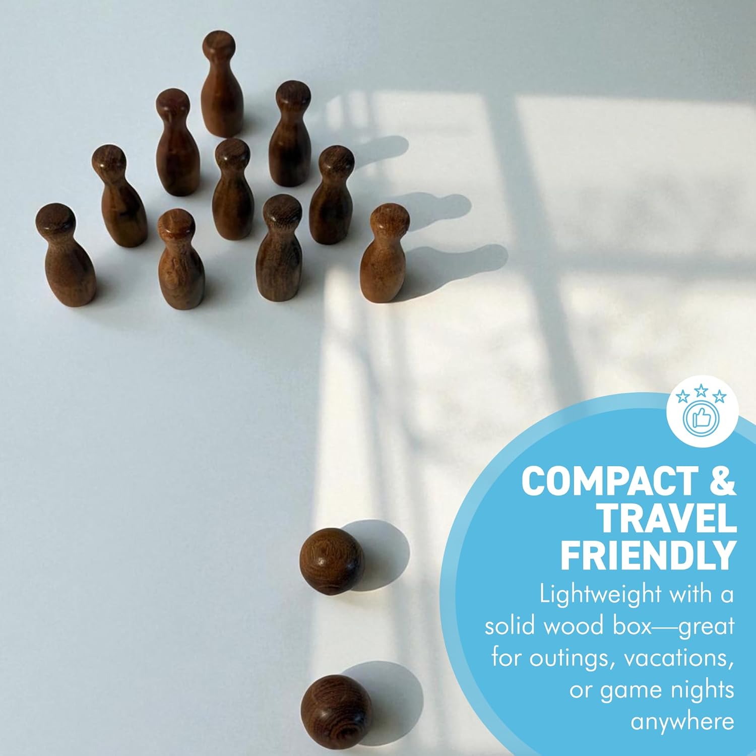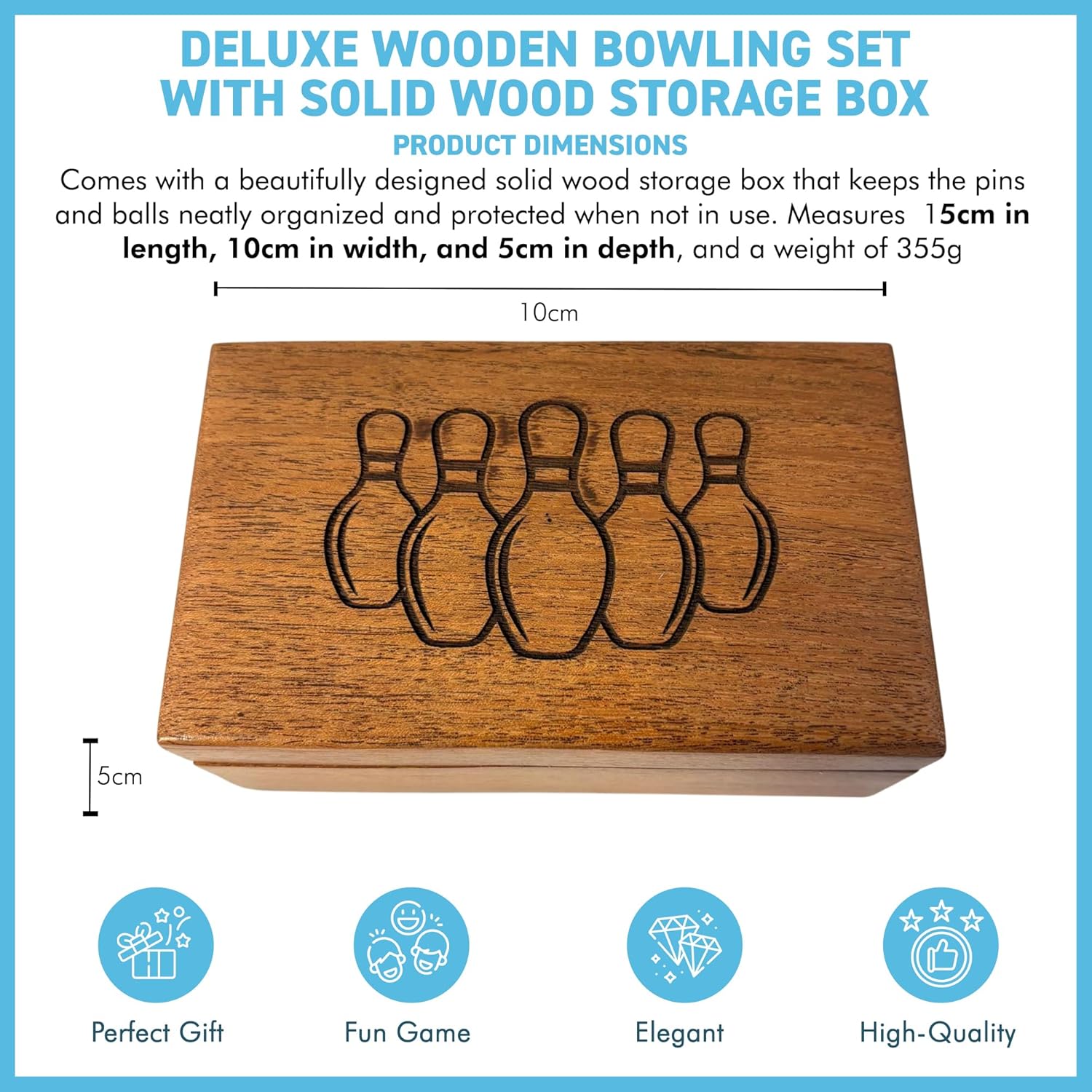 Struttura di qualità: questo set da bowling in legno premium è sapientemente realizzato in legno Shesham di alta qualità, con un ricco colore marrone. Intrattenimento familiare: perfetto per tutte le età, questo classico set da bowling è progettato per portare ore di divertimento alle riunioni di famiglia o alle serate di gioco. Il set da bowling indoor è portatile e facile da trasportare. Regalo per ogni occasione: che si tratti di un compleanno, una vacanza o un evento speciale, questo regalo da bowling per tutte le età è un regalo premuroso e memorabile. Il design senza tempo e il fascino universale del set assicurano che sia amato da bambini e adulti. Design ecologico: realizzato in legno Shesham sostenibile, questo giocattolo sportivo in legno è un'alternativa ecologica ai tradizionali legni duri come teak e mogano. Soluzione di stoccaggio: il set da bowling in legno di alta qualità viene fornito con una scatola in legno massello dal design accattivante che aggiunge raffinatezza al set mantenendo i perni e le palline ordinatamente organizzati e protetti. Con dimensioni di 15 cm di lunghezza, 10 cm di larghezza e 5 cm di profondità e un peso di 355 g.