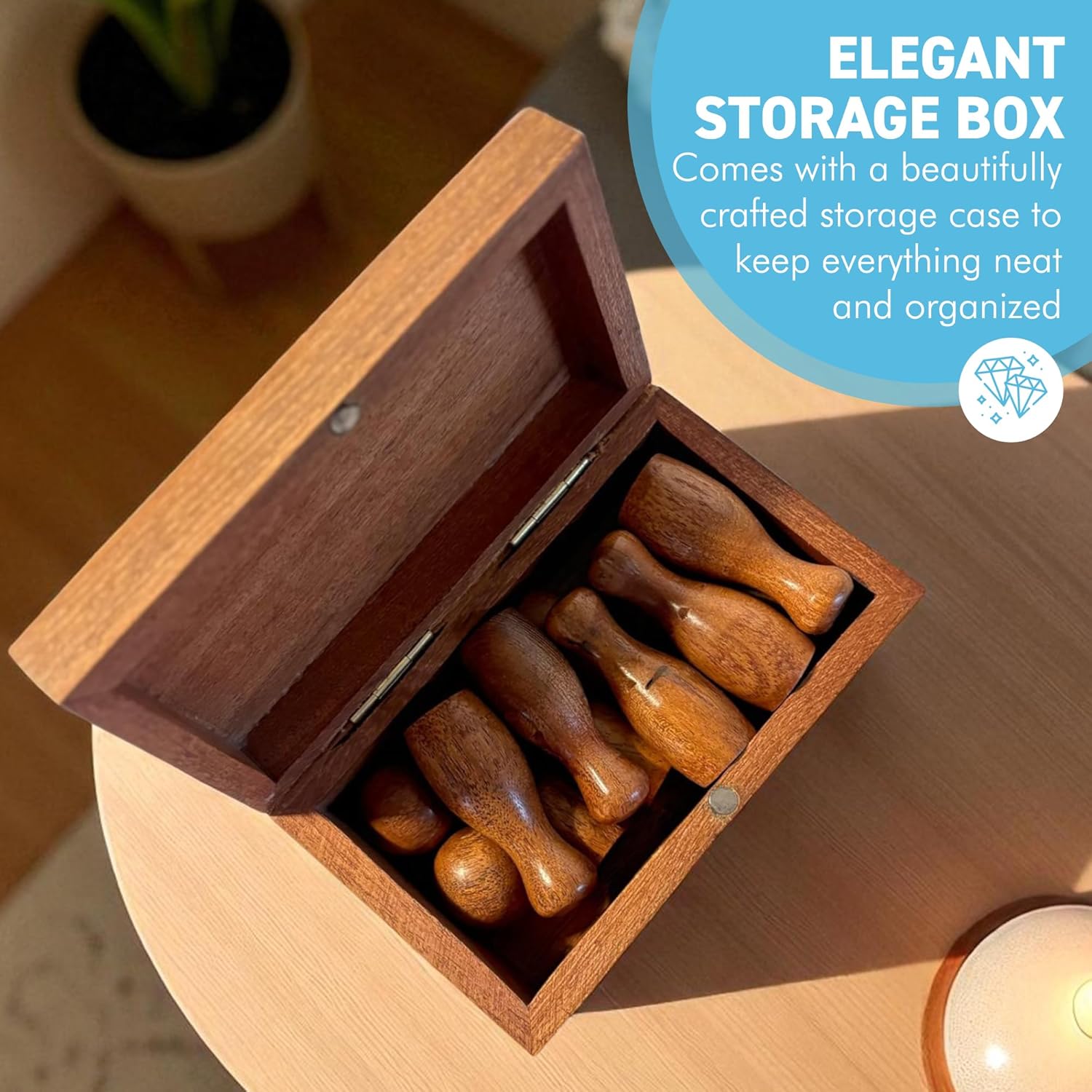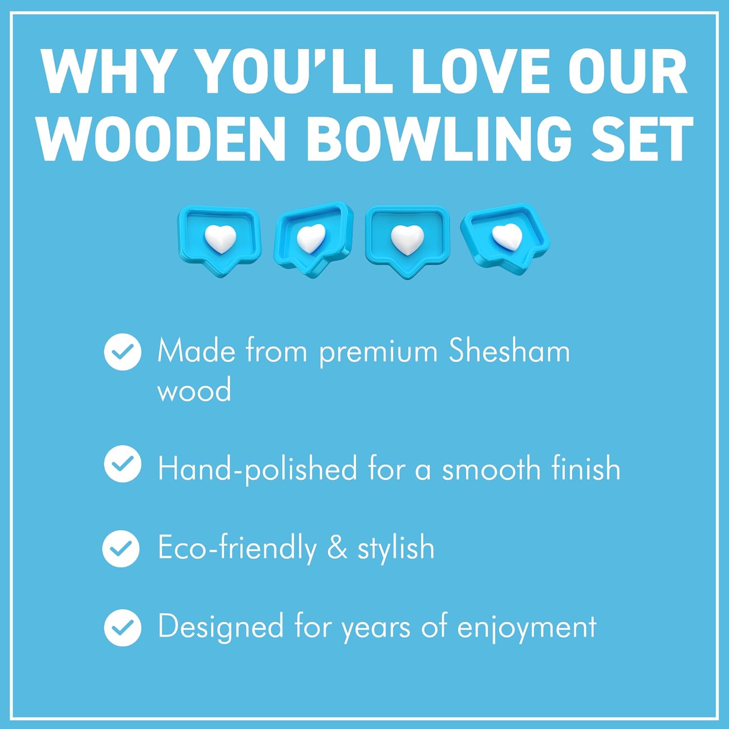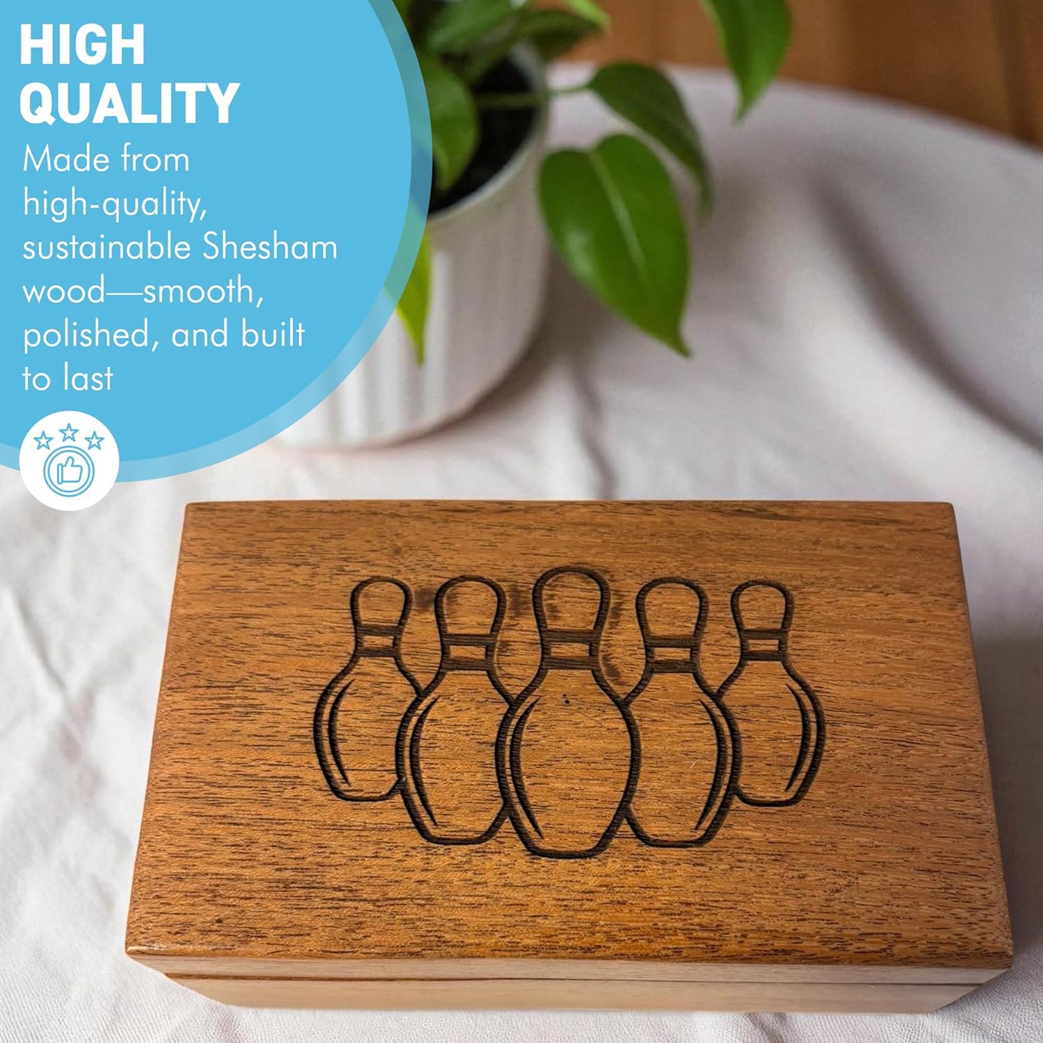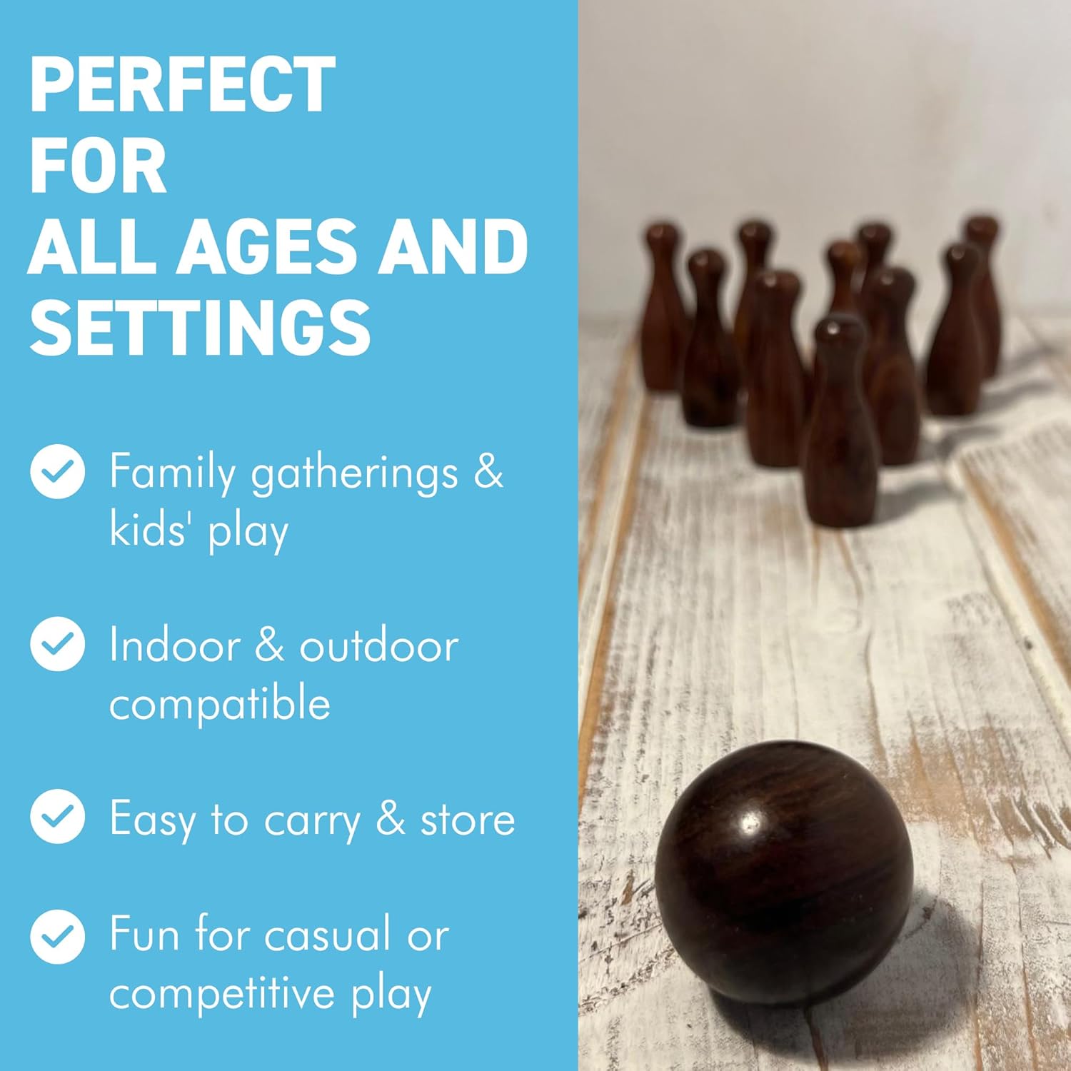 Struttura di qualità: questo set da bowling in legno premium è sapientemente realizzato in legno Shesham di alta qualità, con un ricco colore marrone. Intrattenimento familiare: perfetto per tutte le età, questo classico set da bowling è progettato per portare ore di divertimento alle riunioni di famiglia o alle serate di gioco. Il set da bowling indoor è portatile e facile da trasportare. Regalo per ogni occasione: che si tratti di un compleanno, una vacanza o un evento speciale, questo regalo da bowling per tutte le età è un regalo premuroso e memorabile. Il design senza tempo e il fascino universale del set assicurano che sia amato da bambini e adulti. Design ecologico: realizzato in legno Shesham sostenibile, questo giocattolo sportivo in legno è un'alternativa ecologica ai tradizionali legni duri come teak e mogano. Soluzione di stoccaggio: il set da bowling in legno di alta qualità viene fornito con una scatola in legno massello dal design accattivante che aggiunge raffinatezza al set mantenendo i perni e le palline ordinatamente organizzati e protetti. Con dimensioni di 15 cm di lunghezza, 10 cm di larghezza e 5 cm di profondità e un peso di 355 g.