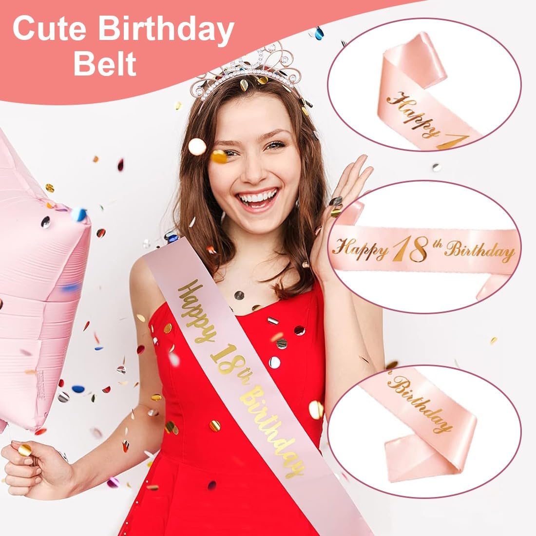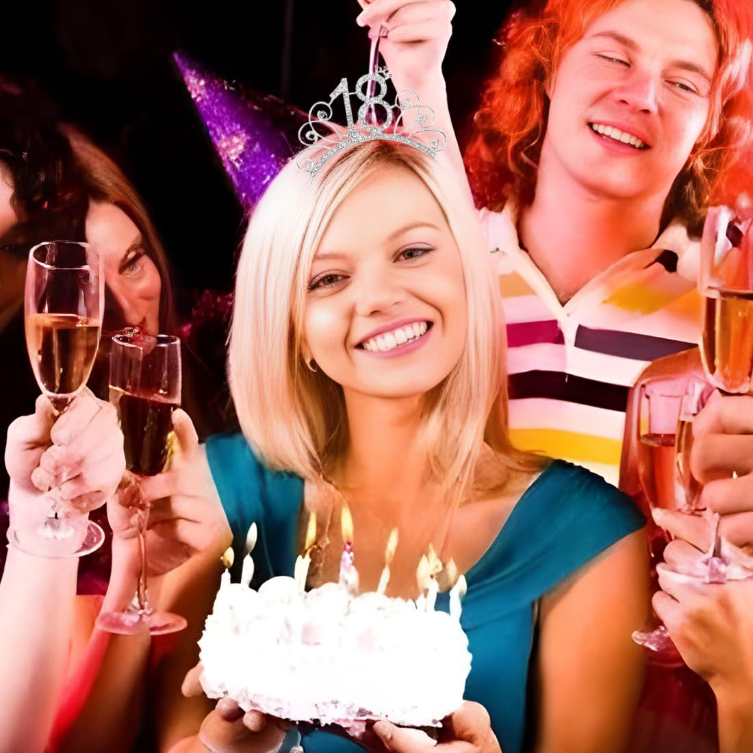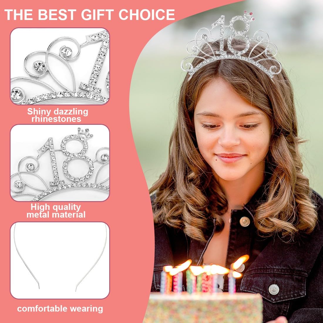 Il set di fascia per corona di compleanno include: Il pacchetto include 1 corona di compleanno con strass in metallo + fascia di buon compleanno. Decorazione di compleanno: la tiara è realizzata in lega e cristalli scintillanti per completare il classico look da principessa. Fascia lucida "Happy 18th Birthday": la fascia decorativa per il 18° compleanno con la scritta in lamina "Happy 18th Birthday" è realizzata in un tessuto scintillante di alta qualità ed è lavorata in modo eccellente. Accessori per foto: il set della ragazza con la corona di compleanno è molto carino e dolce. Il set di corone di compleanno ti regala una festa a tema unica che sarà un'esperienza indimenticabile e speciale. Ampie applicazioni: questa corona non è solo la decorazione perfetta per compleanni, balli, concorsi e feste, ma può anche essere utilizzata come supporto fotografico per creare un'atmosfera divertente.