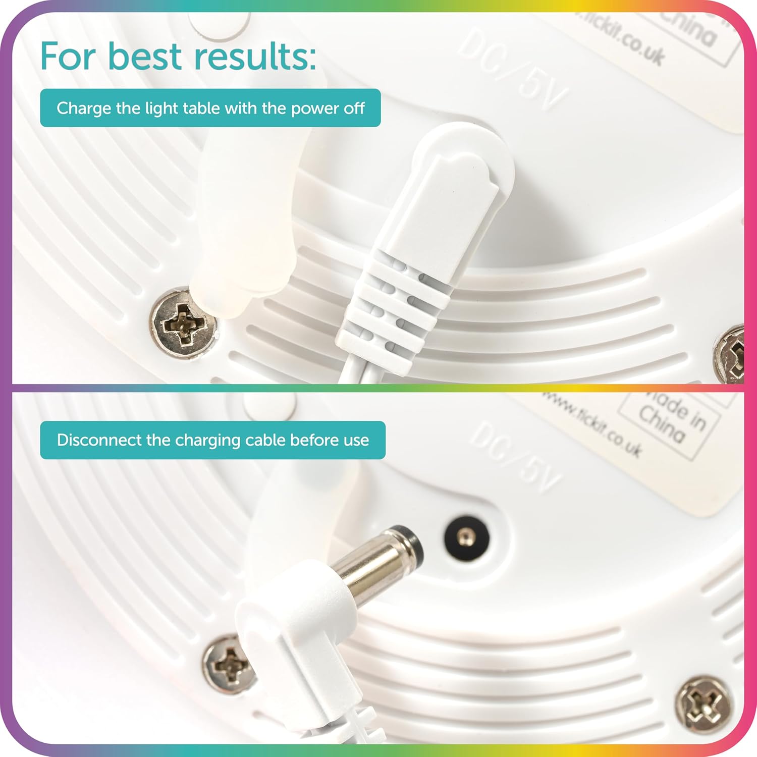 Resistente all'acqua: le luci d'atmosfera TickiT sono resistenti all'acqua e rappresentano una grande risorsa per combinare l'esplorazione dell'acqua e della luce in un'unica attività. Costruite per durare: in plastica resistente e robusta, testate fino a 80 kg. Facile da usare: telecomando incluso per accensione/spegnimento e cambio colore. Diametro 700 mm, altezza: 400 mm. Ore di divertimento: fornisce fino a 10 ore di illuminazione continua (a seconda del programma), quindi ricaricare utilizzando l'unità di ricarica in dotazione.