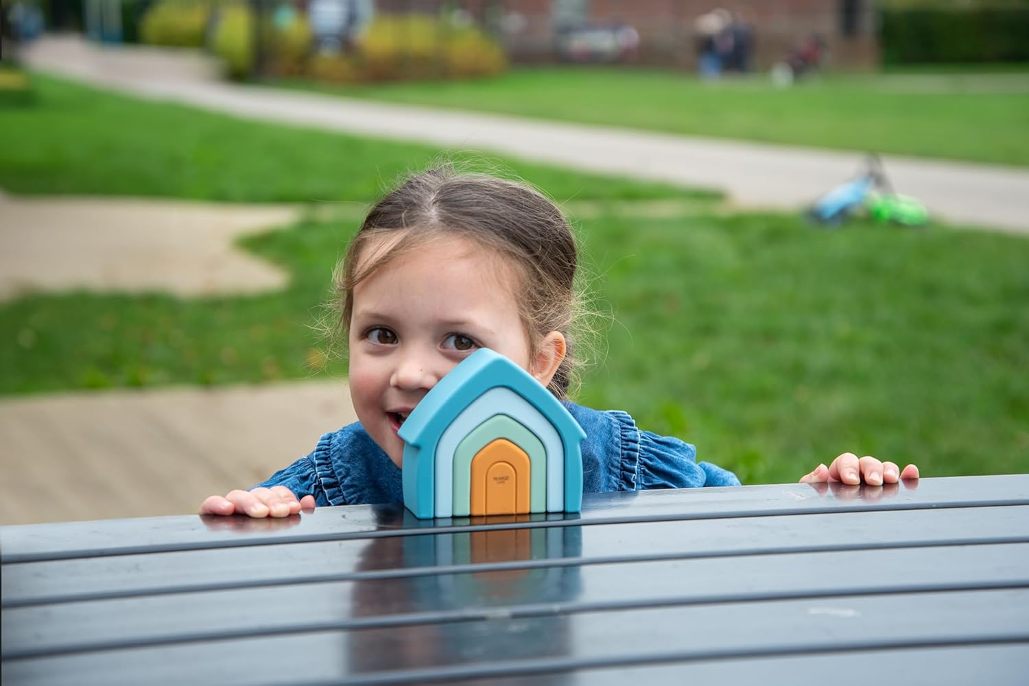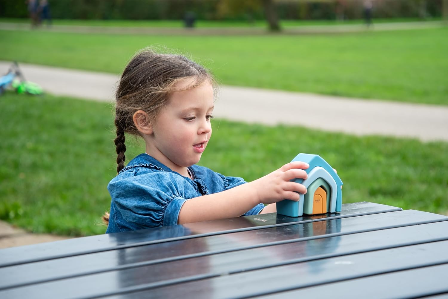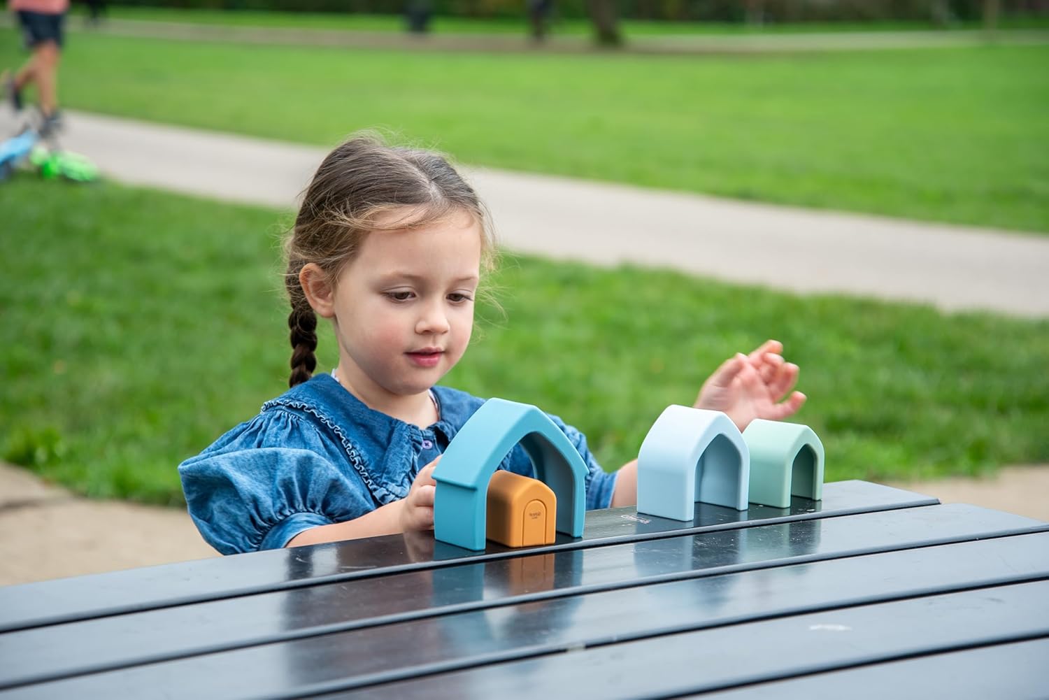 PROMUOVE LO SVILUPPO PRECOCE - Supporta giocosamente lo sviluppo delle capacità motorie, della coordinazione occhio-mano e del pensiero spaziale. GIOCO APERTO PER LA CREATIVITÀ - Incoraggia storie fantasiose, costruzione creativa e apprendimento indipendente durante il gioco. MORBIDO, ROBUSTO E SICURO PER IL BAMBINO - Realizzato in silicone alimentare, delicato sulle gengive sensibili, resistente e facile da pulire. COLORI NEUTRI CALMANTI - Colori eleganti e tenui che si fondono armoniosamente in qualsiasi cameretta moderna o ambiente di gioco.