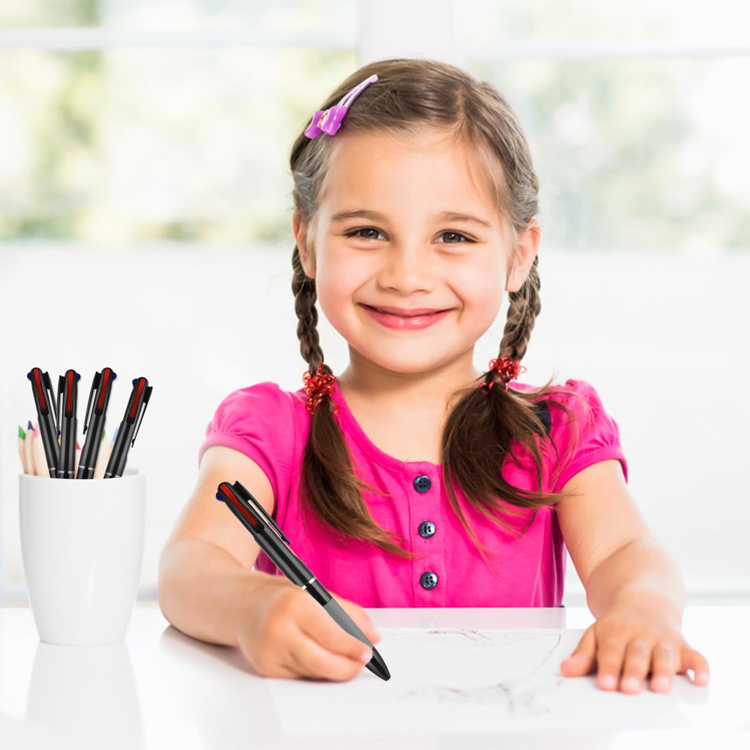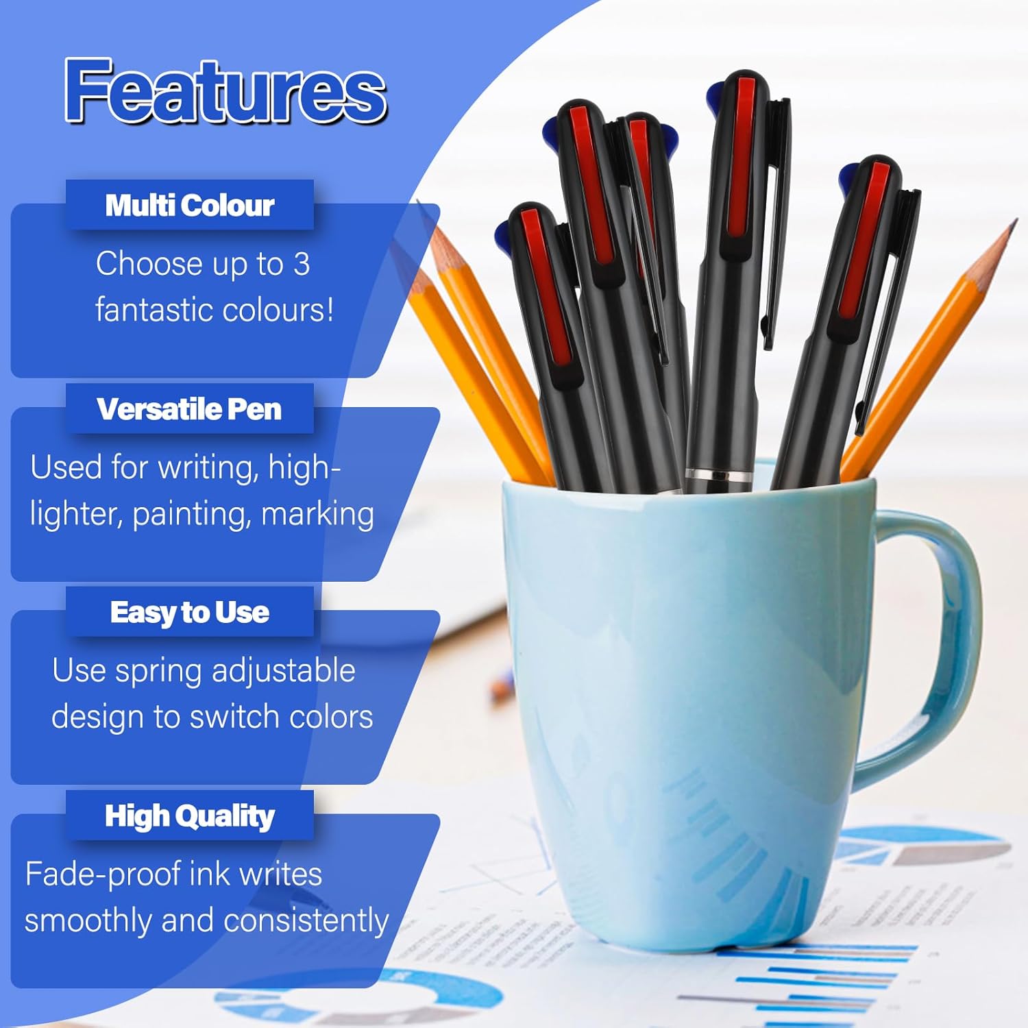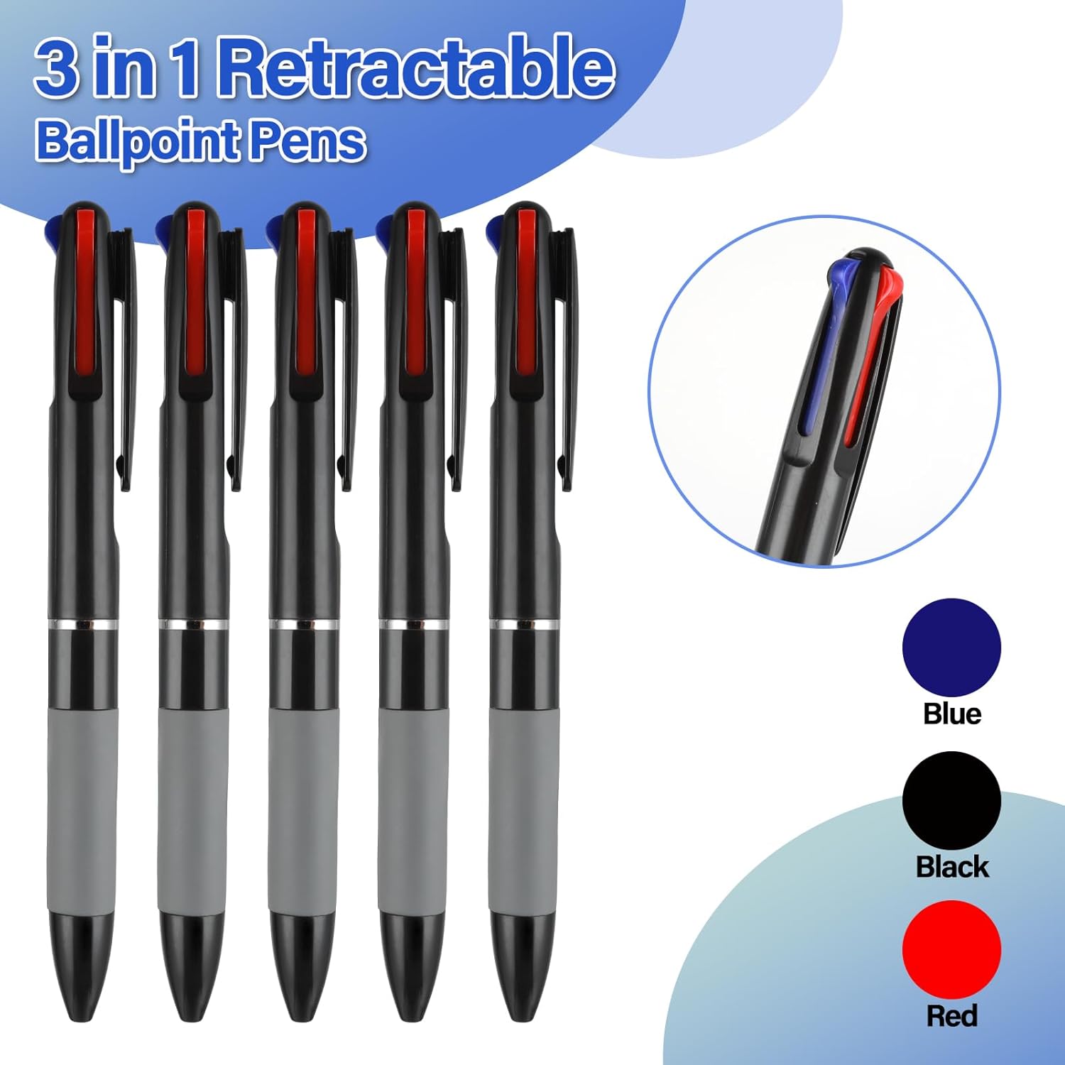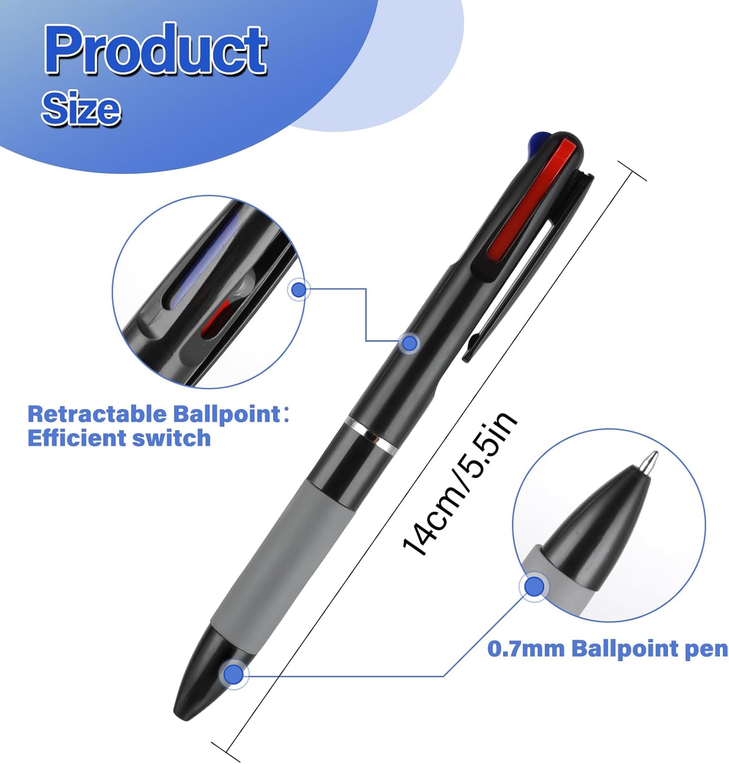 Penne a inchiostro colorato 3 in 1: con questa penna a sfera retrattile 3 in 1, è possibile alternare 3 colori di inchiostro classico: nero, blu e rosso. I tre colori sono i colori più comunemente usati dagli studenti moderni, dai colletti bianchi e dagli insegnanti. La versatilità di vari colori è perfetta per evidenziare punti importanti in testo o note codificate a colori. Basta premere il pulsante superiore della penna a sfera per passare comodamente da un colore all'altro. Scrittura fluida: la nostra penna a inchiostro multicolore non è solo colorata, ma anche liscia e precisa. La punta da 0,7 mm offre una linea uniforme e pulita, non troppo spessa o troppo sottile. L'inchiostro di alta qualità scorre senza intoppi senza saltare o sbavare. Sia che tu stia prendendo appunti, scrivendo una lettera o scarabocchiando, godrai dell'esperienza di scrittura fluida di questa penna. Impugnatura comoda: realizzate in plastica di alta qualità, le nostre penne colorate presentano una superficie liscia e resistente all'usura. L'impugnatura gommata offre comfort durante lunghe sessioni di scrittura. Nonostante il suo design a tre colori, questa penna pesa solo 9,6 g, riducendo al minimo l'affaticamento anche durante un uso prolungato. Comoda clip per penna: queste penne a sfera multicolore hanno un aspetto semplice e sono abilmente integrate nel design a clip. Ciò consente un facile fissaggio alla tasca sul petto o al notebook, rendendolo incredibilmente comodo da trasportare e utilizzare. È possibile estrarre questa penna a inchiostro multicolore in qualsiasi momento quando si viaggia, in viaggio d'affari o in riunioni. Regalo pratico: riceverai 5 penne a inchiostro multicolore 3 in 1. Vari colori sono buoni per evidenziare o codificare i punti chiave nel testo o per fare appunti, regali utili e divertenti per studenti, bambini, impiegati e altro ancora, e adatti per disegnare progetti artistici e testo codificante a colori.