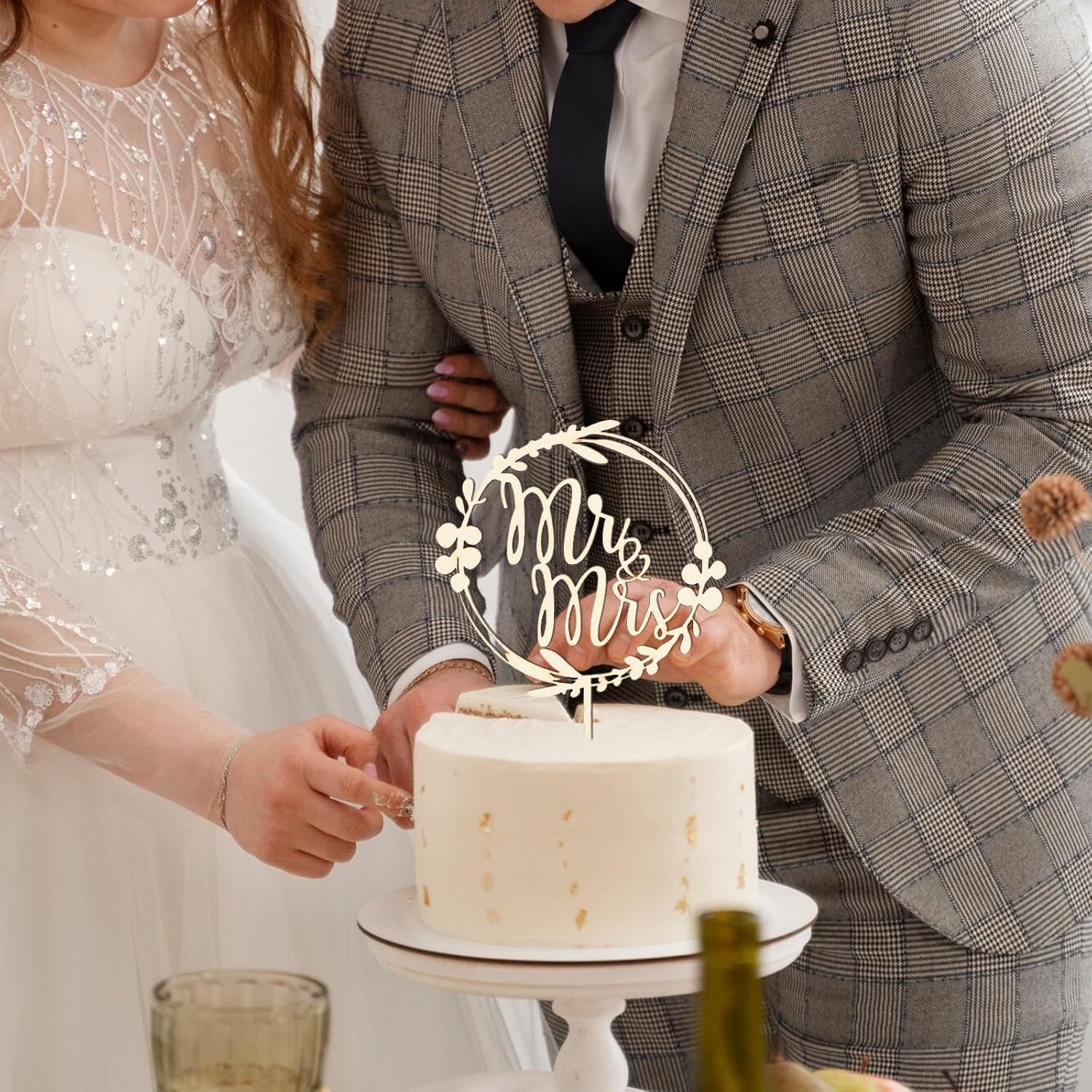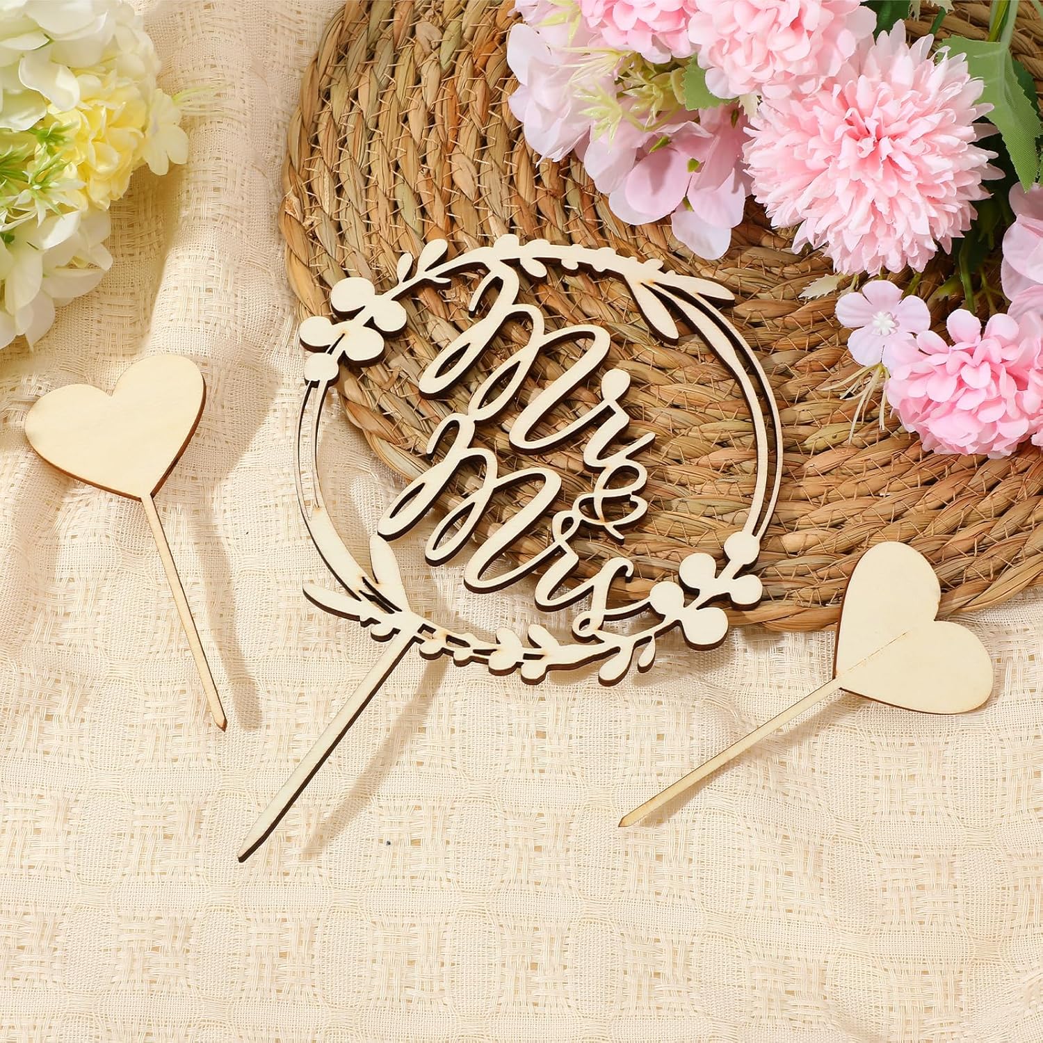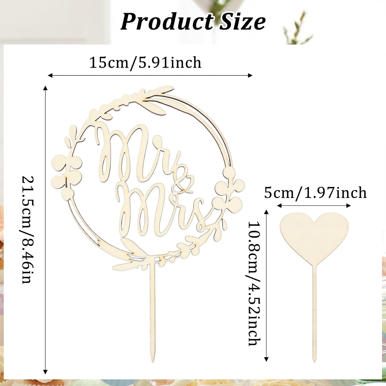 Topper per torta nuziale: riceverete 3 decorazioni per torte in legno, contiene 1 15 x 21,5 cm, spessore 4 mm, con scritta "Mr e Mrs" e 2 spine per torte a forma di cuore da 5 x 10,8 cm. Il design a foglia sull'anello esterno e il design cavo, semplice ed elegante, per dare alla tua torta il tocco finale, rendere le torte ancora più deliziose, rendono la decorazione della tua tavola ancora più attraente Decorazione in legno Mr e Mrs: le decorazioni per torta nuziale sono dotate di una bella scritta Mr & Mrs e il design a forma di cuore e 2 decorazioni per torte a forma di cuore con un'area scrivibile che puoi personalizzare con nome o data, fai da te il tuo colore preferito. Il design a forma di cuore simboleggia l'amore e gli auguri e celebra la sposa e lo sposo Materiali di alta qualità: questo set di decorazioni per matrimoni è realizzato in legno di alta qualità con un design amichevole inodore, può essere utilizzato più volte. Tecnologia laser di precisione, che conferisce un aspetto elegante e raffinato. Aspetto vintage naturale e rustico, stesso colore su entrambi i lati, è la scelta perfetta per una festa di nozze Decorazione per torta nuziale in legno: come è una torta in legno, è solo per la decorazione di torte, non commestibile, non può essere utilizzata in forno o nel microonde. Tenere il prodotto fuori dalla portata dei bambini Versatile: la decorazione per torte in legno Mr e Mrs è perfetta per matrimoni, fidanzamenti, feste di nozze e feste di anniversario. Può decorare cupcakes, gelati e altri alimenti, aggiungere un po 'di gioia alla vostra festa di nozze. Questi elementi decorativi sono l'attrazione di ogni torta nuziale e conferiscono a ogni torta un tocco personale