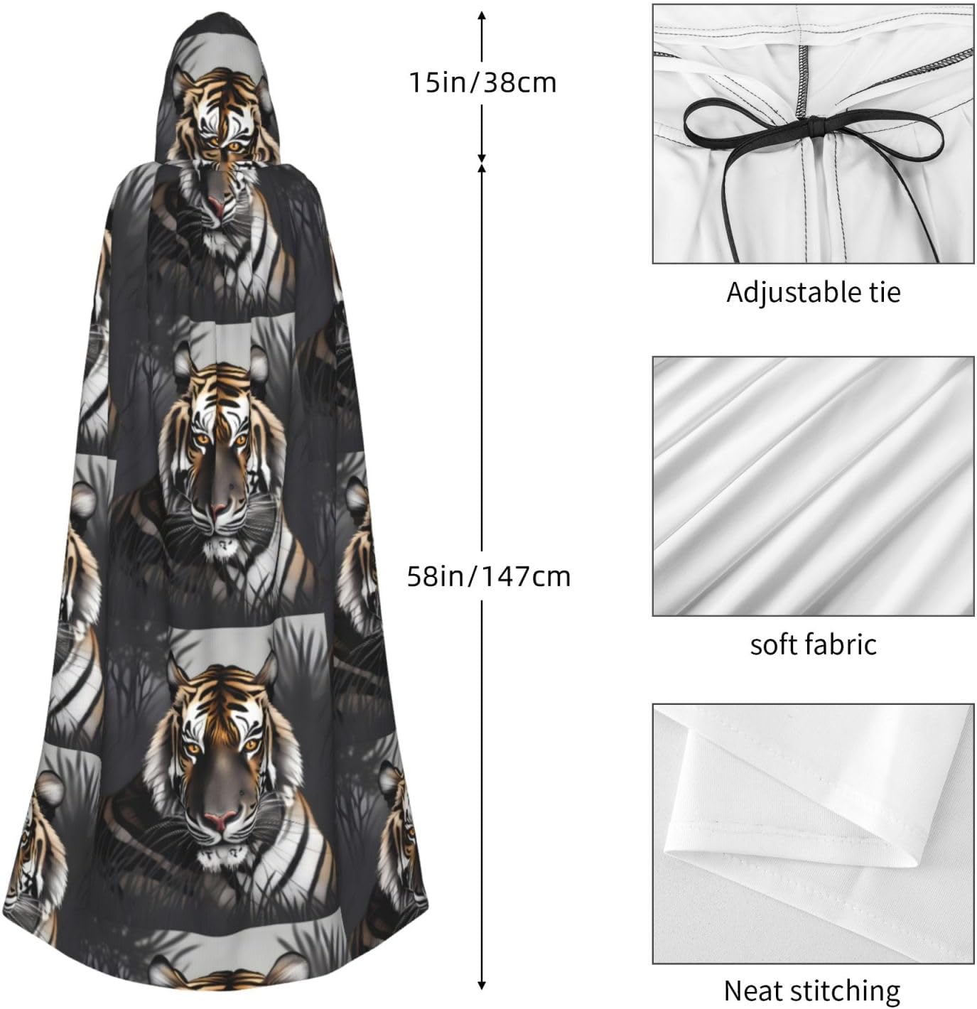 Materiale e design Tiger At Rest: il tessuto è realizzato in 100% fibra di poliestere (poliestere) tessuto di alta qualità, morbido e confortevole. Il design con cappuccio non è solo elegante e bello, ma fornisce anche calore extra alla testa e al collo. Caratteristiche del prodotto: il poncho oversize con cappuccio è un poncho con cappuccio senza lacci, senza cerniera, comodo realizzato in tessuto lungo, resistente e non prurito. Dimensioni del prodotto: il cappello misura 38,1 cm di altezza, 147,3 cm di lunghezza, 154 cm di larghezza. Adatto per occasioni: feste di Natale, feste di Halloween, feste in costume, celebrazioni pagane. Ideale per travestimenti, cosplay, costumi da scena, streghe, vampiri, royalty, scelta regalo perfetta per amici o familiari. Persone applicabili: adulti, unisex