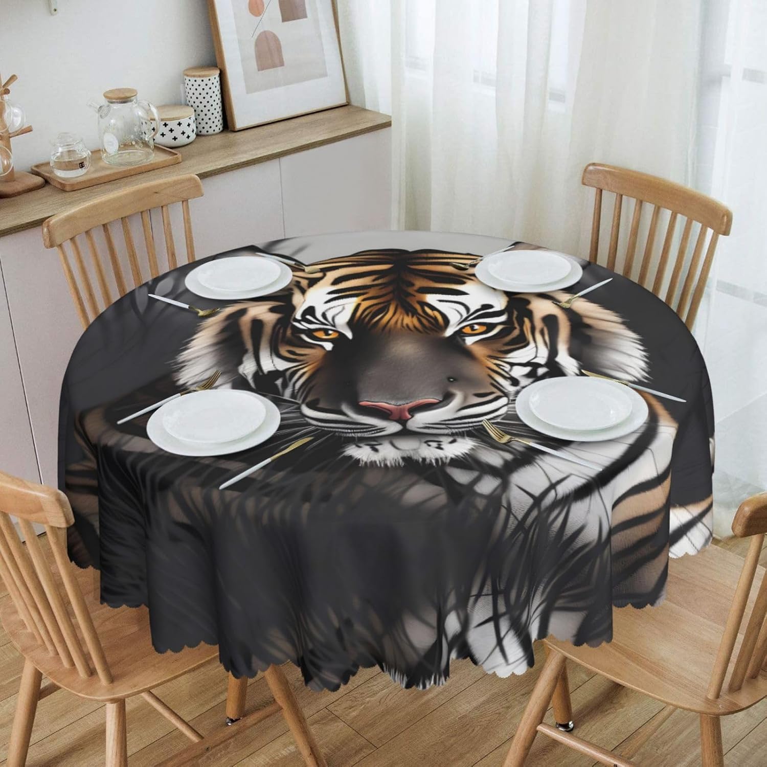 Tovaglia rotonda in pizzo Tiger at rest: 60 "di diametro, con dettagli eleganti e raffinati, adatta per tavoli da pranzo e tavoli da pranzo familiari, che migliora l'atmosfera della stanza, come un'opera d'arte. un'atmosfera piacevole, le cene in famiglia aggiungono calore, i picnic uniscono natura e cibo e le feste di matrimonio sono elementi decorativi, adatti a tutti i tipi di tavoli rotondi. Morbido al tatto: la tovaglia sembra seta, ha una buona resistenza alle pieghe, protegge il piano del tavolo dalle macchie, rende il piano del tavolo pieno di vitalità e un nuovo aspetto molto tempo.