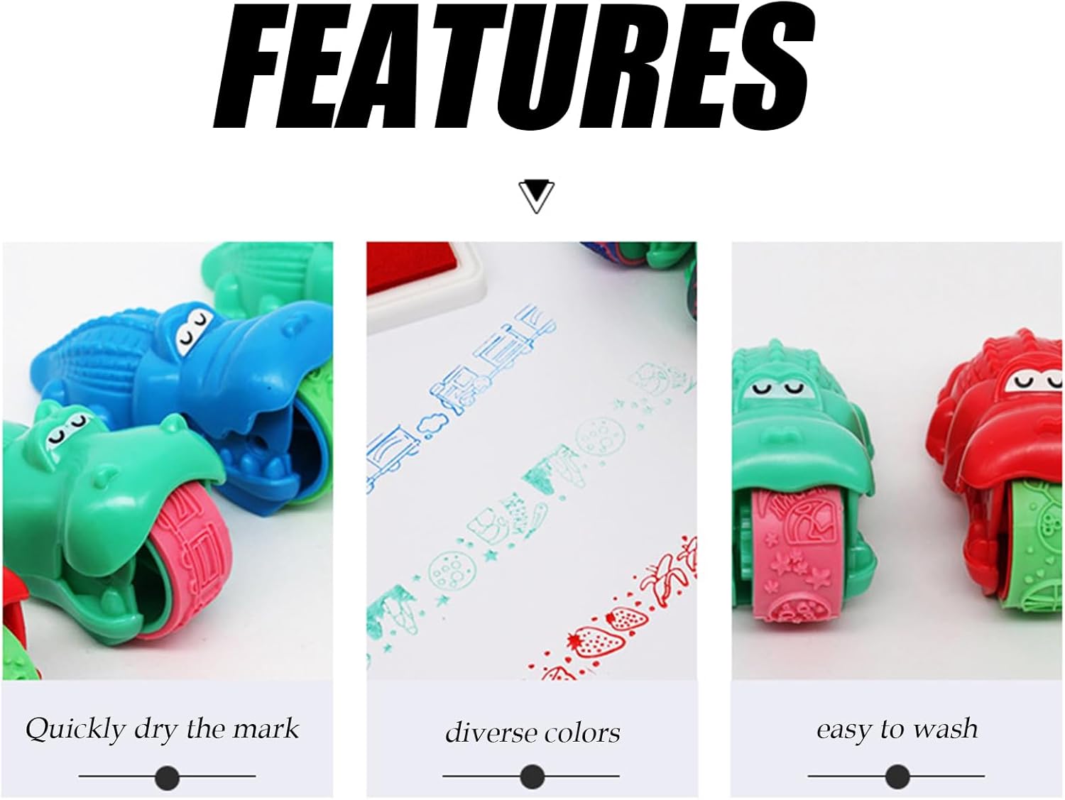 Strumento Apprendimento Divertente: Sviluppa abilità motorie fini unendo gioco e didattica per migliorare la percezione artistica, affinare la coordinazione occhio-mano e incoraggiare creatività e pensiero logico con attività dinamiche di timbratura. Design sicuro e duraturo: Grazie ai materiali in gomma e ABS di alta resistenza, i timbri a rulla includono un serbatoio d'inchiostro ricaricabile e una costruzione robusta, garantendo un'attività creativa affidabile e priva di rischi per i bambini Stimolo cognitivo:Promuovono il riconoscimento cromatico e le capacità compositive, migliorando diverse abilità mentali. Utilizzabili in ambienti domestici, scolastici o ricreativi, agevolano l'identificazione spontanea e forme zoologiche. Immaginazione Artistica: Timbri con animali cartoon e dinosauri accendono la creatività rendendo la stampa divertente e stimolante per bambini, migliorando l'interazione genitori-figli attraverso il gioco artistico condiviso. Facile da Pulire: Design rotante scorrevole e superfici levigate consentono pulizia rapida con rimozione senza sforzo 'inchiostro residuo, ideale per uso frequente e creazione intuitiva di disegni da parte dei bambini.