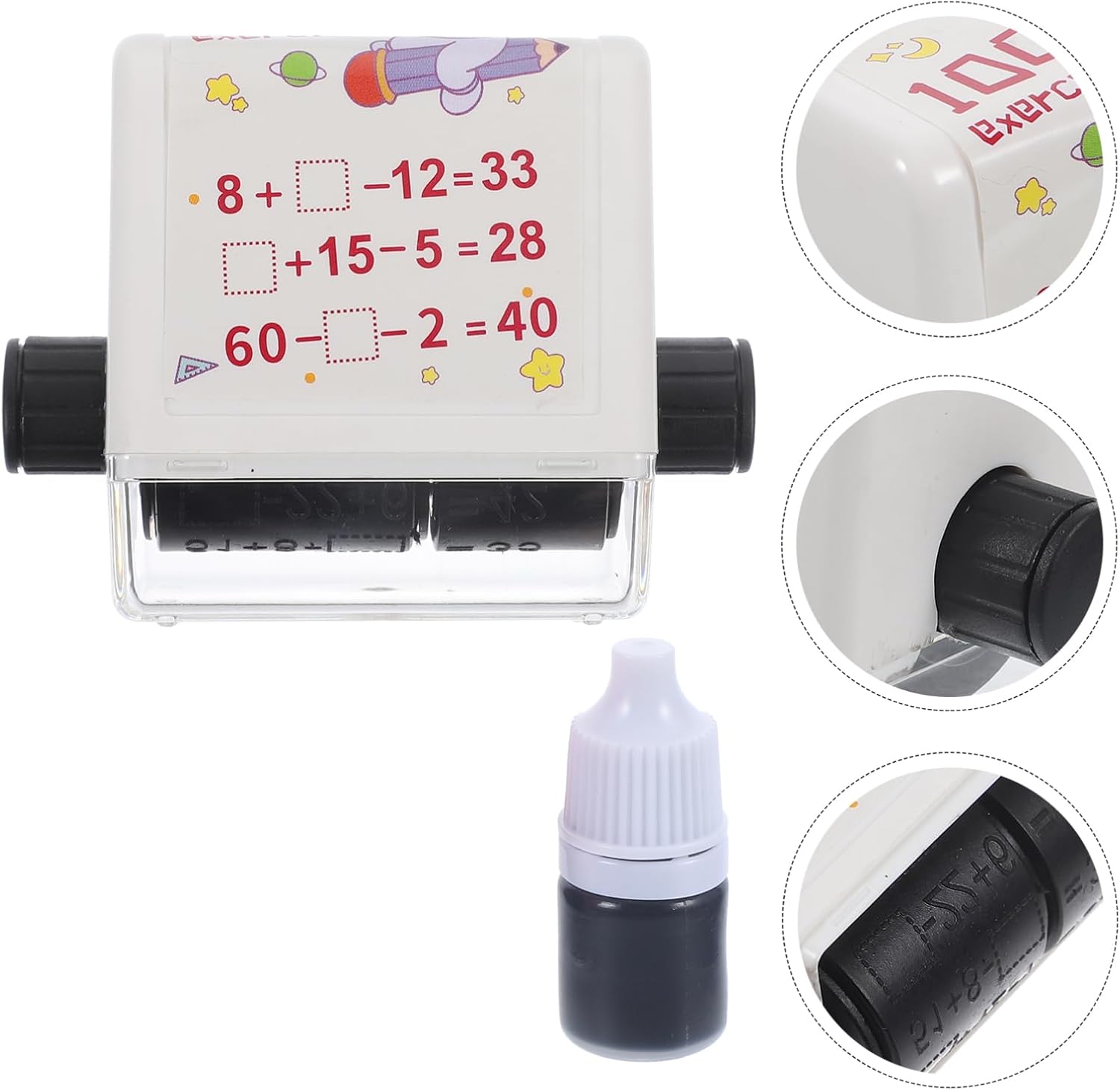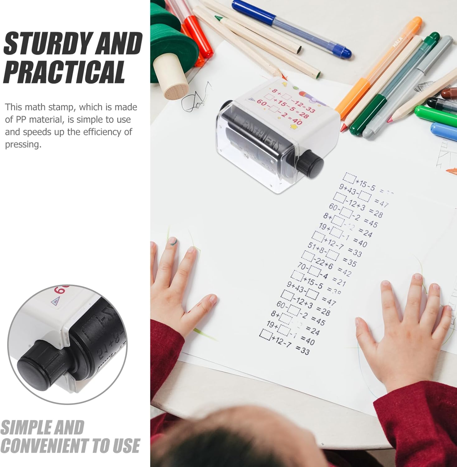 Timbro per matematica per studenti: stampa chiara e senza sbiadimento, il problema di matematica può essere facilmente modificato girando la ruota, timbro per matematica Timbro per apprendimento per studenti: i timbri a rullo digitali sono divertenti come giocattoli per rendere l'apprendimento della matematica facile e divertente per gli studenti, rullo per timbri per matematica Timbro a rullo per insegnamento digitale: facile da usare, il problema di matematica può apparire di fronte agli studenti facendo rotolare il timbro, che può essere regolato, timbro a rullo per addizioni e sottrazioni Per la matematica: utilizzando materiale pp, il timbro Il timbro a rullo per matematica per studenti può essere supportato a lungo, piccolo timbro a rullo Rullo matematico riutilizzabile: dotato di scarico automatico dell'olio, non puoi mai preoccuparti che la rottura dell'olio distrugga il modello completo del timbro, timbro di apprendimento
