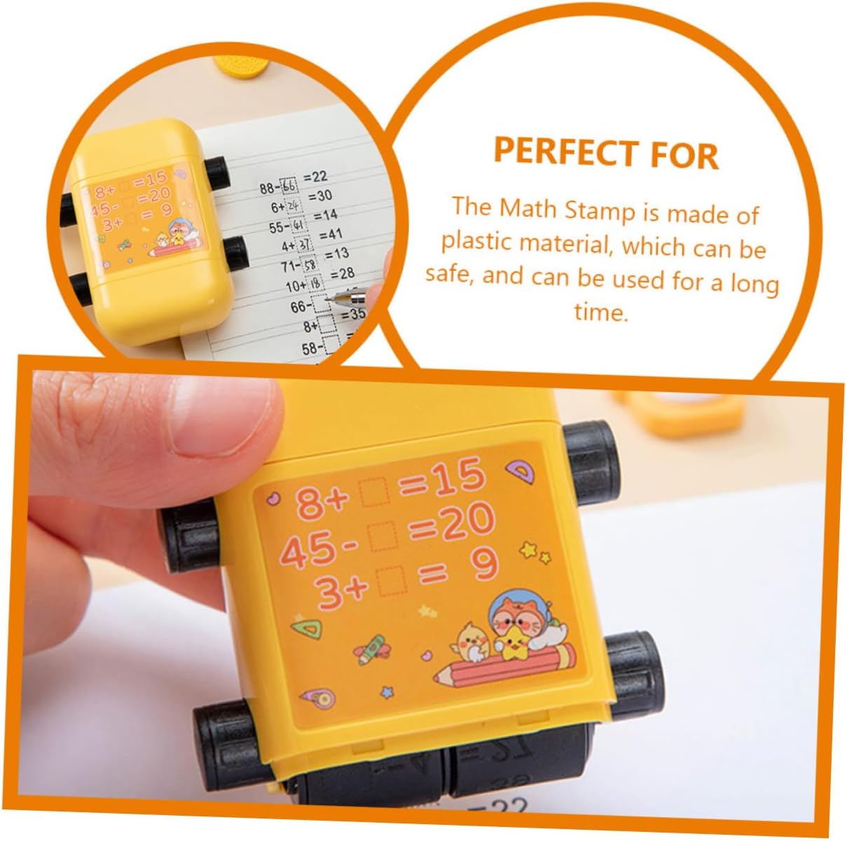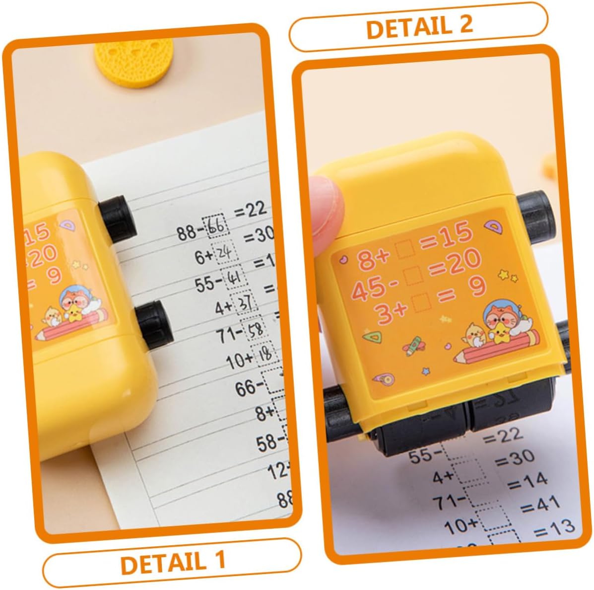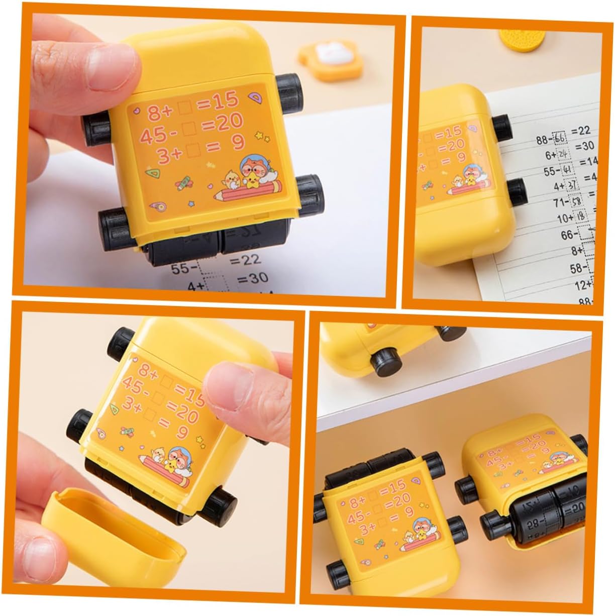 TIMBRO A RULLO COMPATTO: i timbri a rullo con numeri sono tanto divertenti quanto lo sono e rendono l'apprendimento della matematica facile e divertente per i bambini. Timbro per studenti resistente all'usura Timbro per studenti in stile cartone animato: sembra carino, potrebbe avere un significato significativo per te o per gli studenti, timbro per studenti in plastica Timbro per rotoli scolastici: realizzato in buon materiale, questo timbro matematico è facile da usare e accelera l'efficienza della pressatura. Timbro didattico per studenti Timbro didattico per matematica: grazie al rilascio automatico dell'olio non dovrete più preoccuparvi della rottura dell'olio e della distruzione di interi modelli del timbro. Timbro a rullo riutilizzabile per timbro matematico: timbro didattico per addizioni e sottrazioni nella gamma 100 per , viene fornito con una bottiglia di inchiostro, timbro riutilizzabile per studenti