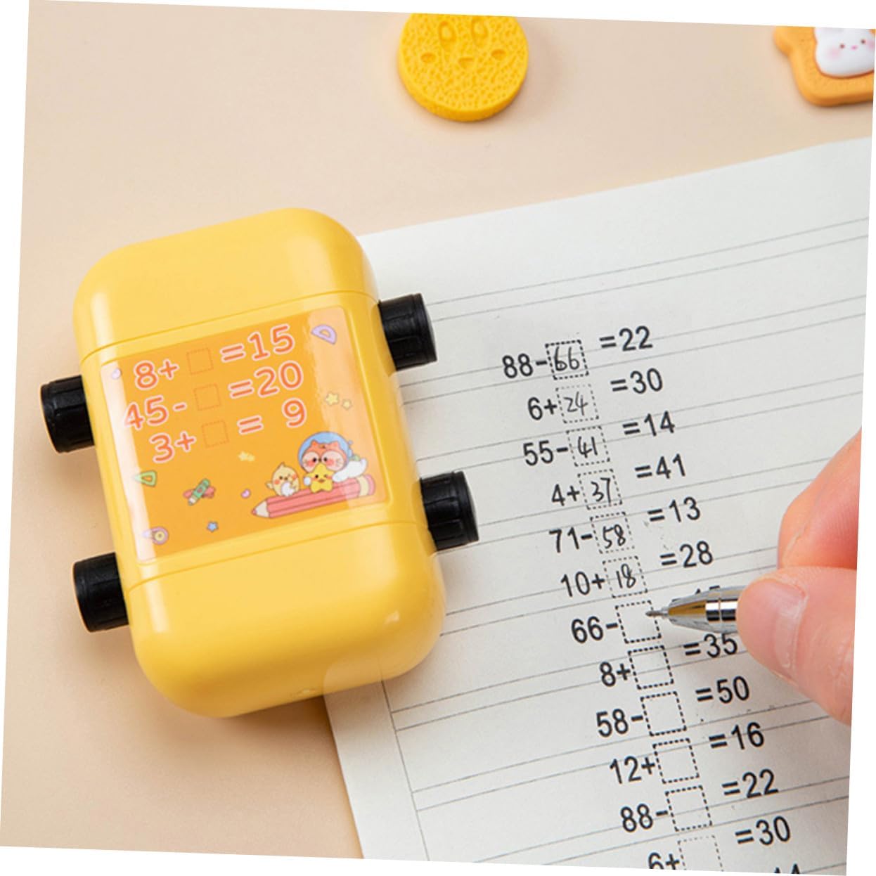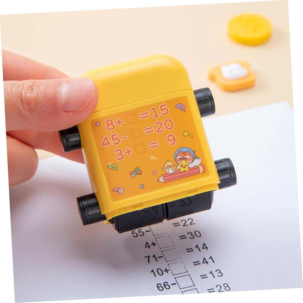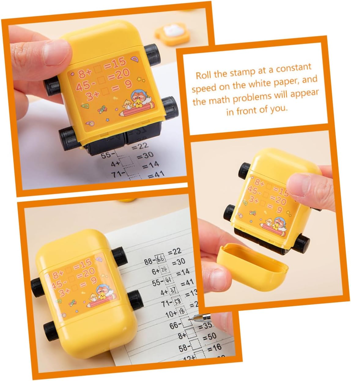 TIMBRO A RULLO COMPATTO: i timbri a rullo con numeri sono tanto divertenti quanto lo sono e rendono l'apprendimento della matematica facile e divertente per i bambini. Timbro per studenti resistente all'usura Timbro per studenti in stile cartone animato: sembra carino, potrebbe avere un significato significativo per te o per gli studenti, timbro per studenti in plastica Timbro per rotoli scolastici: realizzato in buon materiale, questo timbro matematico è facile da usare e accelera l'efficienza della pressatura. Timbro didattico per studenti Timbro didattico per matematica: grazie al rilascio automatico dell'olio non dovrete più preoccuparvi della rottura dell'olio e della distruzione di interi modelli del timbro. Timbro a rullo riutilizzabile per timbro matematico: timbro didattico per addizioni e sottrazioni nella gamma 100 per , viene fornito con una bottiglia di inchiostro, timbro riutilizzabile per studenti