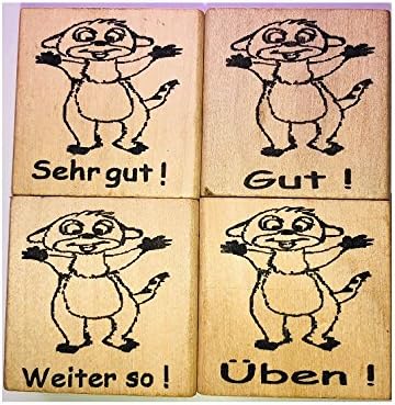 I motivi chiari e le scritte (great, super, follow-up) dei francobolli possono essere utilizzati per ricompensa, osservazione, valutazione e motivazione I blocchi di francobolli sono in legno - La dimensione del motivo sul blocco corrisponde alla dimensione originale del motivo Set di 4 timbri con suricati per genitori, insegnanti (ad esempio per una lezione sui suricati) ed educatori per ottenere bambini (4 timbri sono inclusi), la maniglia ha una maniglia incassata per una facile manipolazione, il timbro può anche essere usato come timbro dell'insegnante. Per una migliore visione d'insieme, un esempio dell'immagine del francobollo è mostrato qui - Durante la stampa del francobollo puoi vedere e vedere tutto - Cosa considerare durante la stampa si trova qui sotto nella descrizione del prodotto - in modo che ogni immagine del francobollo possa anche comprimersi Diversi timbri in legno espressivi adatti a molte situazioni, i francobolli hanno un'altezza di 2 cm e misurano 4 x 4 cm ciascuno in lunghezza e larghezza - Le faccine sorridenti consentono anche di personalizzare inviti, regali, lettere e cartoline
