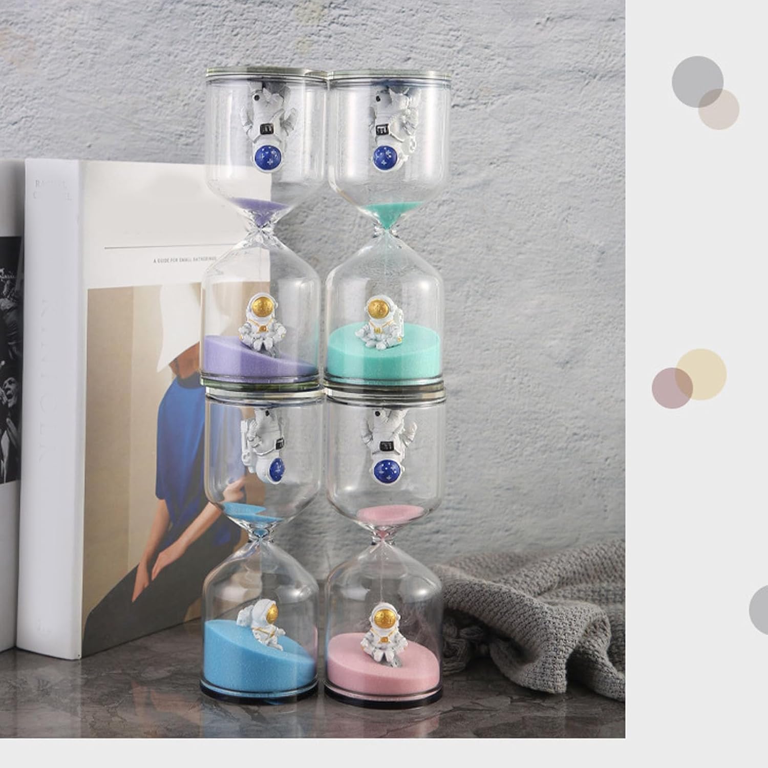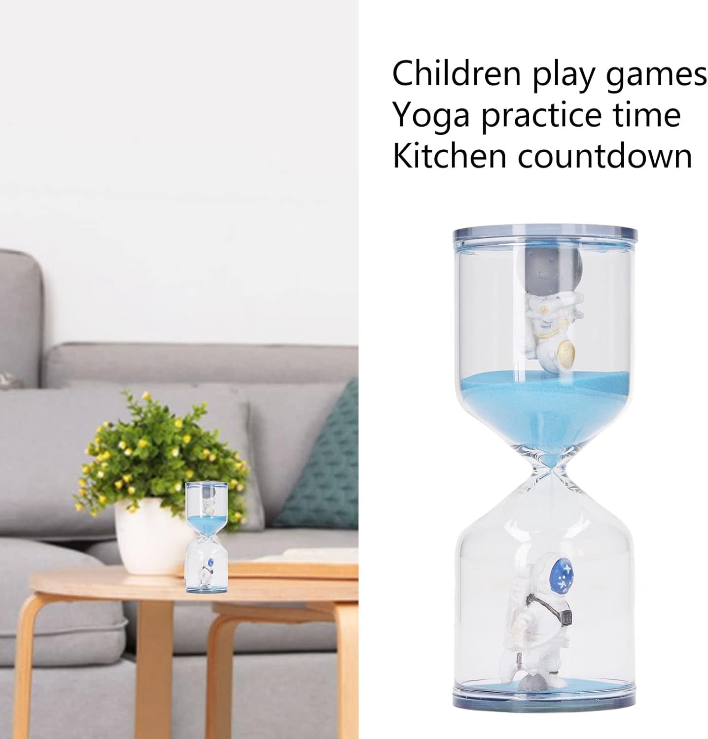 NOTA CALDA: si prega di consentire una deviazione temporale del ± 10% per la clessidra. I bambini di età inferiore a 3 anni devono essere supervisionati da un adulto durante l'utilizzo del timer. CLESSIDRA INSEGNANTE: il timer a clessidra aiuta o gli studenti disabili a comprendere meglio il tempo visivamente ed è per le aule di istruzione speciale. AMPIO USO: migliora l'efficienza della vita, può essere utilizzato per tenere il tempo per giocare, fare esercizi di yoga, conto alla rovescia in cucina, ecc. DECORAZIONE DELLA CASA: l'aspetto dell'uomo spaziale e la squisita fattura costituiscono la perfetta decorazione domestica, adatta anche per l'ufficio. MATERIALI AFFIDABILI: Realizzati in vetro eccellente, non facile da danneggiare, elevata trasparenza e con superficie liscia, facile da pulire e utilizzabile a lungo.