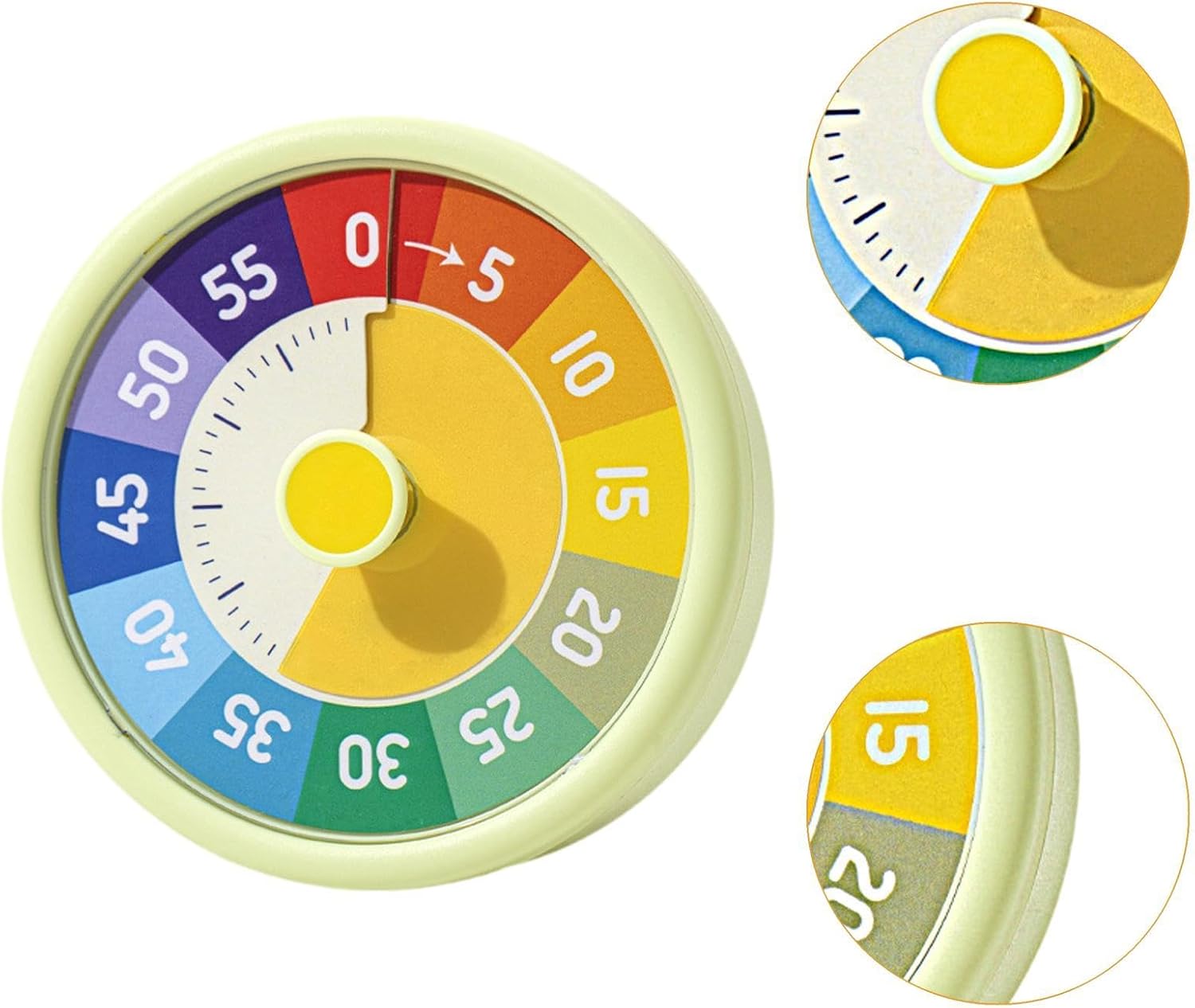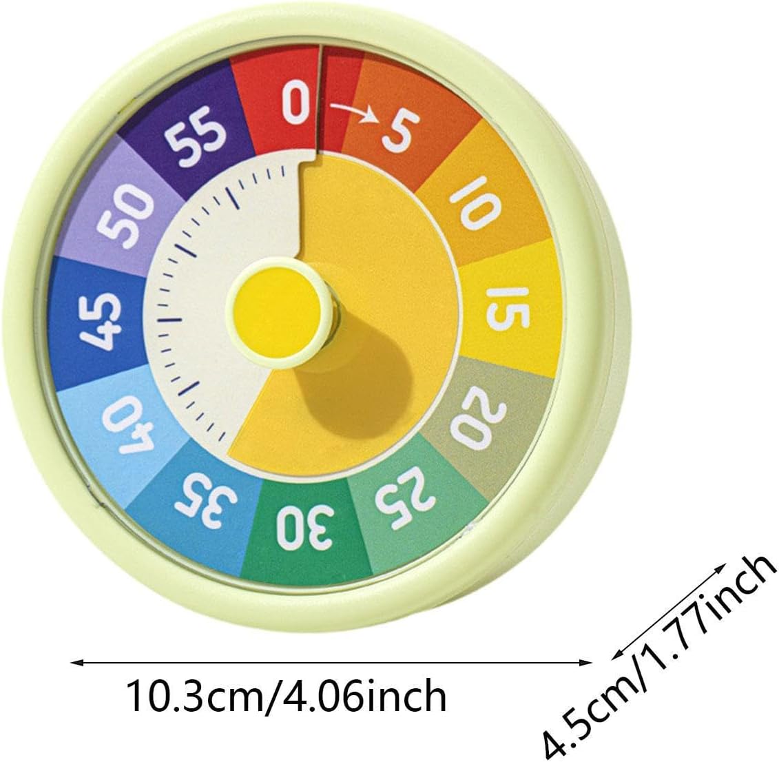 [Timer visivo]: grande quadrante colorato, vedere chiaramente l'ora sull'interfaccia. È anche molto facile da capire per i bambini più piccoli [configurazione semplice]: il timer visivo è facile da configurare con una semplice rotazione del quadrante per regolare la lunghezza desiderata. Funziona silenziosamente senza alcun ticchettio [simpatico promemoria visivo]: progettato come uno strumento carino, questo timer aiuta i bambini a comprendere la gestione del tempo monitorando visivamente il tempo trascorso. È un modo efficace per insegnare ai bambini il concetto di "tempo", promuovendo l'indipendenza nel completamento delle attività Uso quotidiano versatile: utile in varie attività quotidiane come studio, gioco o cenare, questo timer trasforma il conto alla rovescia in giochi coinvolgenti per bambini che anticipano con impazienza il completamento di ogni attività guardando la sezione luminosa scomparire, ideale per mantenere la concentrazione durante i compiti o giocare con segnali visivi che li tengono in pista senza distrazioni Colori accattivanti per i bambini: questo timer da scrivania presenta colori vivaci e attraenti che catturano facilmente l'attenzione dei bambini, aggiungendo un colore alle routine quotidiane. Il divertente quadrante colorato funge da segnale per il tempo rimanente, rendendolo ideale per i bambini per capire rapidamente e intuitivamente quanto tempo è rimasto