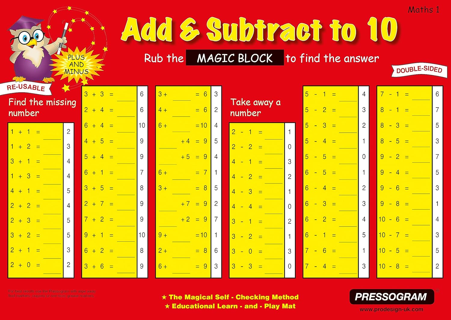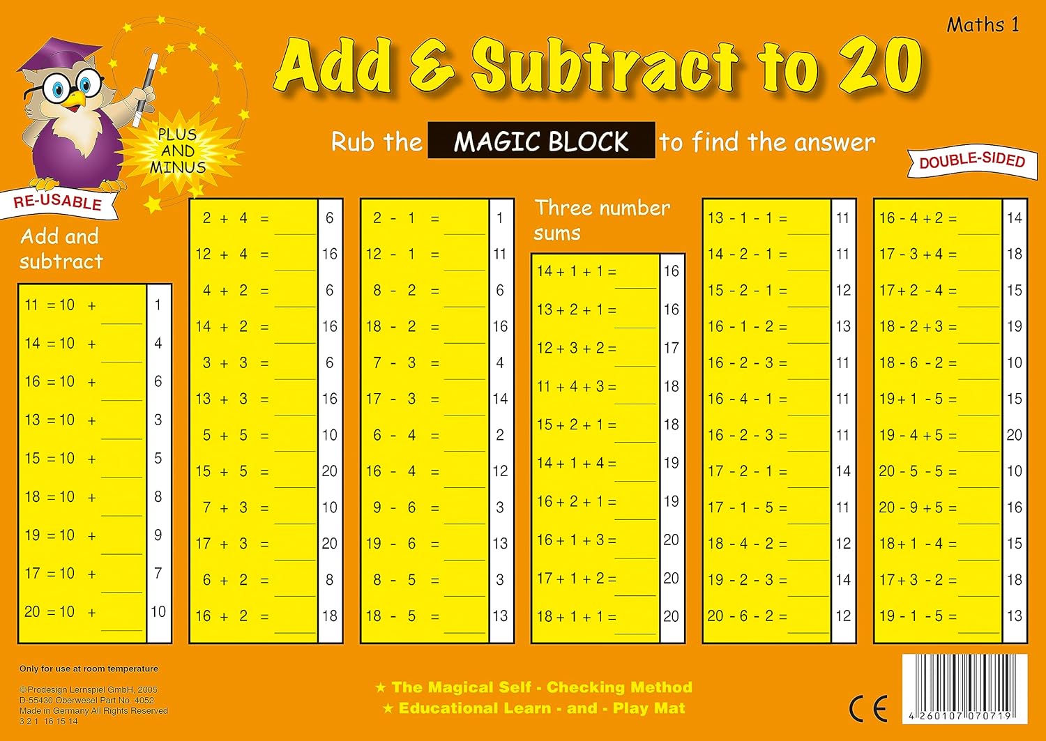 Lavagna magica "Matematica": Con la nostra lavagna magica "Spazio numerico inglese fino a 20", gli studenti possono praticare la matematica in inglese in modo divertente. Diversi esercizi di addizione, sottrazione e moltiplicazione sono molteplici sul lato anteriore e posteriore della lavagna. Esercizio con controllo automatico: la lavagna offre un mix di diversi compiti di calcolo. I risultati sono scritti nell'apposita colonna e possono essere controllati autonomamente strofinando la striscia termica nera. Riutilizzabile: la lavagna magica è realizzata in Germania in plastica robusta ed è scrivibile con pennarelli cancellabili. È scrivibile su entrambi i lati e offre quindi ancora più spazio per esercizi e risoluzione di compiti. Spese diverse: la nostra lavagna magica in inglese è disponibile in numerosi modelli per tutte le età. Tabelle per imparare a scrivere e far di conto per la 1a classe fino al formato grande 1x1 per la 4a classe. Offriamo molti giochi di matematica per un apprendimento vario Chi siamo: TimeTEX è un'azienda a conduzione familiare in Germania. Il nostro motto aziendale è “non parlare ma agisci”, per questo siamo fortemente impegnati a favore dell'ambiente e dell'integrazione. Questa attenzione per l'uomo e l'ambiente si riflette anche nella qualità dei nostri prodotti