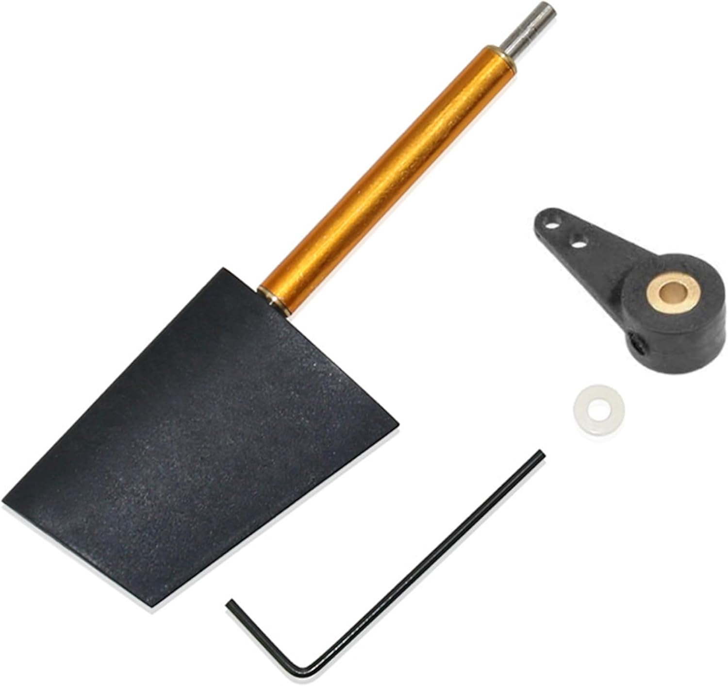 Funzionamento fluido: dotato di due ingranaggi in rame all'estremità del manicotto dell'albero, questo timone garantisce un controllo fluido ed efficiente, migliorando il controllo generale della tua barca RC. Dimensioni compatte: con un'altezza di 52 mm, una larghezza di 38 mm e uno spessore di 7,6 mm, è un'aggiunta compatta ed efficace a qualsiasi modello di acqua con telecomando e garantisce un'installazione salvaspazio. Kit completo: il pacchetto include una piastra del timone, un bilanciere, una guarnizione, un manicotto dell'albero rivestito in lega di alluminio anodizzato, cuscinetti in ottone e una chiave a brugola per una facile installazione e manutenzione. Applicazione versatile: questo timone per barca RC è perfetto per progetti fai-da-te ed è compatibile con una gamma di modelli tra cui barche, navi, sottomarini e altri veicoli marini telecomandati. Materiale di alta qualità: questo timone per barca RC è realizzato in nylon rinforzato con fibra di vetro ed è progettato per resistere a varie condizioni marine, garantendo prestazioni affidabili e durata.
