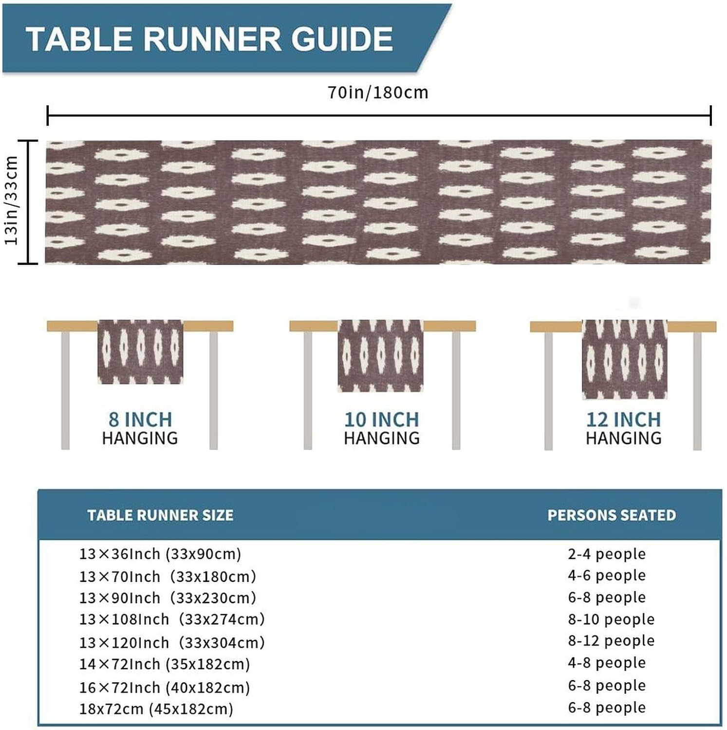 Timur Runner da tavola con sfondo azzurro cielo 13" x 70" Tappetino decorativo per cucina, sala da pranzo, feste, riunioni di famiglia, decorazioni per runner da tavola