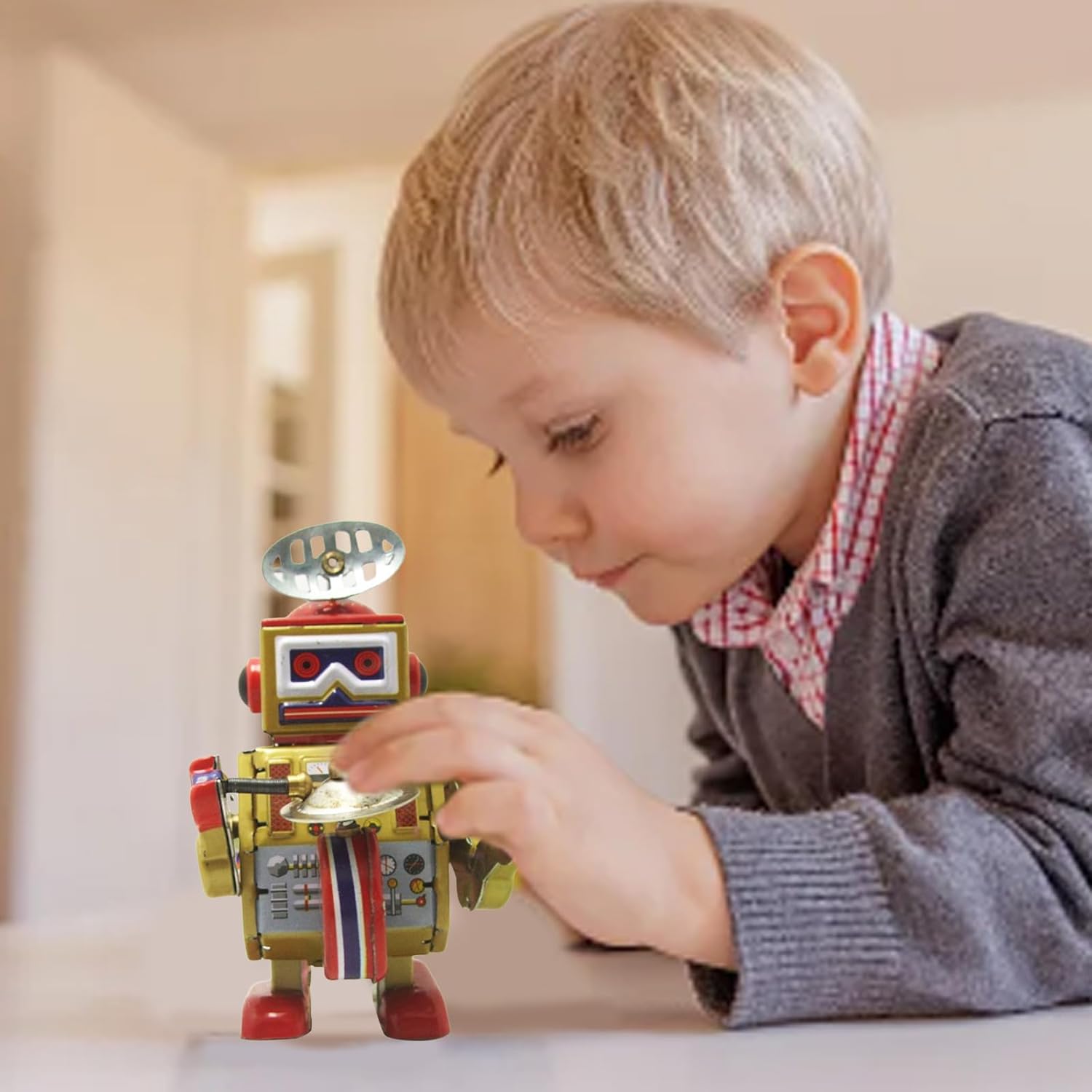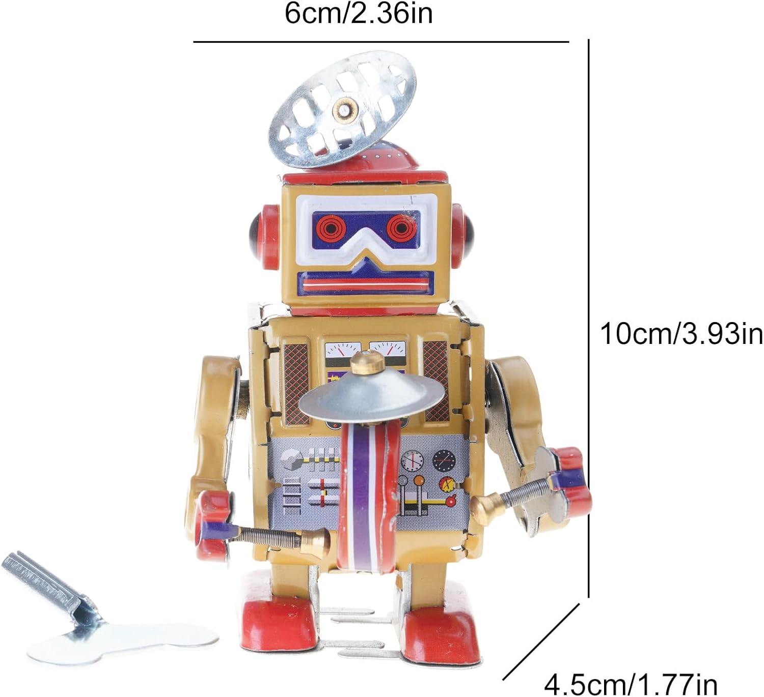 Realizzato con la scatola, questo giocattolo trasuda un fascino vintage. La sua costruzione in metallo garantisce sicurezza e durata, rendendolo un giocattolo perfetto per i bambini e adulti che tu stia cercando decorare la tua casa, l'ufficio o luogo a tema, questo giocattolo Winup funge da bellissimo ornamento. La sua musica estetica e rilassante nostalgica crea un vibraggio divertente che migliora qualsiasi spazio Sperimenta la nostalgia e fascino del robot giocattolo Winup Crea semplicemente un'esperienza e uditiva adorabile Ottimo per collezionisti appassionati, questo giocattolo Winup è meravigliosa aggiunta a qualsiasi collezione. I suoi dettagli intricati lo rendono un regalo per appassionati giocattoli o per chiunque apprezzi giocattolo classe