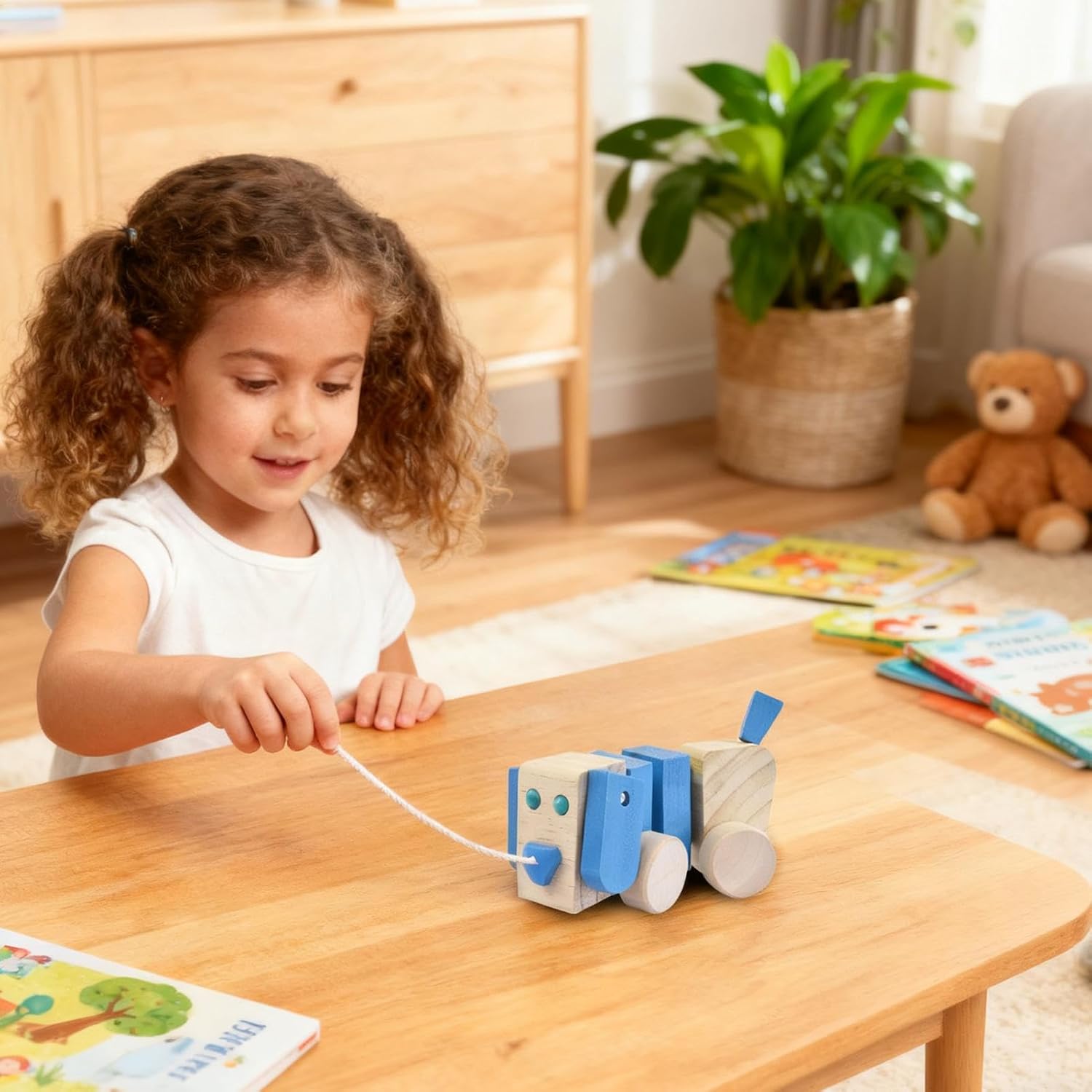 Pratico compagno di viaggio: il cane da traino colpisce per il suo design leggero e compatto e per la fune di facile presa, che lo rende facile da trasportare e ideale per luoghi come parchi, casa o viaggi. Garantisce una facile conservazione e un'elevata portabilità, perfetta per stili di vita attivi che valorizzano la mobilità e il comfort. Quindi è sempre a portata di mano per avventure spontanee. Esperienza di gioco dinamica: con il movimento di trazione interattivo, questo giocattolo in legno migliora l'equilibrio e la coordinazione quando utilizzato all'aperto. Ispira l'esplorazione e fornisce un supporto divertente mentre si cammina. Adatto anche per scenari interni, garantisce un divertimento continuo attraverso il gioco attivo. L'azione di trazione stimola la fantasia, favorendo lo sviluppo delle capacità motorie in modo divertente in diversi ambienti. Strumento di apprendimento cognitivo: questo giocattolo è progettato per promuovere le capacità di imitazione e arricchire le esperienze interattive. Incoraggia l'impegno cognitivo e offre opportunità di apprendimento multisensoriale utilizzando funzionalità sonore e visive. Ciò renderà il tempo di gioco divertente ed educativo per lui. Il giocattolo aiuta a sostenere lo sviluppo cognitivo in modo naturale e a stimolare la curiosità nella vita di tutti i giorni. ESPERIENZA DI GIOCO SENZA RISCHI: questo giocattolo da tirare garantisce un movimento stabile con attacchi sicuri che riducono al minimo il rischio di ribaltamento ed è ideale per chi esplora l'ambiente circostante all'interno o all'esterno. Con bordi arrotondati e una struttura naturale durevole, promuove esperienze di gioco sicure, supporta lo sviluppo motorio e offre un divertimento affidabile e senza preoccupazioni. Coinvolgente allenamento degli arti: questo animale da traino in legno aiuta a sviluppare la forza degli arti promuovendo una camminata sicura attraverso movimenti interattivi di presa e trazione. Migliora naturalmente la coordinazione occhio-mano mentre i bambini esplorano superfici diverse, creando momenti coinvolgenti che supportano lo sviluppo critico delle abilità motorie precoci negli ambienti di gioco quotidiani.
