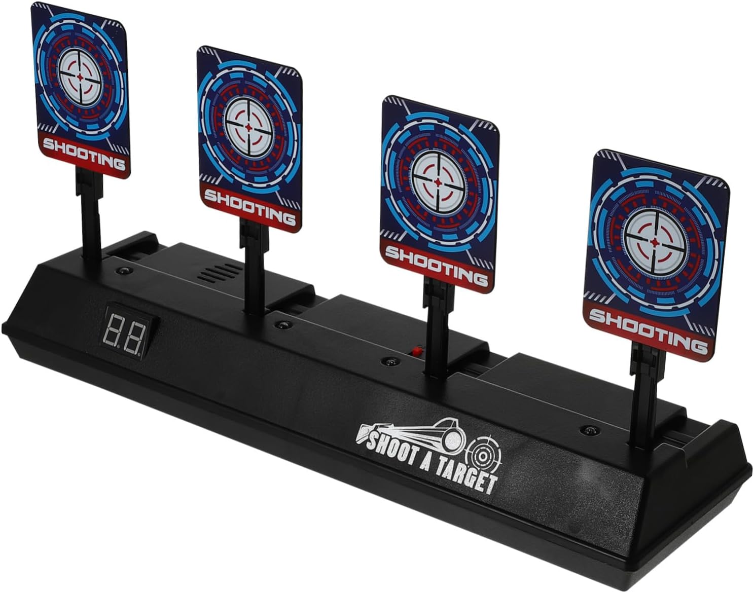 【Spider Giochi di Tiro Set】 Adotta un aspetto unico a forma di ragno, la pistola giocattolo si adatta comodamente alle mani dei bambini grazie a un design ergonomico speciale. Questa scheda bersaglio è dotata di 4 bersagli e di un monitor digitale ad alta definizione che visualizza i punteggi del tuo gioco di tiro. Quando colpisci un bersaglio, lo schermo LCD registrerà 1 punto per te. Il gameplay interessante è così coinvolgente che anche gli adulti si divertiranno a giocarci. 【Perfettamente Compatibile con i Giocattoli Nerf】 Dotato di 1 mini pistola, 1 bersaglio, 20 dardi di ricambio, 1 cacciavite e 1 braccialetto che può contenere 8 pallini. Il set di bersagli elettrici è anche adatto per le pistole giocattolo delle serie Nerf N-Strike Elite / Fortnite / Ultra / Rival, blaster ad acqua e altre pistole giocattolo a proiettile morbido. 【Ripristino Automatico Intelligente】 Questo bersaglio digitale è alimentato da 3 batterie AA (non incluse) e dispone di un robusto sistema di ingranaggi elettronici integrato. Quando colpisci tutti e 4 i bersagli, essi rimbalzeranno automaticamente nella loro posizione originale. Non è necessario ripristinarlo manualmente e puoi goderti i giochi di tiro emozionanti senza interruzioni. 【Effetti Sonori e Luminosi Simulati】 Dotato di un altoparlante di alta qualità e di un indicatore luminoso che incoraggia i tiratori. Quando i quattro bersagli vengono colpiti, ci sarà un effetto sonoro di "bene". Alla fine di sei cicli, ci sarà un effetto sonoro di "molto bene" e la luce lampeggerà. Quando raggiunge 60 punti, ci sarà un effetto sonoro di Grand Slam più applausi + "gioco finito" + luce lampeggiante. 【Idee Regalo Ragazzi Bambino 3+ Anni】 Dimensioni portatili e scatola colorata, realizzata in plastica ABS ecologica. È un regalo ideale per compleanni, feste e Natale per i bambini. Può essere giocato in giochi individuali o in competizioni multiplayer, aiutando a migliorare le abilità di tiro dei bambini e promuovendo la comunicazione tra genitori e figli.