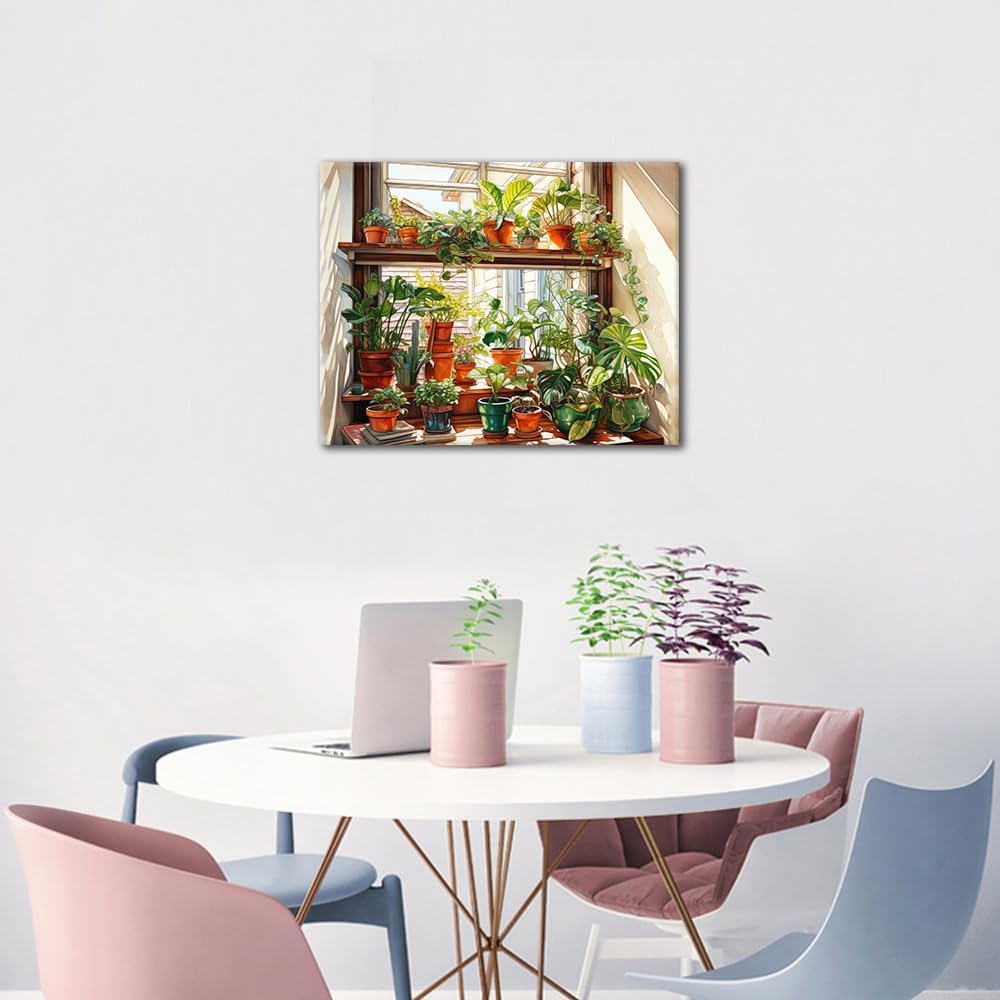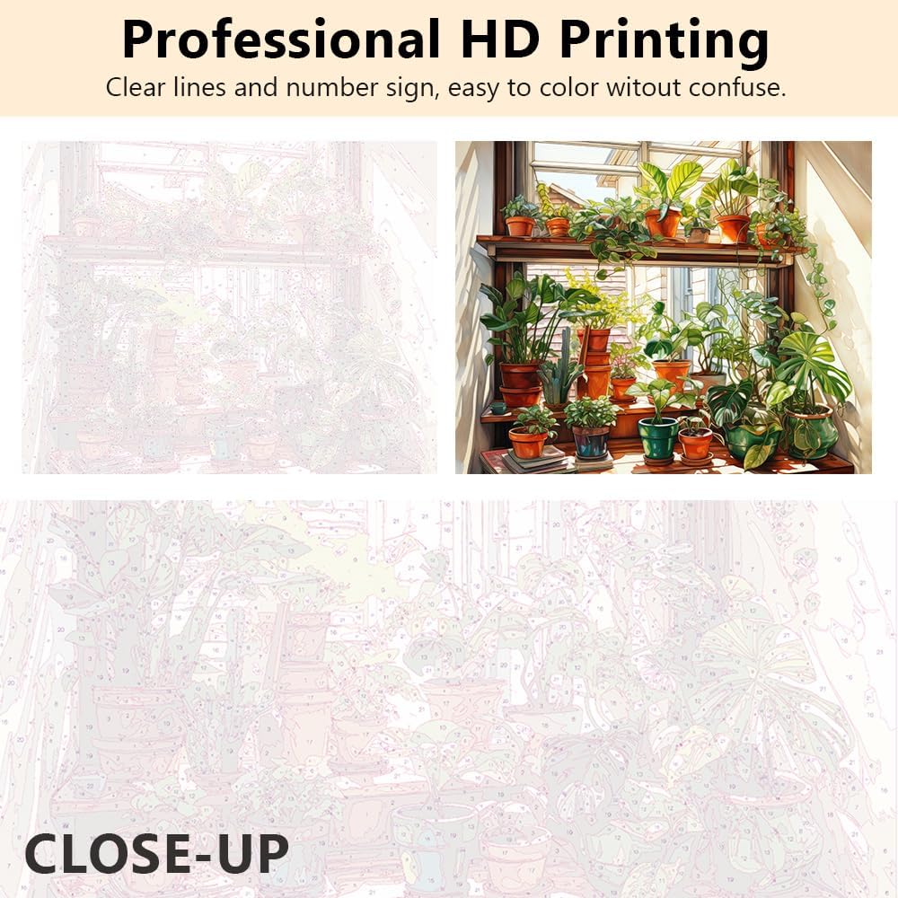 TISHIRON Paint by Numbers Dipingere con i numeri, piante fai da te in vaso sul davanzale della casa, dipinta a mano, per decorazione della casa, senza cornice (40 x 50 cm)