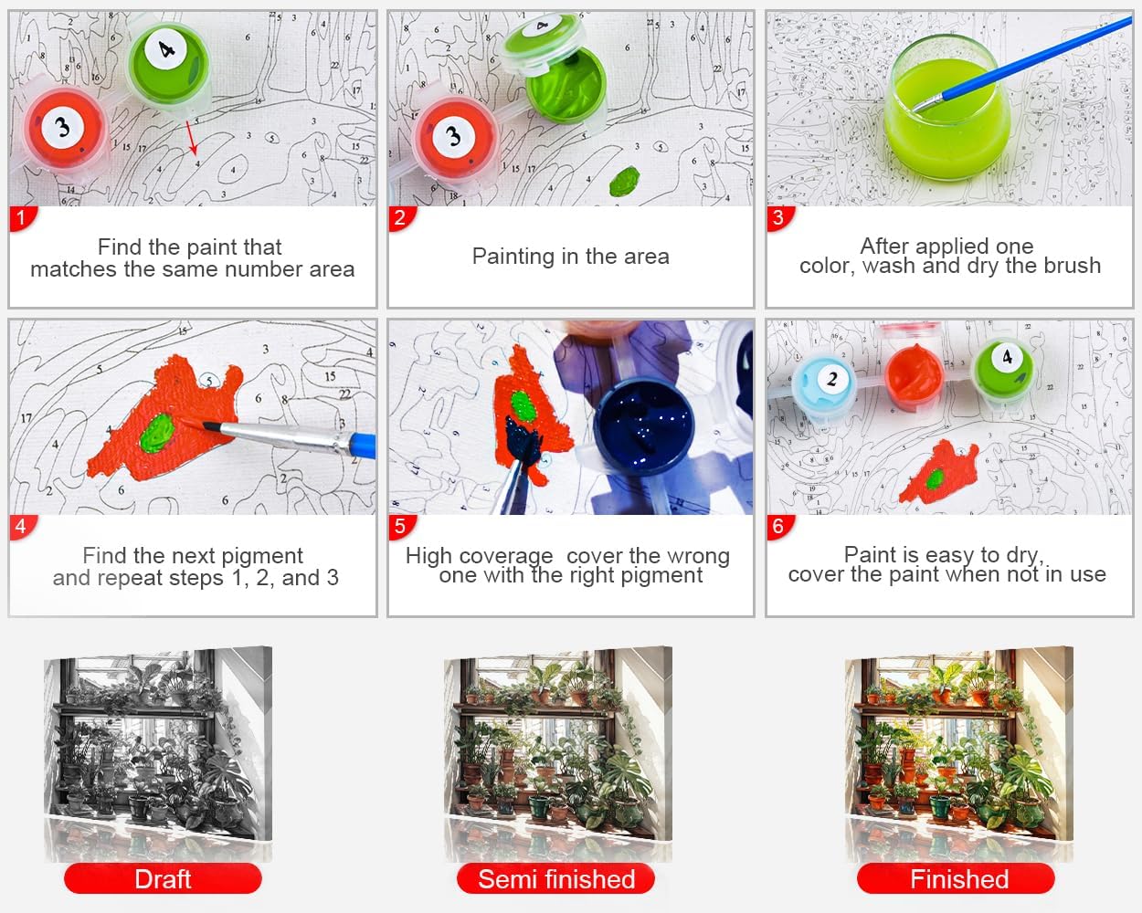 【Vita fai da te】Questo kit di pittura a olio fai da te è una scelta perfetta per rilassarti. Puoi goderti appieno la gioia di dipingere, rilassare la mente, ridurre la pressione e promuovere la pazienza durante il disegno. È anche un buon modo per migliorare la relazione se dipingi con gli altri. Pittura acrilica di alta qualità e tela: i pigmenti di alta qualità sembrano più belli e vivaci. Tela artistica testurizzata prestampata, impermeabile, resistente all'umidità, senza rughe, consistenza uniforme, maggiore affinità per i pigmenti, è possibile completare facilmente l'immagine. Facile da dipingere: il nostro kit di colori con numeri è facile da usare. Corrispondono solo ai numeri del colore e ai numeri sulla tela per riempire il colore. E segui le istruzioni, dipingi per numero di colore e finisci uno dopo l'altro. Particolarmente buono per le persone che amano dipingere ma non sono molto brave a farlo a mani libere. Decorazione unica: questo dipinto digitale può essere utilizzato in camere da letto, sale da pranzo, bagni, bagni, cucine, studi, appartamenti, uffici, hotel, ristoranti e bar. Attualmente è la decorazione fai da te più popolare. Il miglior regalo: il fai da te è un regalo che può sempre toccare le persone. La pittura digitale è una buona scelta per Natale, Ringraziamento, Capodanno, Halloween e compleanno.