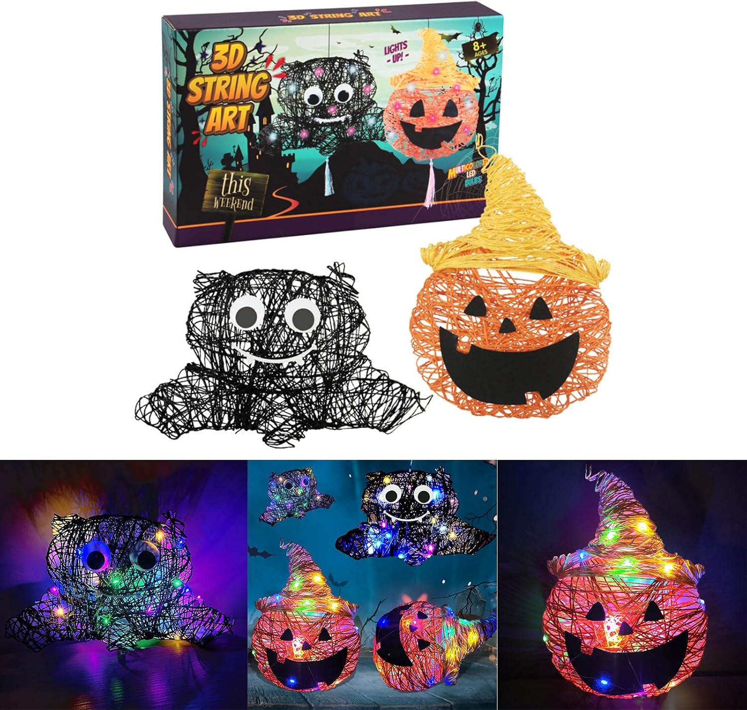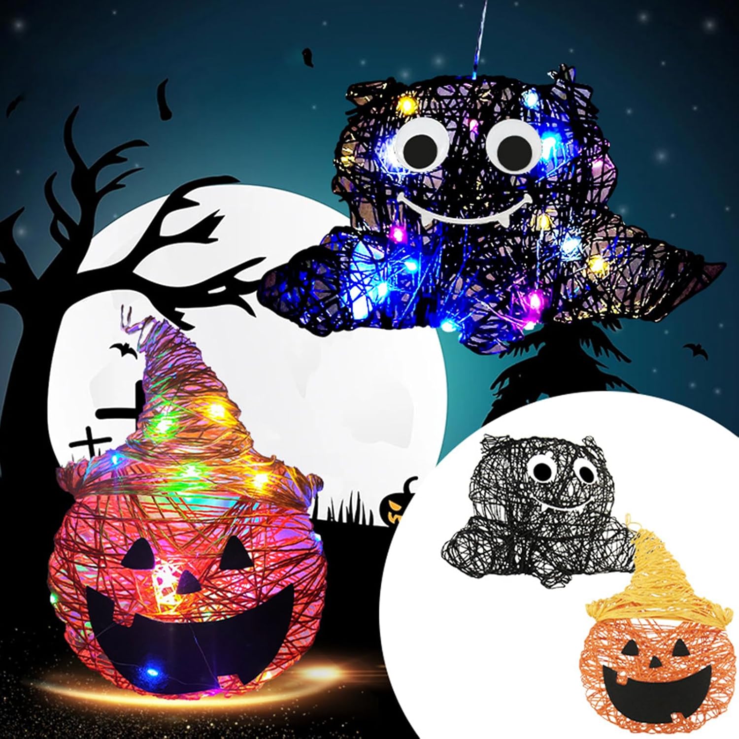 Stringa di Halloween per bambini: illumina la notte con i nostri incantevoli kit di corde! Progettato per i bambini, aggiunge magia a qualsiasi celebrazione di Halloween Bambini amichevole Halloween Accendere l'immaginazione del tuo bambino questo Halloween con la nostra coinvolgente arte stringa e kit! Offrono ore di intrattenimento promuovendo la creatività e lo spirito di Halloween String Art Delight: aggiungi un tocco inquietante alle tue decorazioni con i nostri kit per arte! Adatto a tutte le età, presenta modelli predefiniti di icone di Halloween Kit per Halloween String Art: Scatena la creatività con i nostri kit di arte delle corde! per i bambini, ha tutto il necessario per creare disegni impressionanti Kit Jack-o-Lantern: Preparati per il divertimento dell'intaglio della zucca con i nostri kit facili da usare! per i bambini, include un palloncino a forma di zucca, corda e strumenti