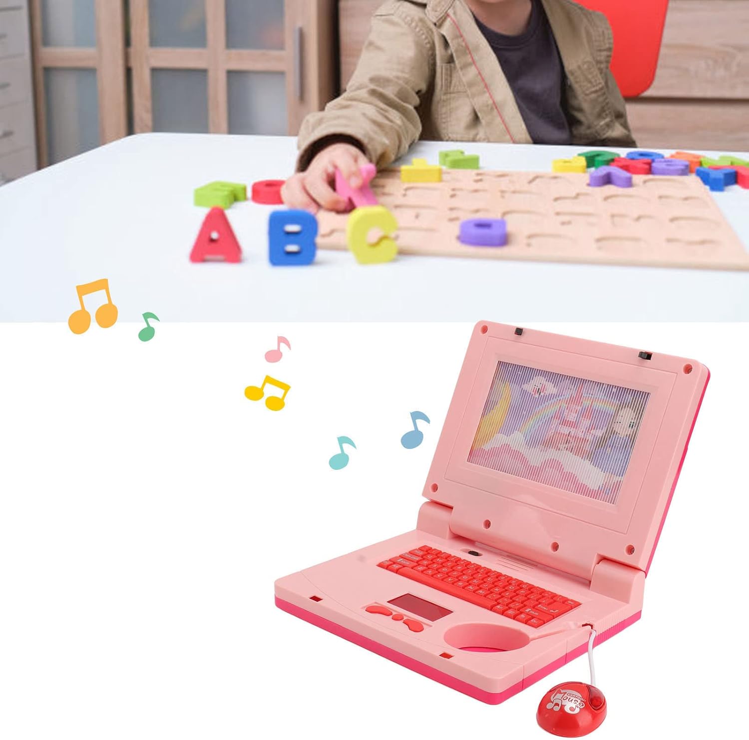 [Educazione interattiva] coinvolge bambini con musica, luci e immagini. [Apprendimento musicale] ha 2 pezzi musicali per lo sviluppo cognitivo. [Funzione divertente del mouse] Fare sulla tastiera o sul mouse per la musica. [Sound Sweet] integrato per gli altoparlanti per un suono leggero e morbido. [-Security of Children] Bordi arrotondati per un gioco sicuro e un'esplorazione.
