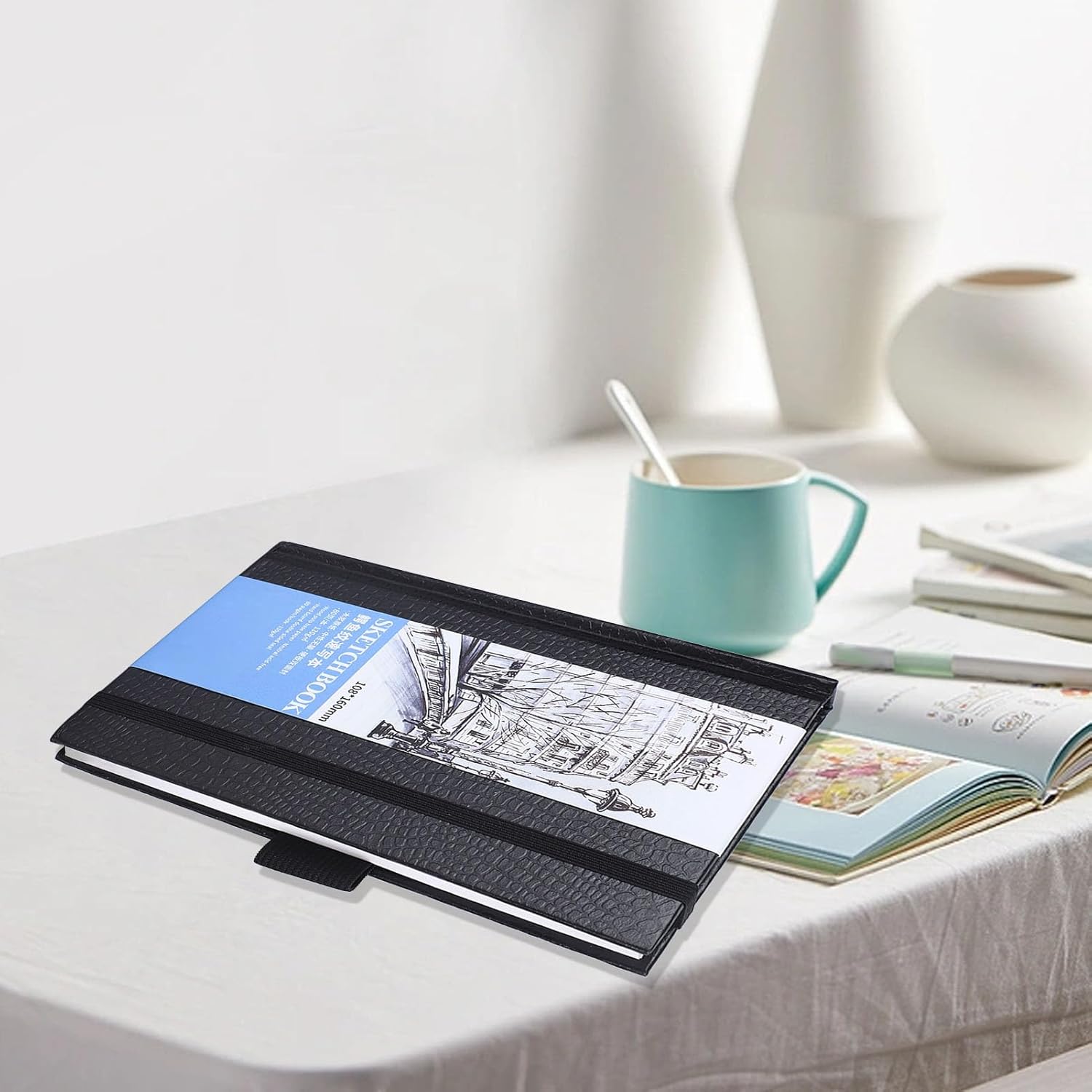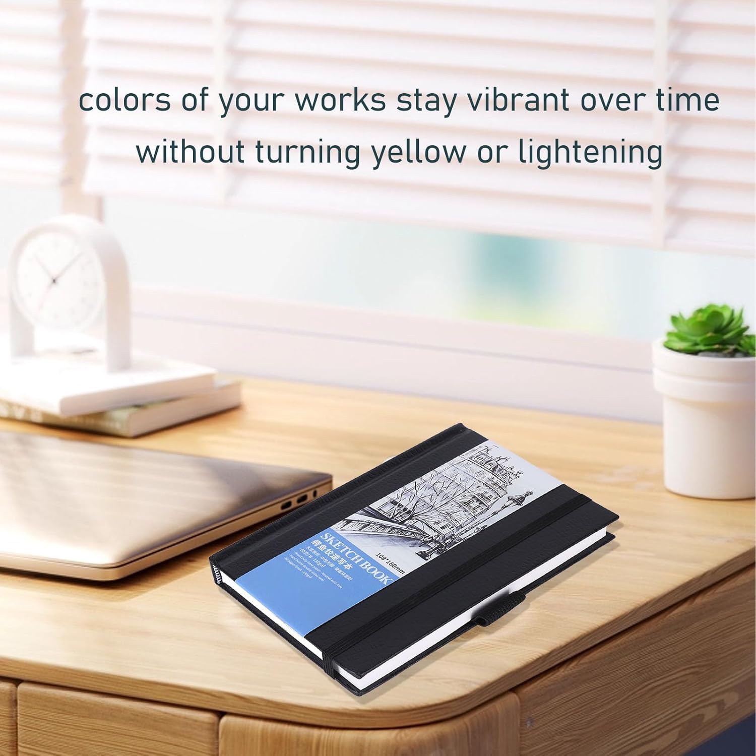 Carta acida resistente: carta acida di qualità impedisce ai colori di sbiadire garantendo una grafica vibrante di lunga durata. Design comodo: include una banda elastica e un nastro di segnalibri chiusura e un facile accesso durante il viaggio. Applicazione versatile: progettata per acquerello, penne a inchiostro, acrilici e più adatti agli appassionati d'arte di tutti i livelli. Ideale per tutte le età: per bambini, studenti e adulti che godono di schizzi all'aperto ed espressione creativa. Elegante copertina rigida: la copertura dura testurizzata fornisce una superficie robusta per il disegno e la pittura ovunque tu vada.