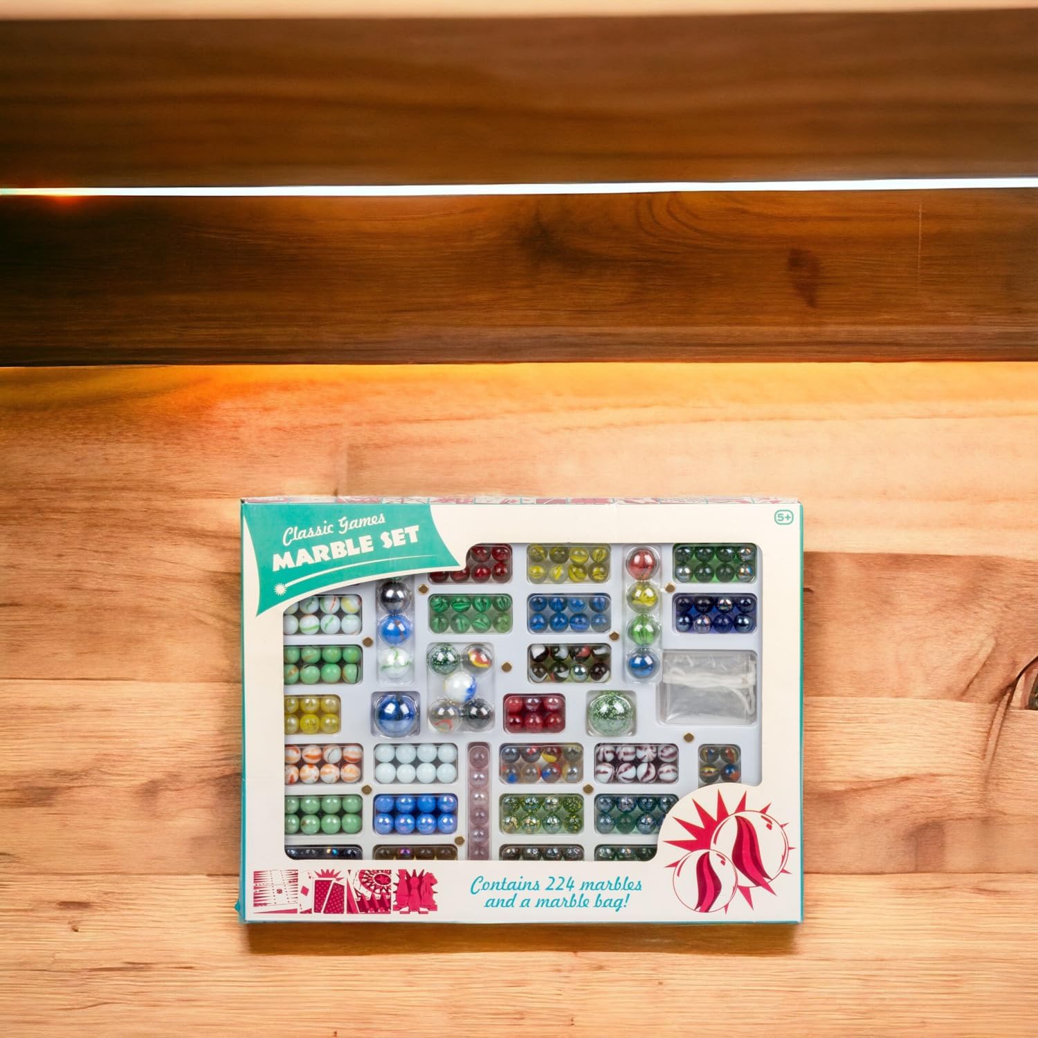 224 pezzi set di marmo Ampia varietà di colori e dimensioni Include borsa marmo Gioco suggerimenti sulla confezione Scatola larga 42.5 cm
