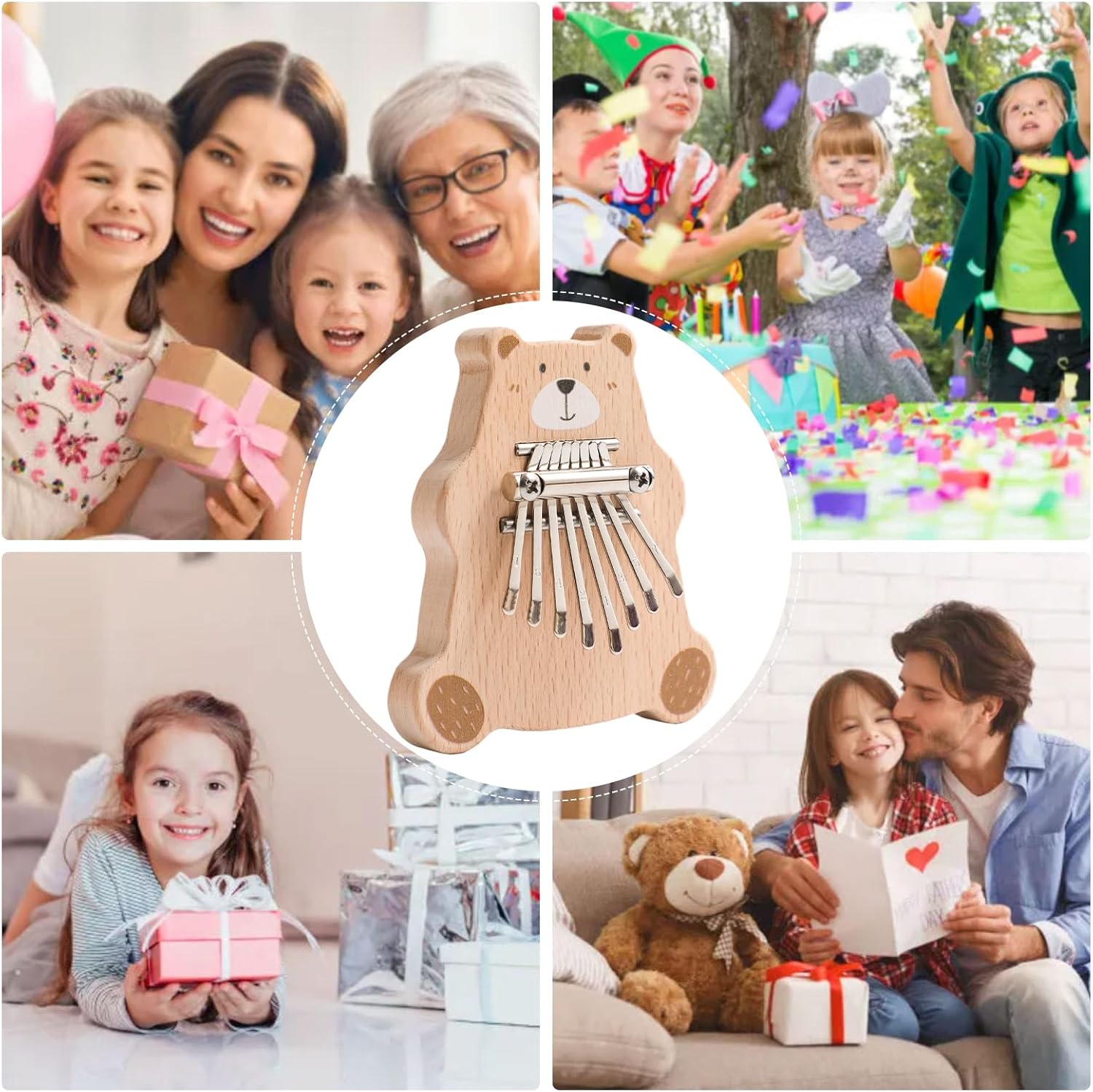 Child Friendly Design: Designed in an adorable bear shape, this handheld thumb piano is crafted for small hands, making it safe and easy for and young kids to explore sound, rhythm, and music in a fun and engaging way Educational Music Toy: This multifunctional instrument helps develop auditory skills, finger coordination, and rhythm awareness, making it a great educational tool that supports early childhood development through interactive musical play Portable and Lightweight: With its compact size and wooden design, this thumb piano is easy to carry, perfect for on-the-go music fun at home, daycare, school, travel, or family gatherings, keeping kids entertained and engaged anywhere Suited for All Ages: While ideal for and preschoolers, this finger piano is also enjoyable for older kids and adults alike, offering a soothing, meditative sound that promotes relaxation and creative expression for all skill levels Perfect Gift for Kids: A thoughtful gift for birthdays, holidays, or early learning milestones, this musical toy encourages creativity, bonding through music, and screen- entertainment, wrapped in a delightful animal-themed design