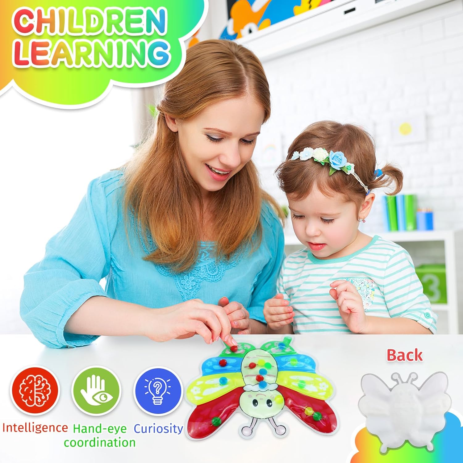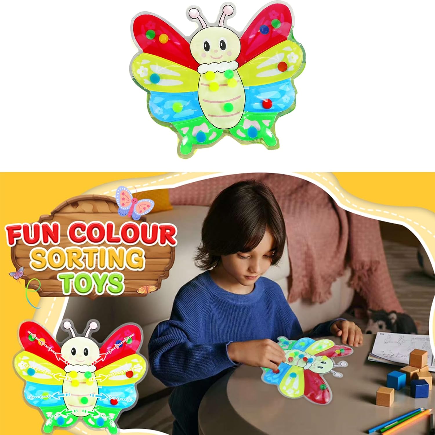 Ottimo per i bambini età pari o superiore a 3 anni, in particolare quelli che richiedono stimolazione sensoriale o attività educativa precoce, perfetta per bambino e bambino in età prescolare Utilizzare materiali in PVC sicuri, colore brillante e giocattolo design ergonomico è facile per la mano poca da afferrare e manipolare Incoraggia gioco fantasioso e lo sviluppo cognitivo mentre mantieni bambino impegnato e calmo con questo giocattolo adatto ai viaggi Migliorare riconoscimento del colore del bambino e un'abilità motoria sottile con nostro giocattolo sensoriale smistamento del colore farfalla, design per stimolare lo sviluppo sensoriale attraverso gioco coinvolgente Perfetto per uso domestico, asili o centri apprendimento precoce, questo giocattolo è ottimo per l'interazione dei figli genitori e l'attività educativa