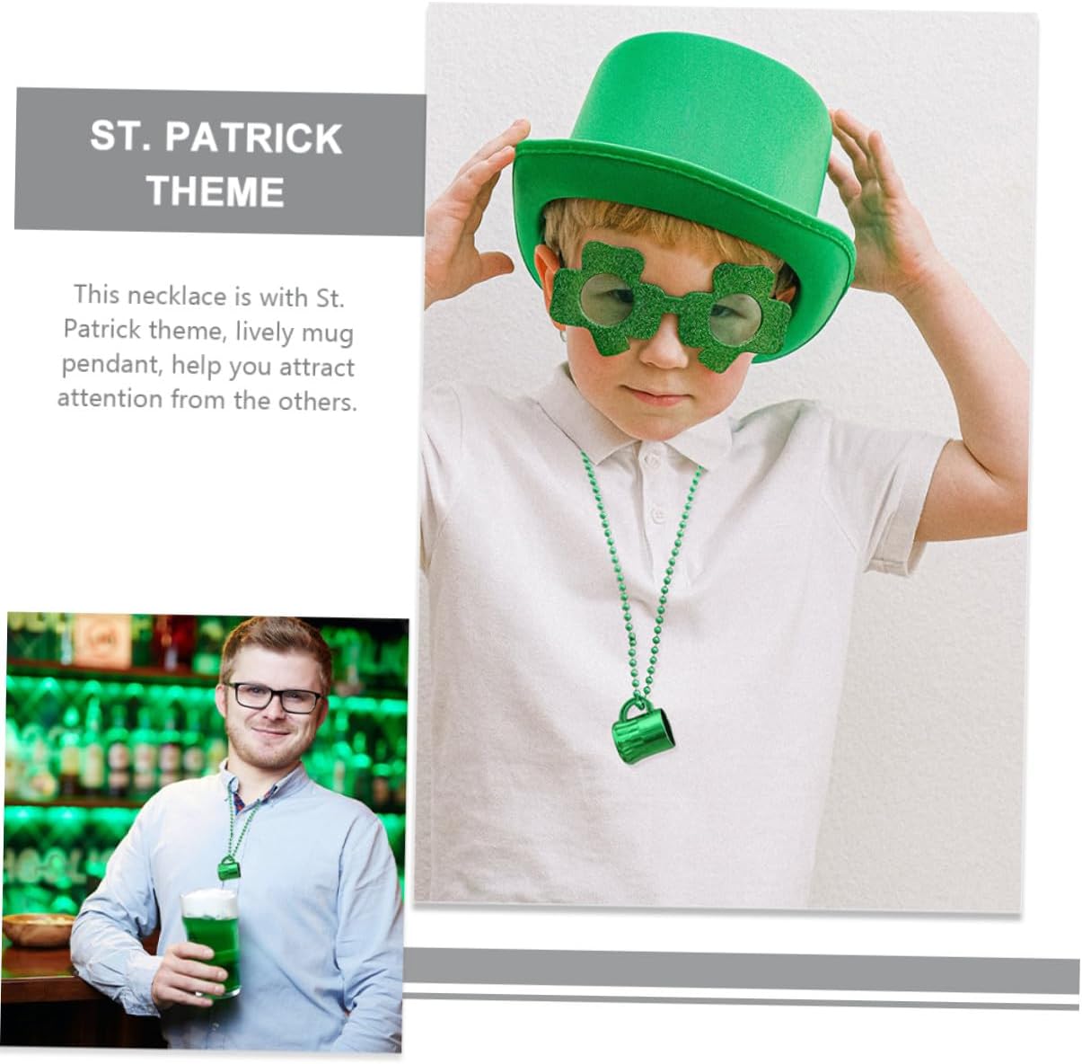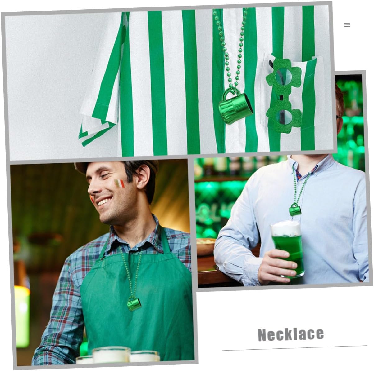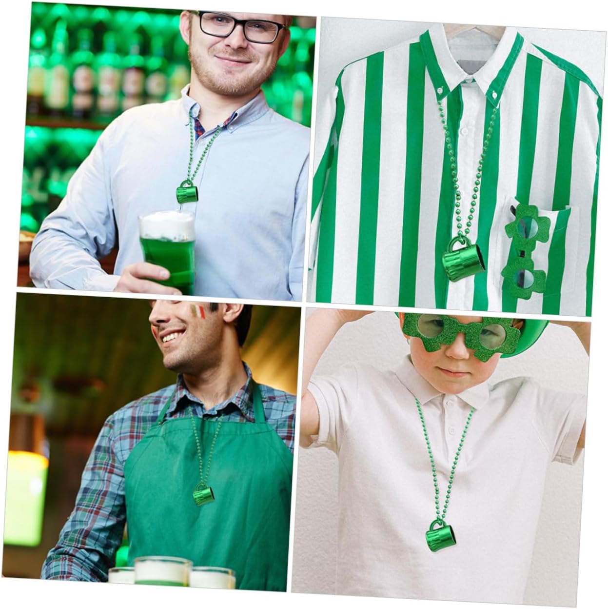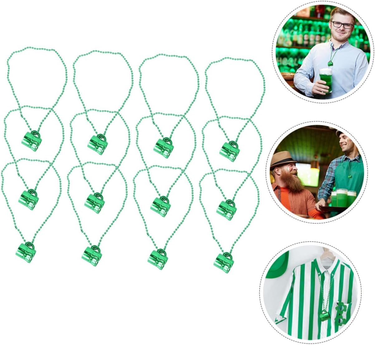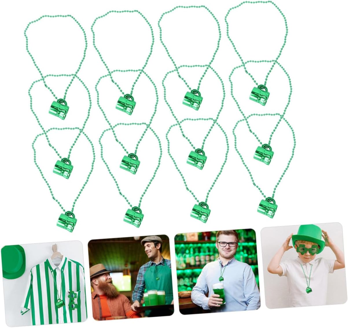 dei pacchetti 12 x Collane Caratteristiche -Informazioni sul prodotto:Coppa con collana irlandese - Dimensioni: circa 6,00X3,50X3,50 cm/2,36X1,38X1,38 pollici Ciondolo con perline da festival - Materiale: Catena di perline in plastica per feste irlandesi. - Colore: Verde. - Bellissimo e unico, può essere abbinato a diversi tipi di abbigliamento e mostrare il tuo fascino, oltre al senso della moda del ciondolo con perline del festival irlandese. - La struttura è ragionevole, le dimensioni sono adatte e si adatta alla maggior parte delle persone. Sarà un'ottima scelta per la tua collana decorativa. - Catena di perline con decorazione a forma di ciondolo a forma di tazza, ampiamente utilizzata per la collana di carnevale di San Patrizio. - Un'ottima aggiunta per la decorazione del collo e per il trucco, per aggiungere un tocco di bellezza in molte occasioni diverse. - Il design unico e raffinato ti regala un'esperienza immersiva, consentendoti di percepire al meglio l'allegra atmosfera delle feste. Informazioni sulle merci Ciondolo con perline per la festa irlandese, design a tema di San Patrizio, colore brillante e delicato, design a tazza su collana di perline, questa collana con ciondolo può mostrare meglio il tuo senso della moda. Collana Inviali come una bella scelta regalo alle tue donne, familiari o amiche, impressionale di più. Catena di perline per la festa del festival irlandese St