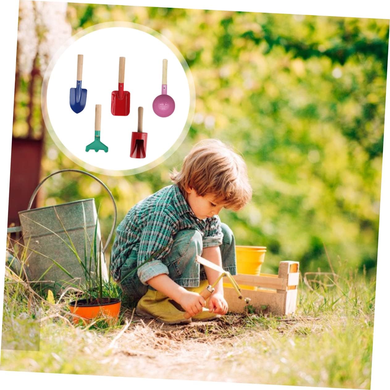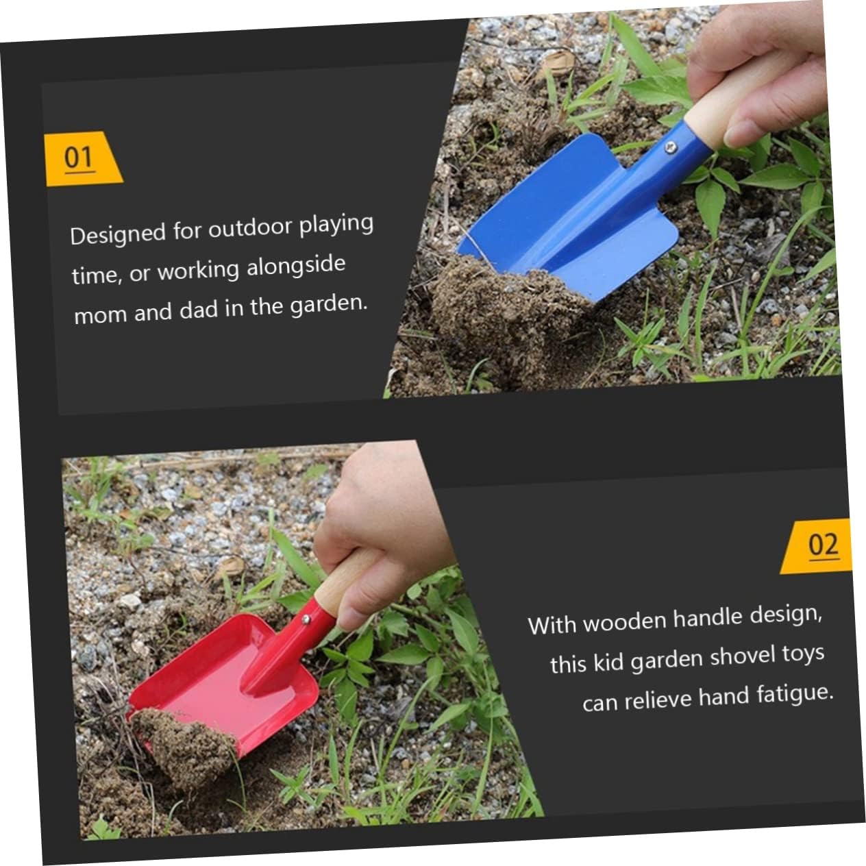 Attrezzi da giardinaggio per bambini: progettati per giocare all'aperto o per lavorare in giardino, rastrelli da giardinaggio per bambini Attrezzi da giardinaggio per bambini con manico in legno: superficie lucidata con cura, la superficie è liscia e non ferirà il bambino, sicura e affidabile. Divertenti attrezzi da giardinaggio per bambini: di piccole dimensioni e leggeri, il tuo bambino può afferrare facilmente questi attrezzi da giardinaggio per bambini, pala da giardinaggio per bambini. Kit di attrezzi da giardino per bambini: pratico e bello, questo set di attrezzi da giardino per bambini è perfetto per i bambini che amano giocare in giardino, attrezzi da giardino per bambini per piante Pala per attrezzi da giardinaggio per bambini: perfetta per le manine dei più piccoli, non troppo affilata, non troppo pesante e senza bordi.