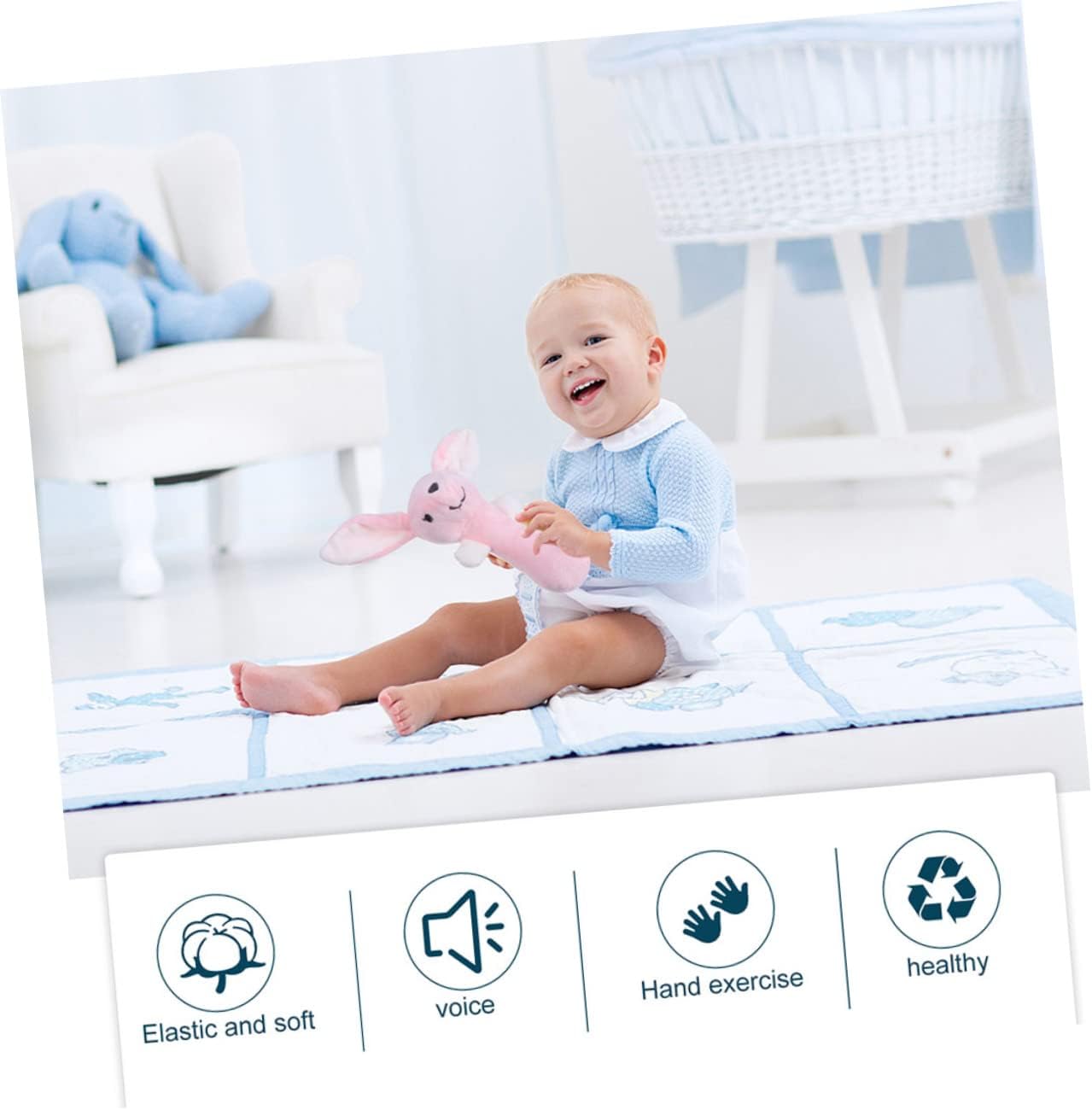 a mano: adorabili animali da cartone animato raffiguranti elefanti e conigli e un design colori vivaci rendono questo super adorabile e attraente per i più piccoli, giocattoli per neonati Sonagli sensoriali morbidi: i colori vivaci e la forma di animale dei cartoni animati attirano l'attenzione del bambino, sviluppando il riconoscimento del colore e della forma, sonagli per neonati Neonato: adorabile sonaglio per neonati con design e colori di animali per stimolare la vista del tuo bambino e incoraggiarlo a toccare ed esplorare, sonagli per le mani del bambino per neonati: il può allenare la capacità di presa del bambino e la del polso e della mano del bambino. per neonati: sviluppa anche lo sviluppo sensoriale del bambino, il riconoscimento del colore, la percezione degli animali e promuove lo sviluppo dell'udito, lo sviluppo del bambino è molto utile, la capacità di autoesplorazione del bambino, a mano per neonati