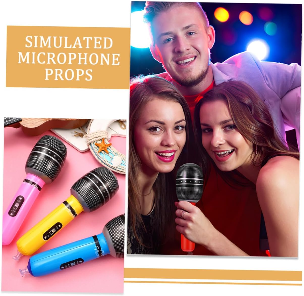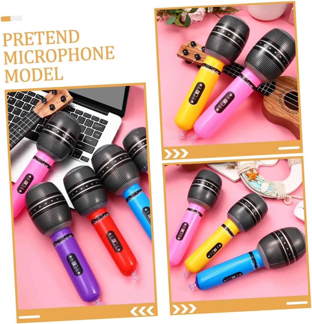Microfono per feste: ha un design e una sensazione realistici, rendendolo un'esperienza divertente per i bambini quando fingono di esibirsi, microfono di simulazione Microfono di scena: il microfono finto sembra proprio un microfono e può essere utilizzato come un fantastico accessorio da palcoscenico per la simulazione di un microfono. Supporto per microfono realistico: il supporto per microfono adotta un design vivido, che ha un alto grado di simulazione nei dettagli, supporto per microfono Microfono finto: è facile da trasportare e puoi portarlo nello zaino quando stai pianificando una festa all'aperto, di microfono Microfono gonfiabile per finta: design creativo e vivido del microfono gonfiabile, dall'aspetto molto realistico e vivido, aspetto unico, microfono gonfiabile