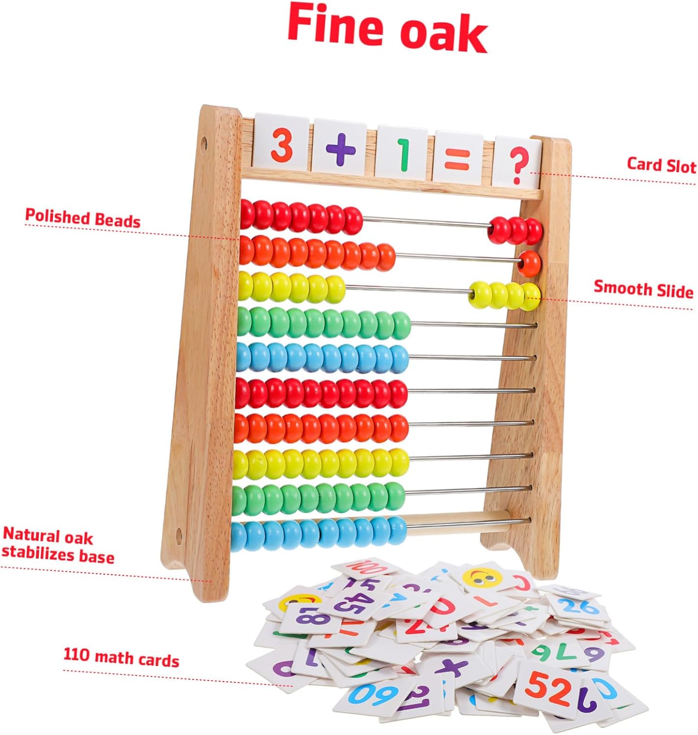 Pregevole fattura: la struttura in legno è realizzata con cura per aumentare l'affidabilità, liscia e robusta, sicura da usare e da usare, giocattolo per contare i numeri, giocattolo per contare le perline Aiuto per l'insegnamento della matematica: questo giocattolo per l'apprendimento della matematica abbinato a diverse carte numeriche incoraggia la risoluzione dei problemi di matematica attraverso indizi visivi, un gioco cognitivo con le perline dei numeri e un giocattolo per il conteggio della matematica Artigianato: artigianato in legno: realizzato con grande attenzione ai dettagli - ha una consistenza morbida e offre ai bambini un'esperienza di gioco sicura, aiuta con l'apprendimento della matematica e ti fornisce una matematica per i più piccoli Migliora le abilità matematiche: aiuta i bambini a sviluppare le prime capacità di conteggio e a stimolare il loro interesse per la matematica. Giocattoli con perline matematiche per bambini, strumenti matematici per uno sviluppo a tutto tondo: le perline di conteggio sono colorate e si muovono agevolmente sul bastoncino, sono facili da usare e offrono divertimento extra, puzzle di apprendimento dei numeri, giocattoli matematici educativi