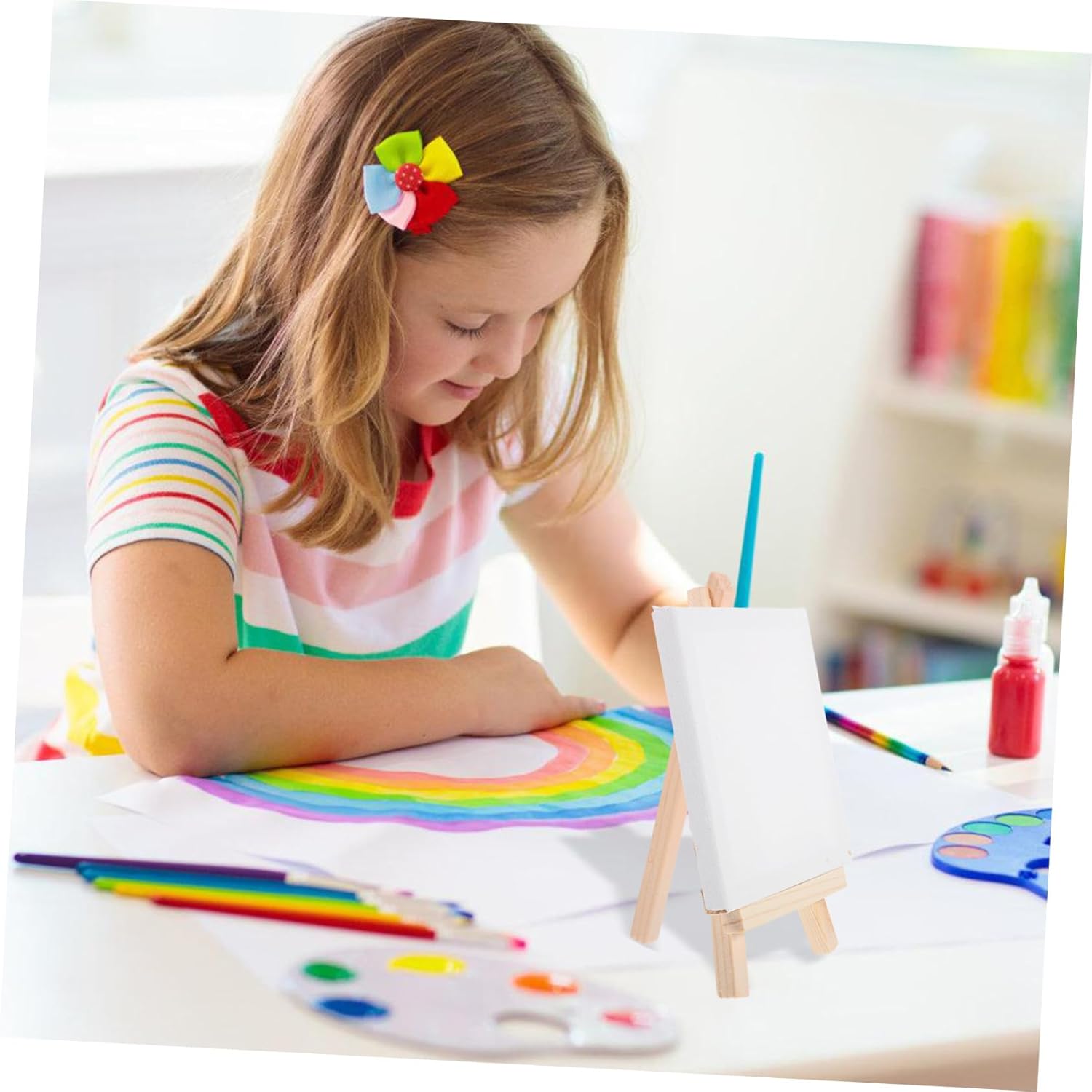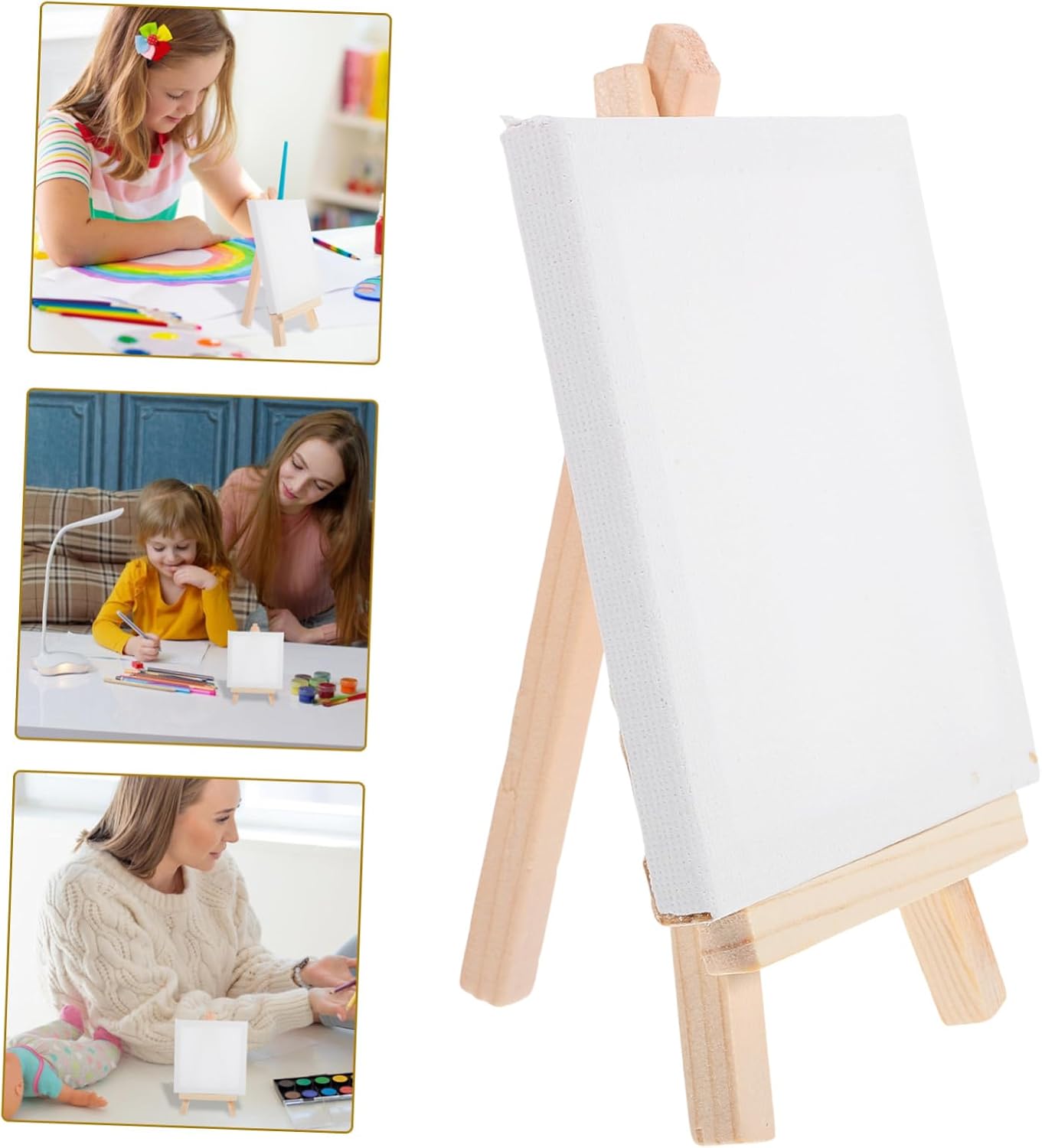 Piccola tela decorativa: è semplice nel design, ma molto pratica nell'uso, il che ti offre comodità, piccola tela da pittura con cavalletto. Piccola tela multifunzione: il supporto stabile del cavalletto impedisce qualsiasi scivolamento o caduta, fornendo una piattaforma sicura e protetta per dipingere o esporre opere d'arte, forniture per pittura a olio. Tela da pittura con supporto: con design vuoto, appositamente progettata per la pittura a olio o la pittura ad acquerello, tela da pittura fai da te realizzata. Tela da pittura delicata: bordi arrotondati e superficie sicura, sicura da toccare e non ferire le , mini cavalletti. Fornitura artigianale: può trattenere la vernice e non restringe affatto, e consente alla tela di mantenere bene la vernice e la lucentezza, la tela e il supporto.