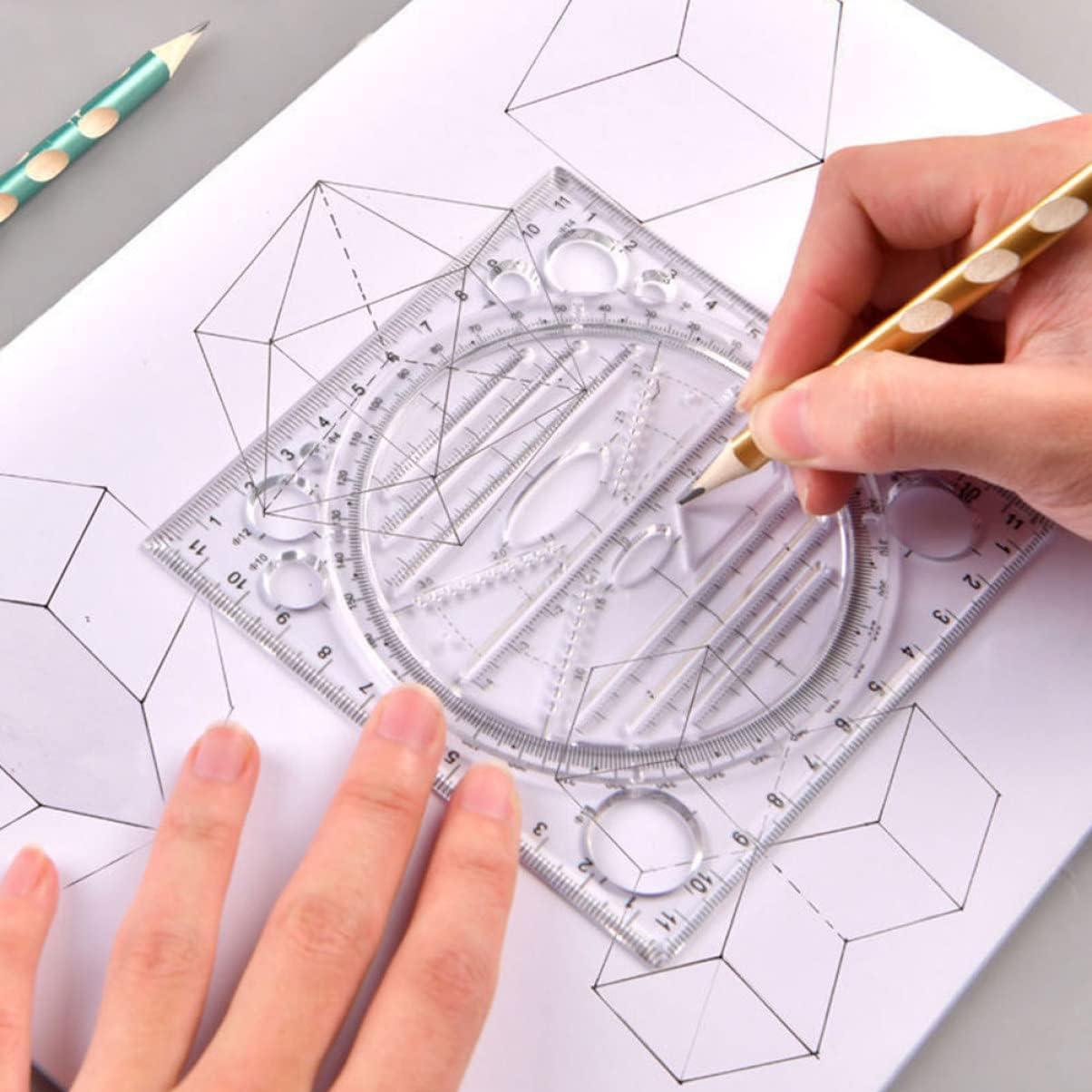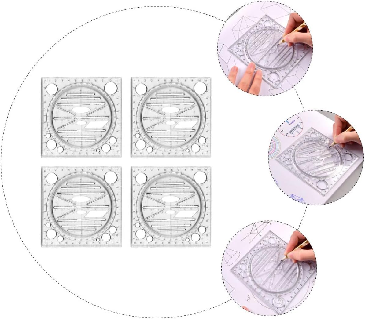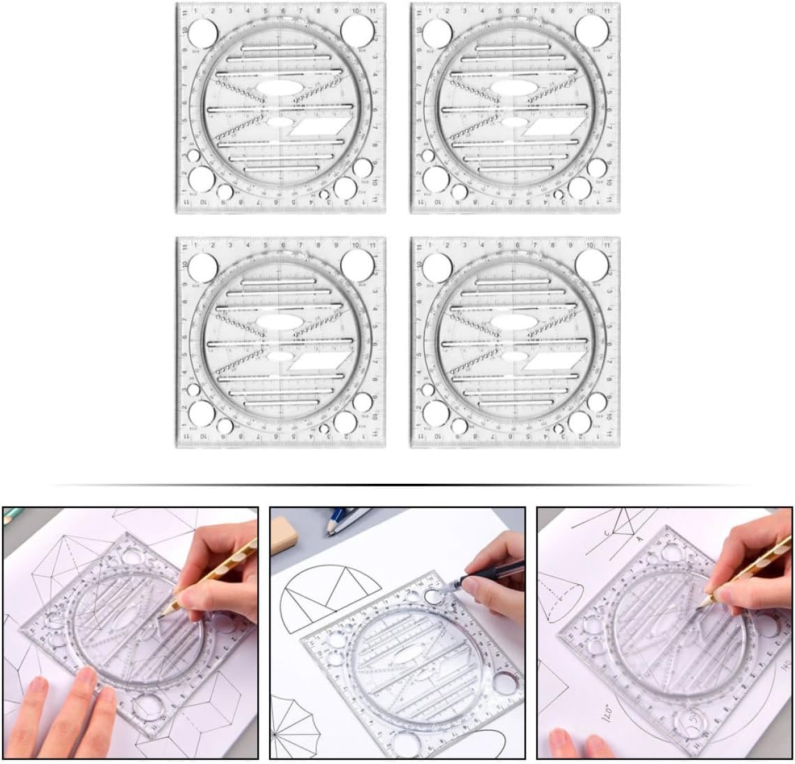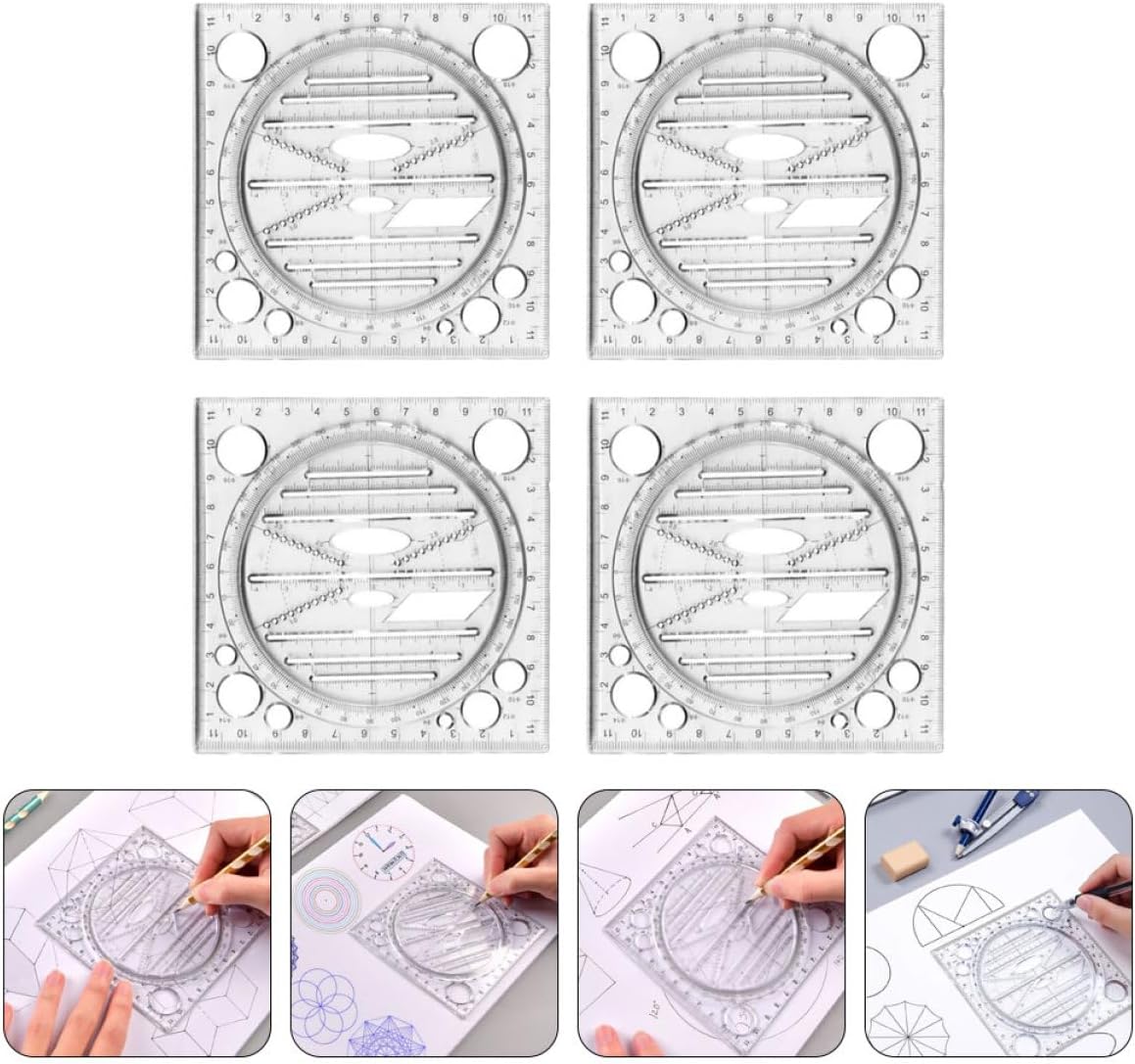 Righello geometrico: ampiamente applicato a scuola, in ufficio, a casa, in fabbrica e in altri luoghi bisognosi, modelli di disegno Modelli di disegno creativo: un meraviglioso righello per la tua famiglia, i tuoi amici e i tuoi colleghi che hanno bisogno di un righello per modelli, un righello per disegni d'artista Righelli geometrici: leggeri e portatili, più comodi da riporre e trasportare, strumento geometrico Stencil da disegno ruotabili: ti danno una visione chiara quando disegni su carta, abbastanza abbondante da soddisfare le tue esigenze di misurazione e disegno a scuola o nella vita quotidiana, progettando modelli Righello modello: è possibile disegnare varie forme, la scala è chiara, lo scorrimento è conveniente, il disegno è stabile, non facile da ruotare e facile da osservare, righelli da disegno multiuso